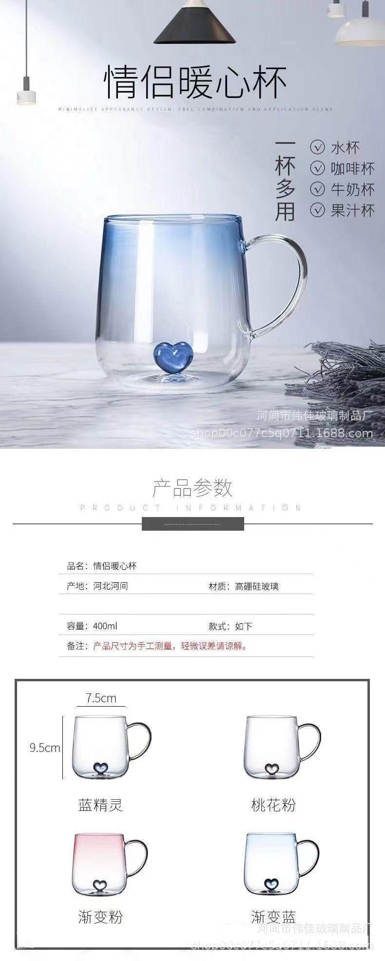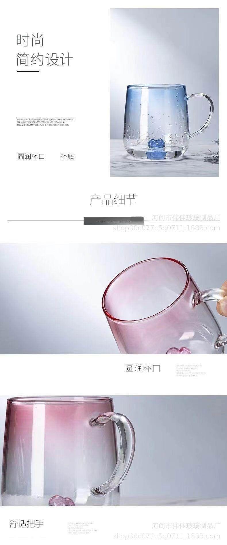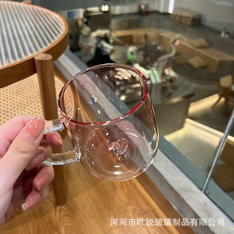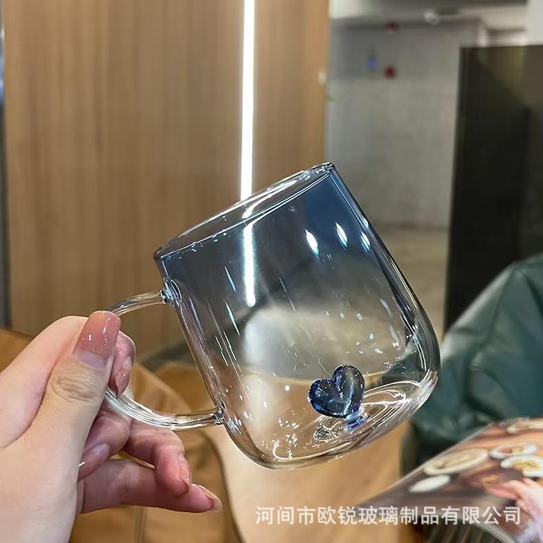 Taza de Té de Vidrio Corazón Vidrio de Borosilicato Alto Resistente al Calor Vaso de Agua de Vidrio con Asa Taza para Jugo Leche