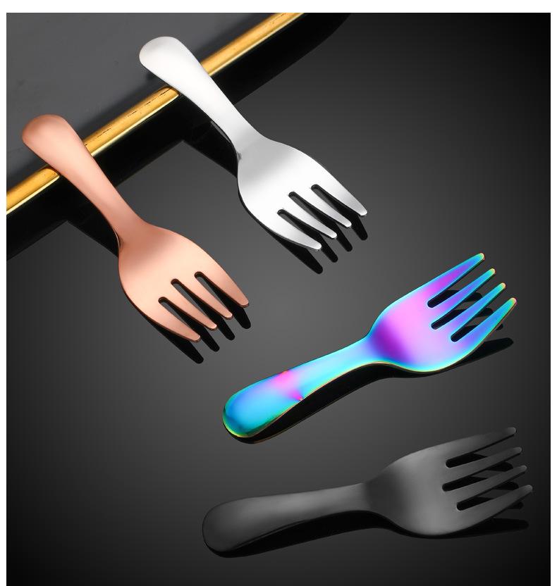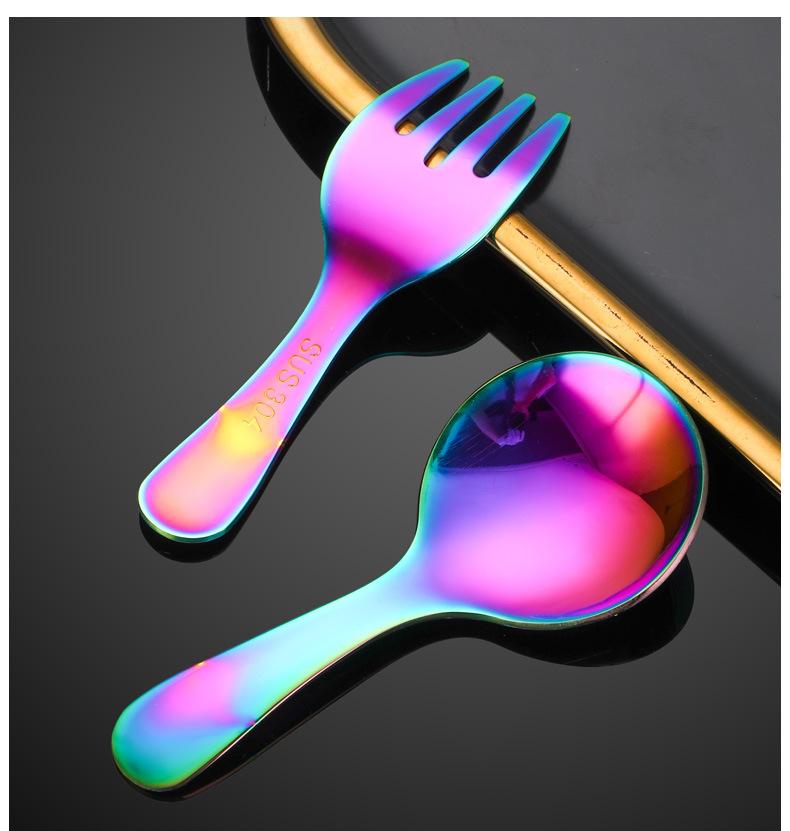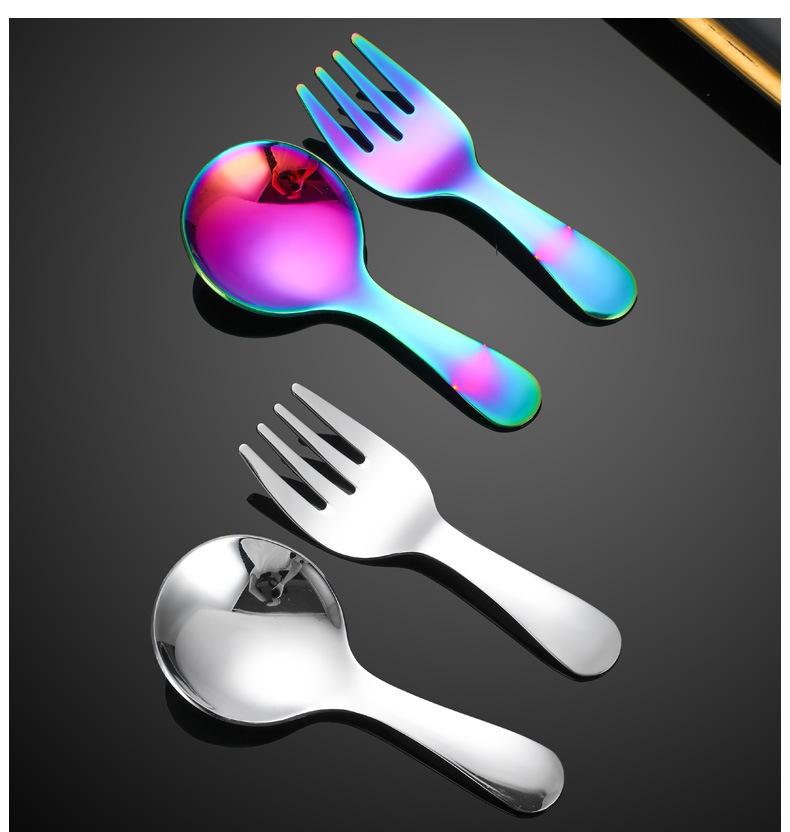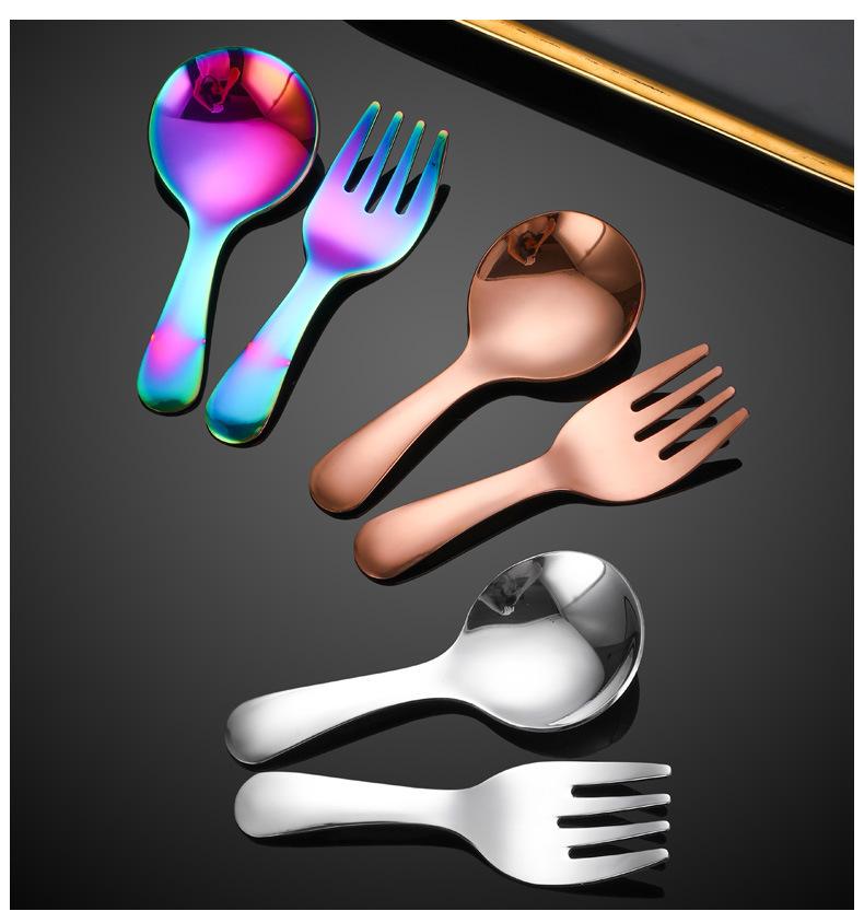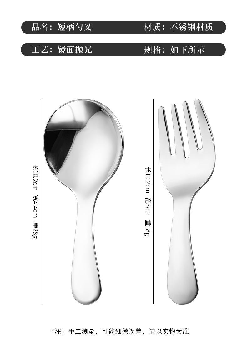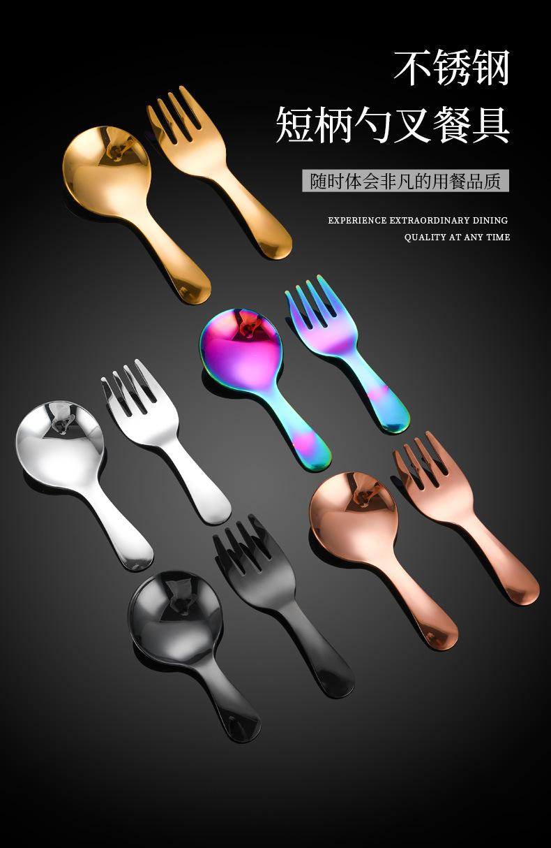 Tenedor y cuchara de acero inoxidable 304 con mango corto, creativo, para postre, pastel, helado, cena, vajilla infantil.