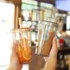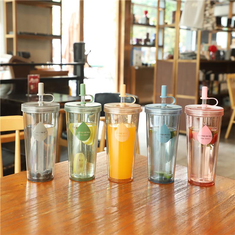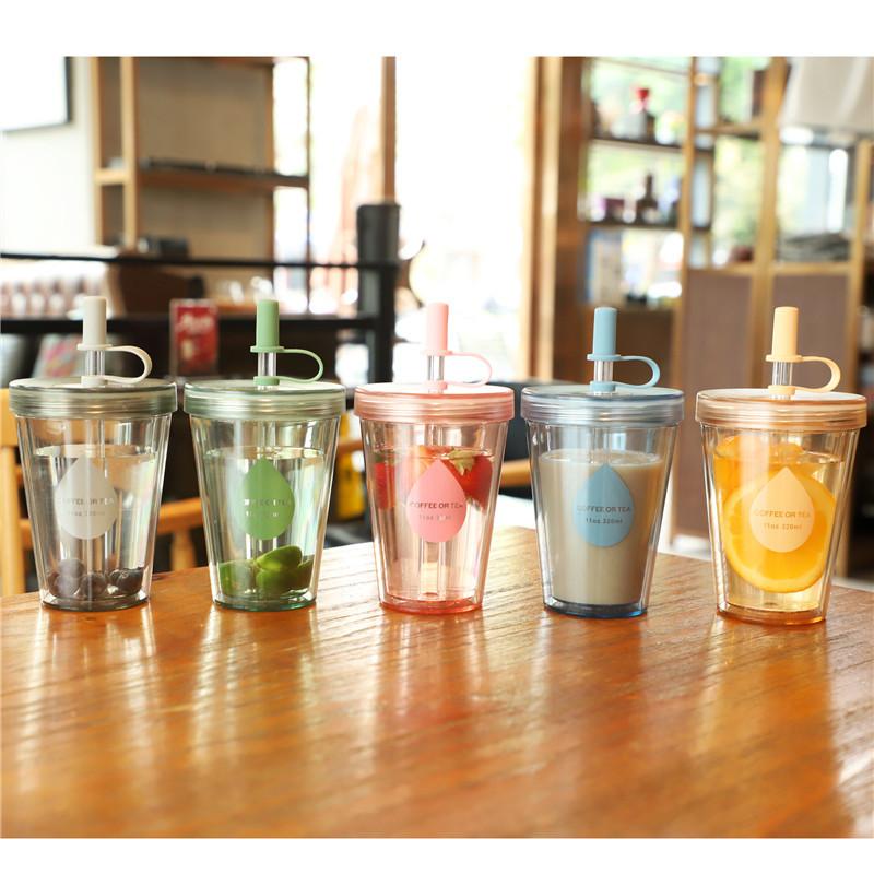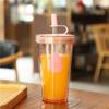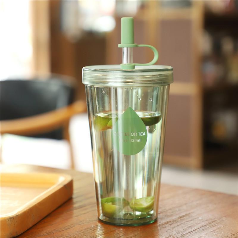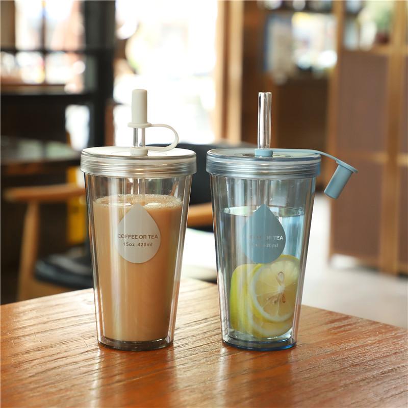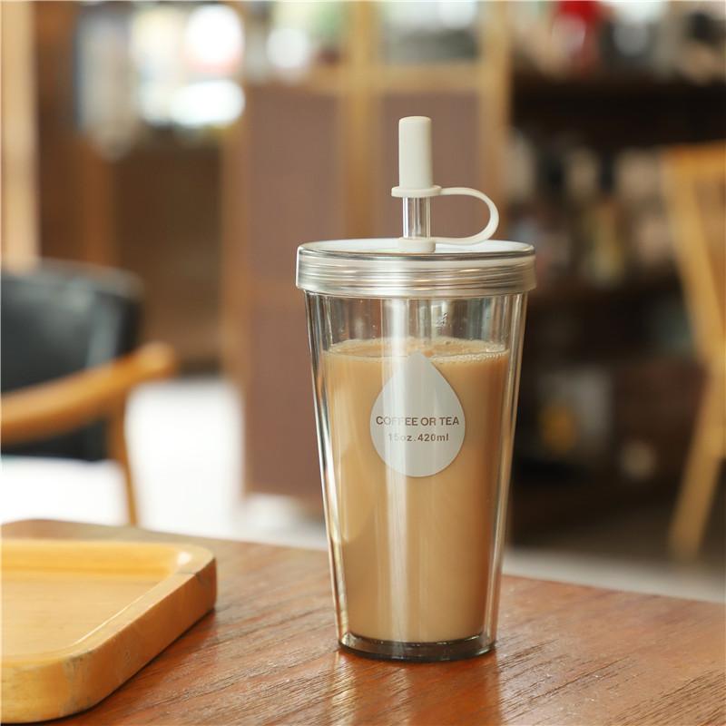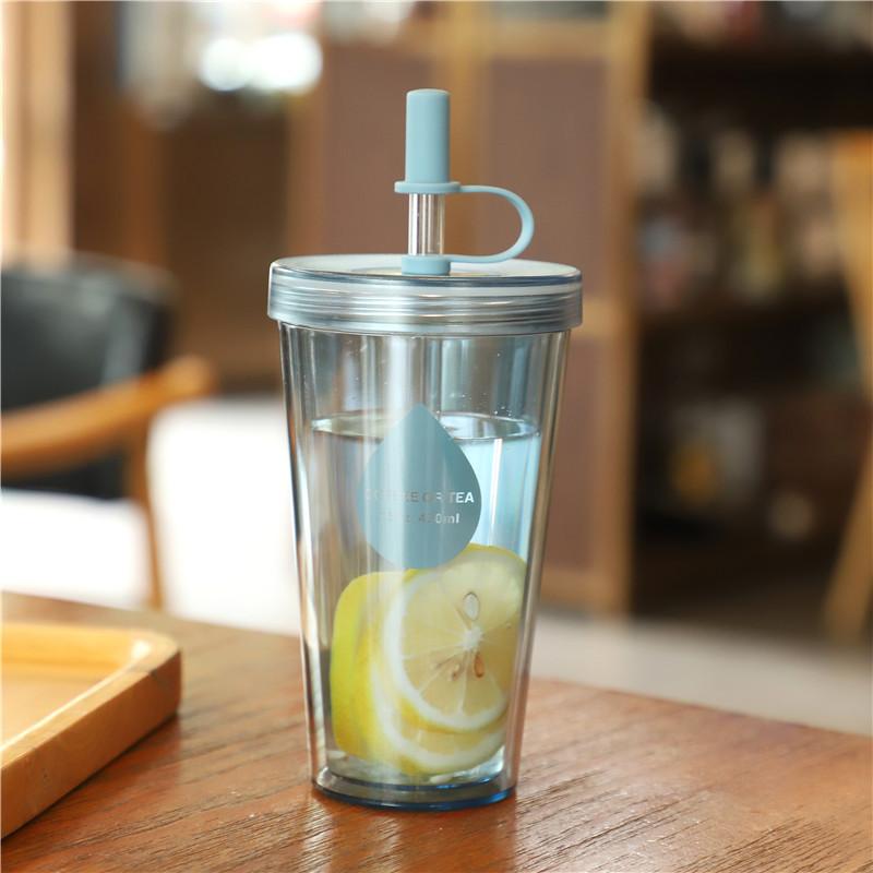 Taza de té con leche y paja de doble capa con tapa, taza portátil, taza de té con leche, taza de té de frutas, taza de paja portátil antiescaldaduras a prueba de polvo