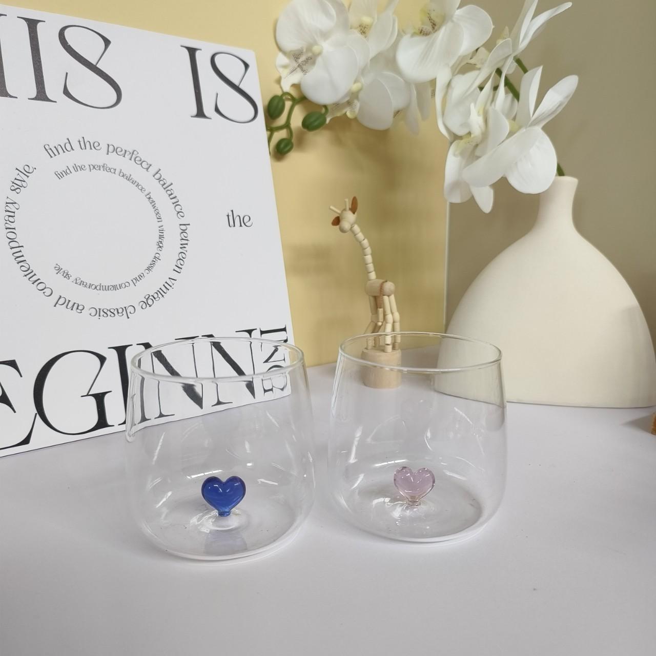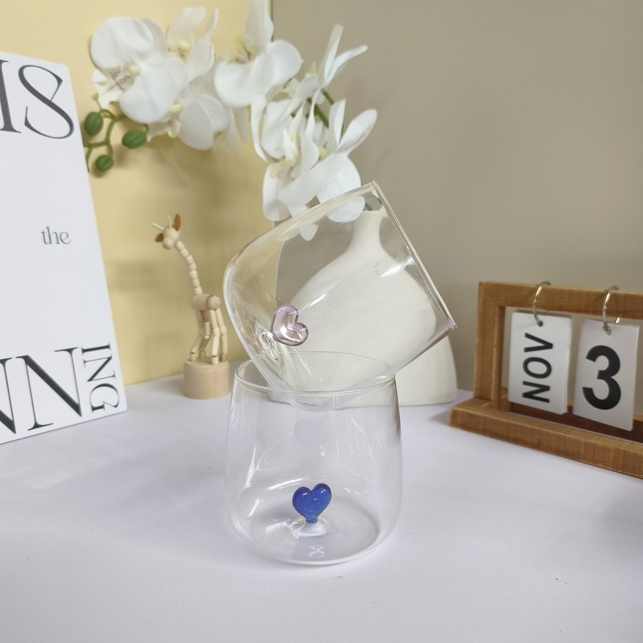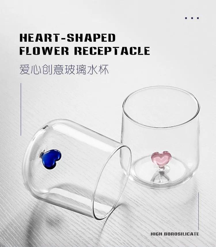 Taza de leche de vidrio de borosilicato de alto valor de color de amor creativo, taza de bebida, taza de agua transparente simple para pareja