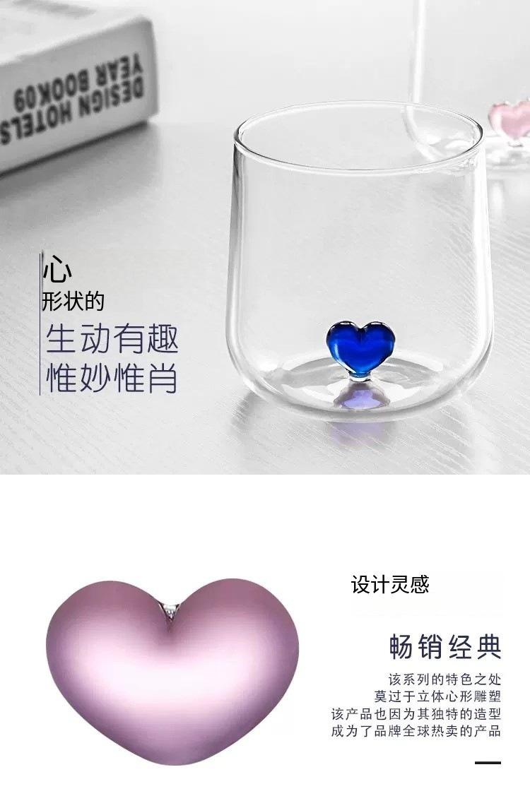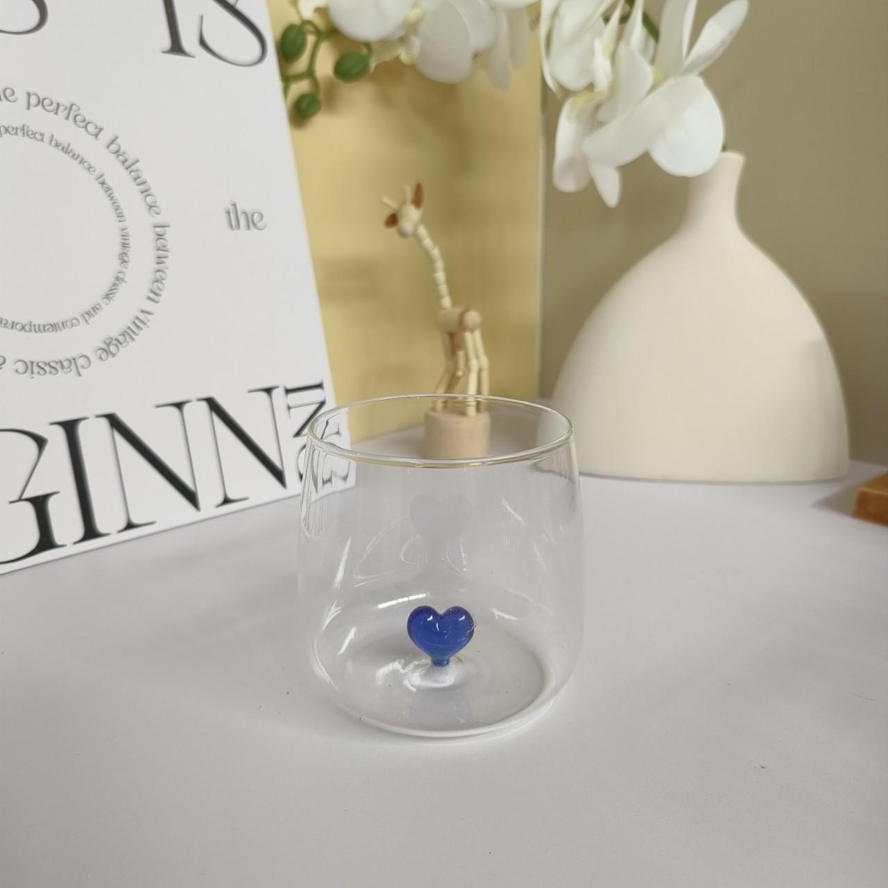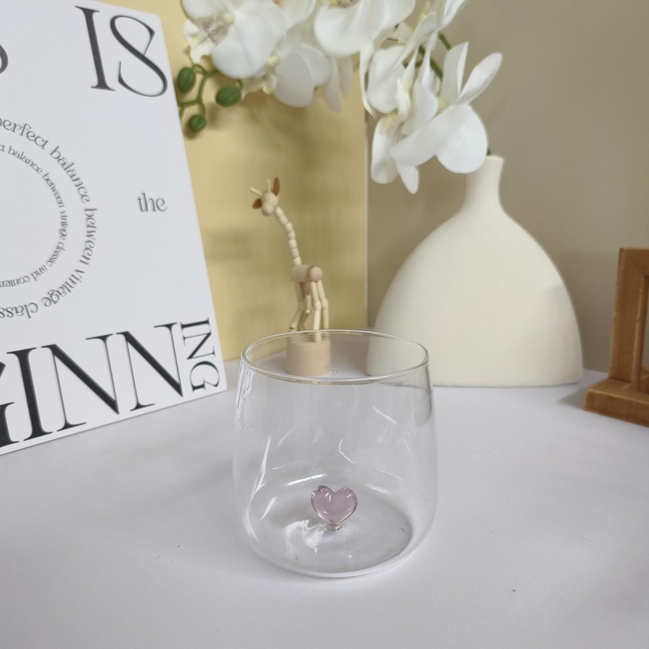 Taza de leche de vidrio de borosilicato de alto valor de color de amor creativo, taza de bebida, taza de agua transparente simple para pareja