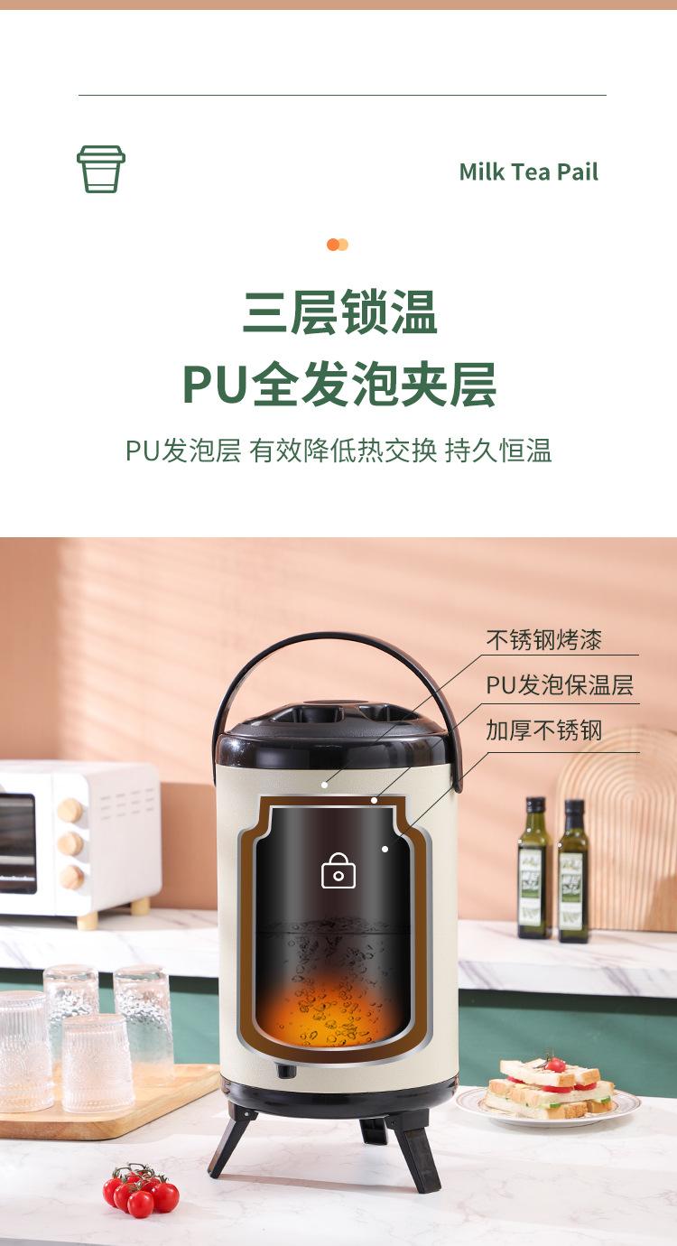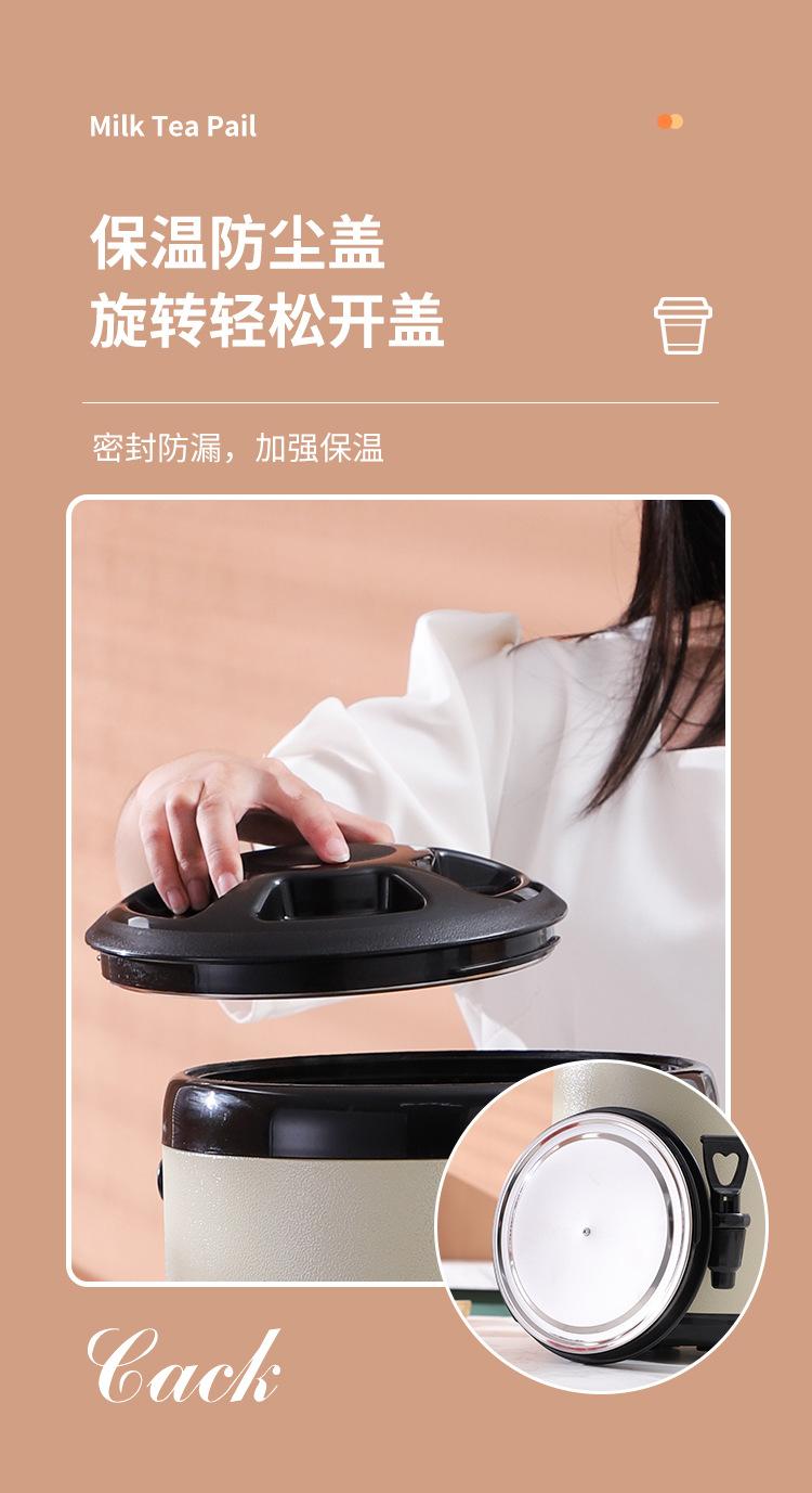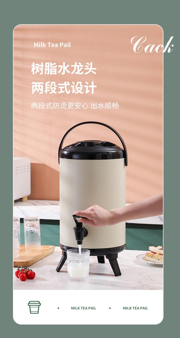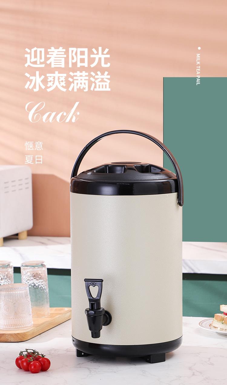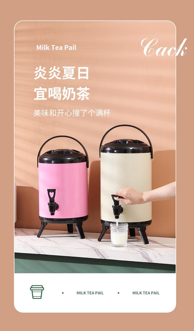 Cubo de té con leche Cubo de leche de soja de acero inoxidable Cubo de té con aislamiento doble frío y caliente Cubo de aislamiento para tienda de té con leche Cubo comercial de gran capacidad