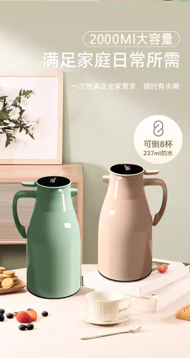 Termo de vidrio para el hogar, termo de gran capacidad con pantalla de temperatura, termo 2025, nueva botella de té para el hogar de 2 l.