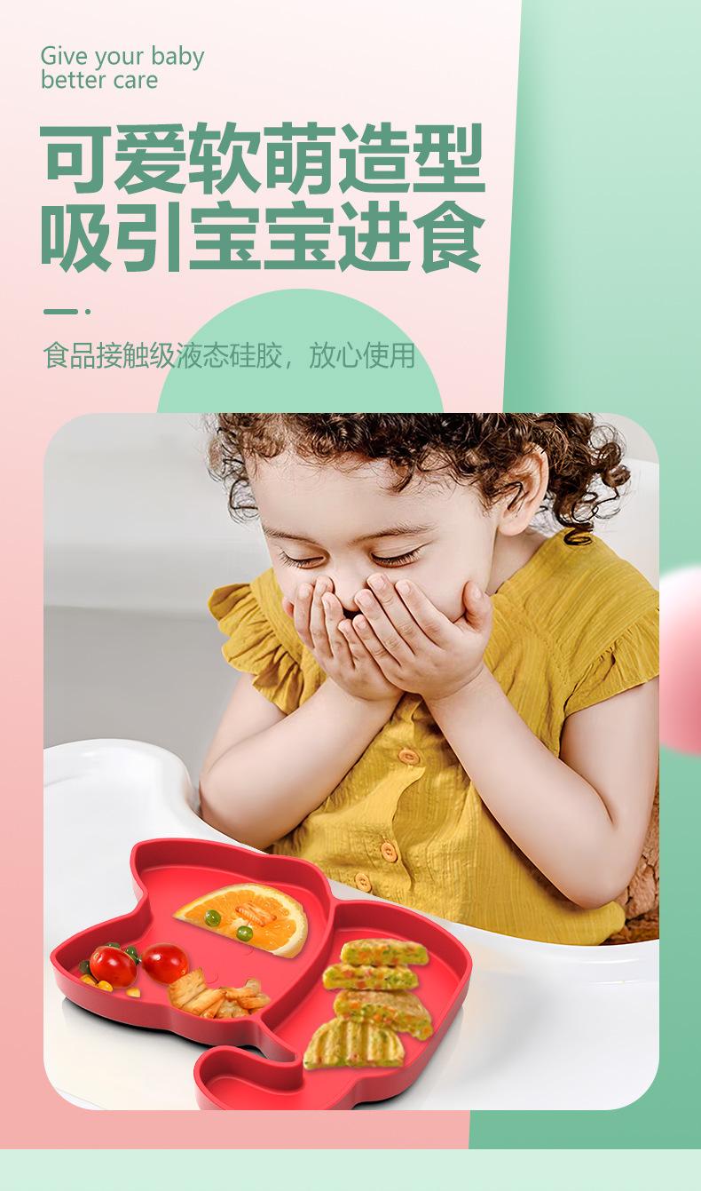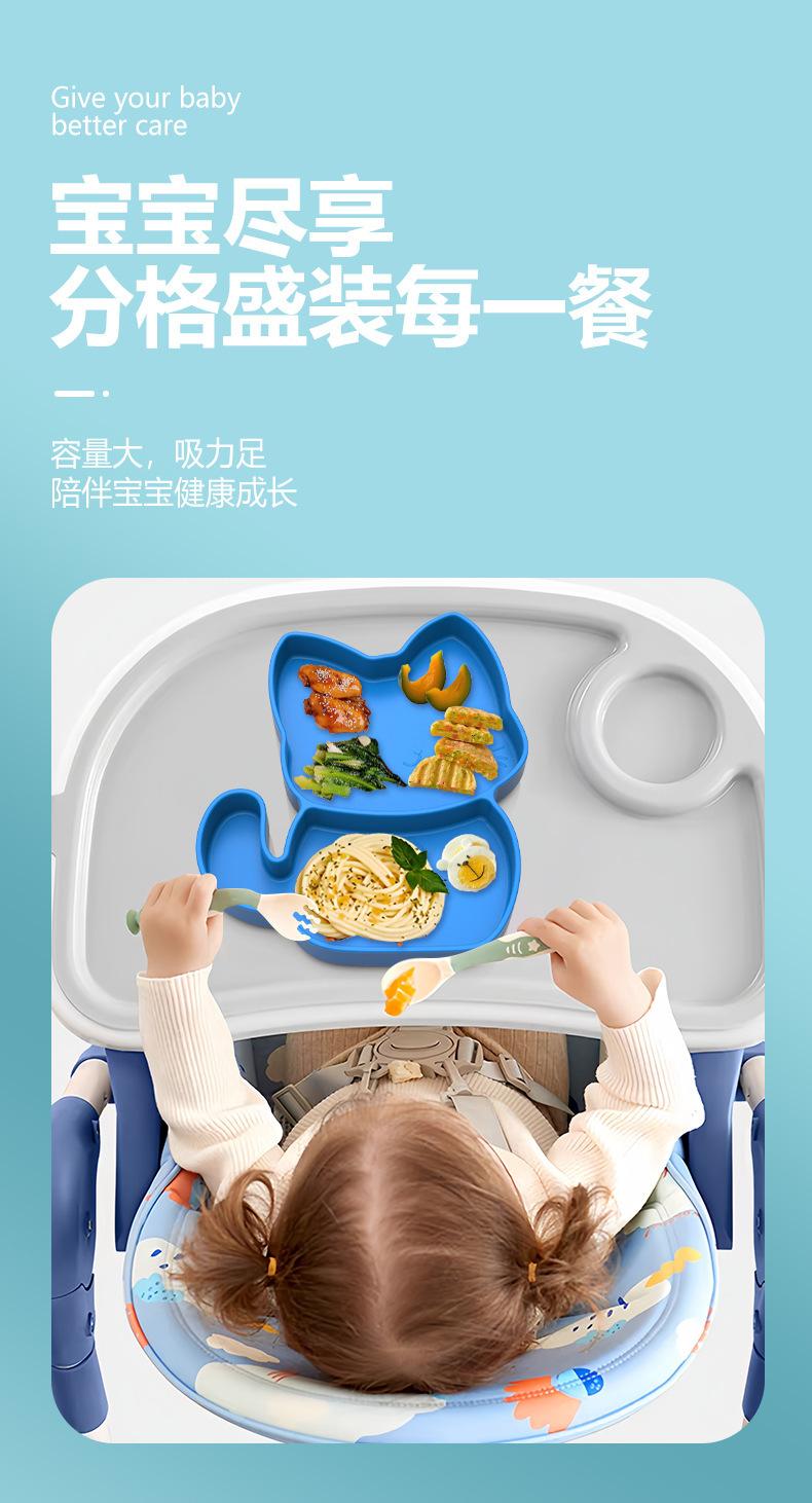 Plato de Cena de Silicona para Niños Materno e Infantil Plato de Succión Plato de Cena Separado Silicona de Grado Alimenticio Resistente a Caídas Vajilla para Alimentación Complementaria en stock