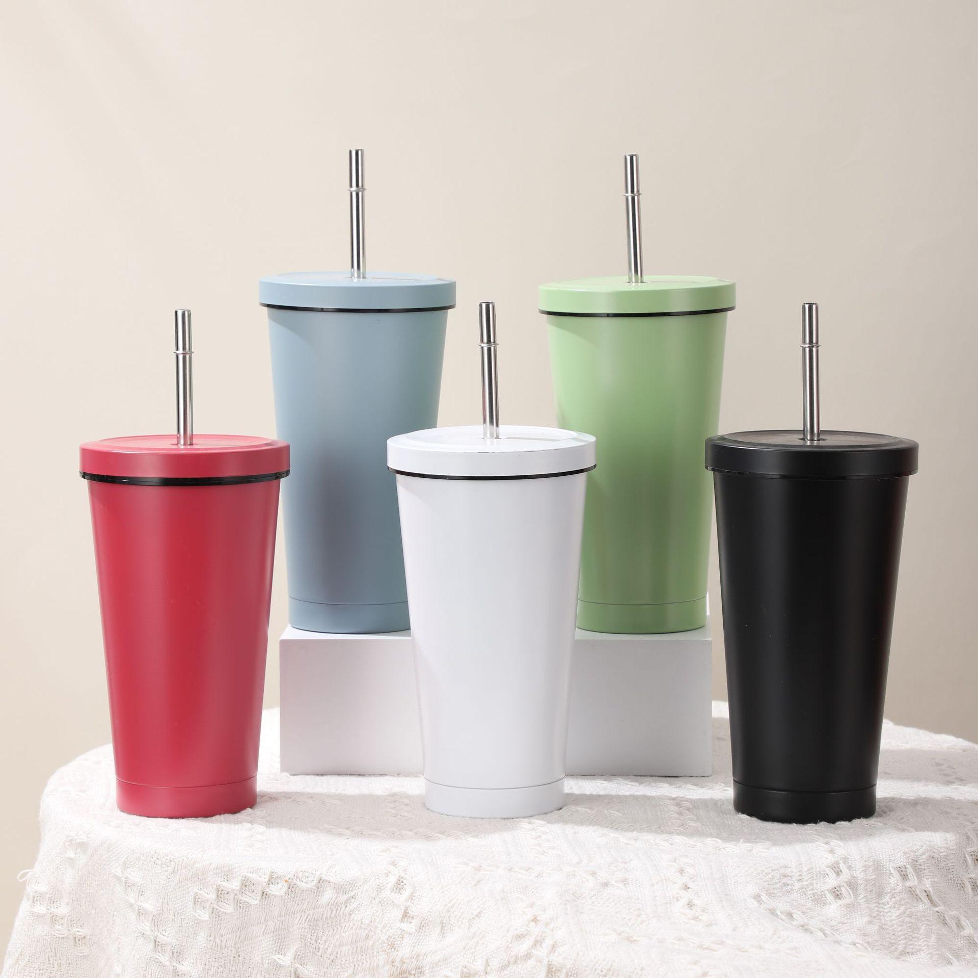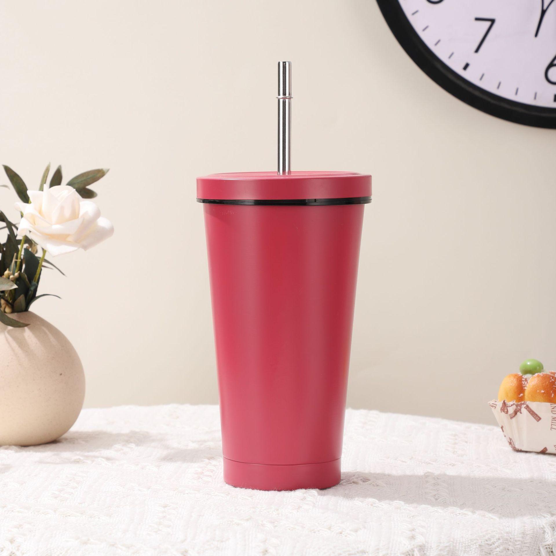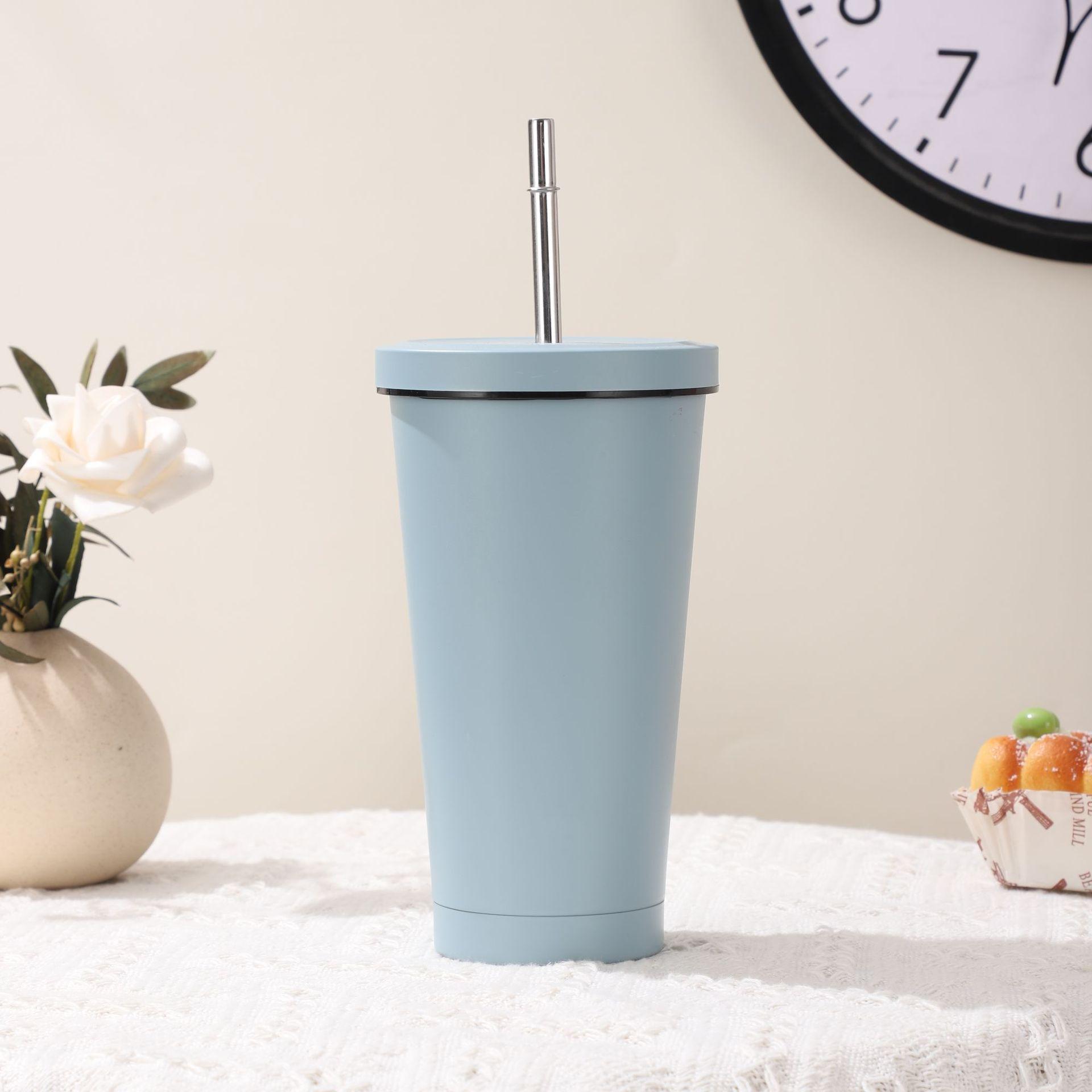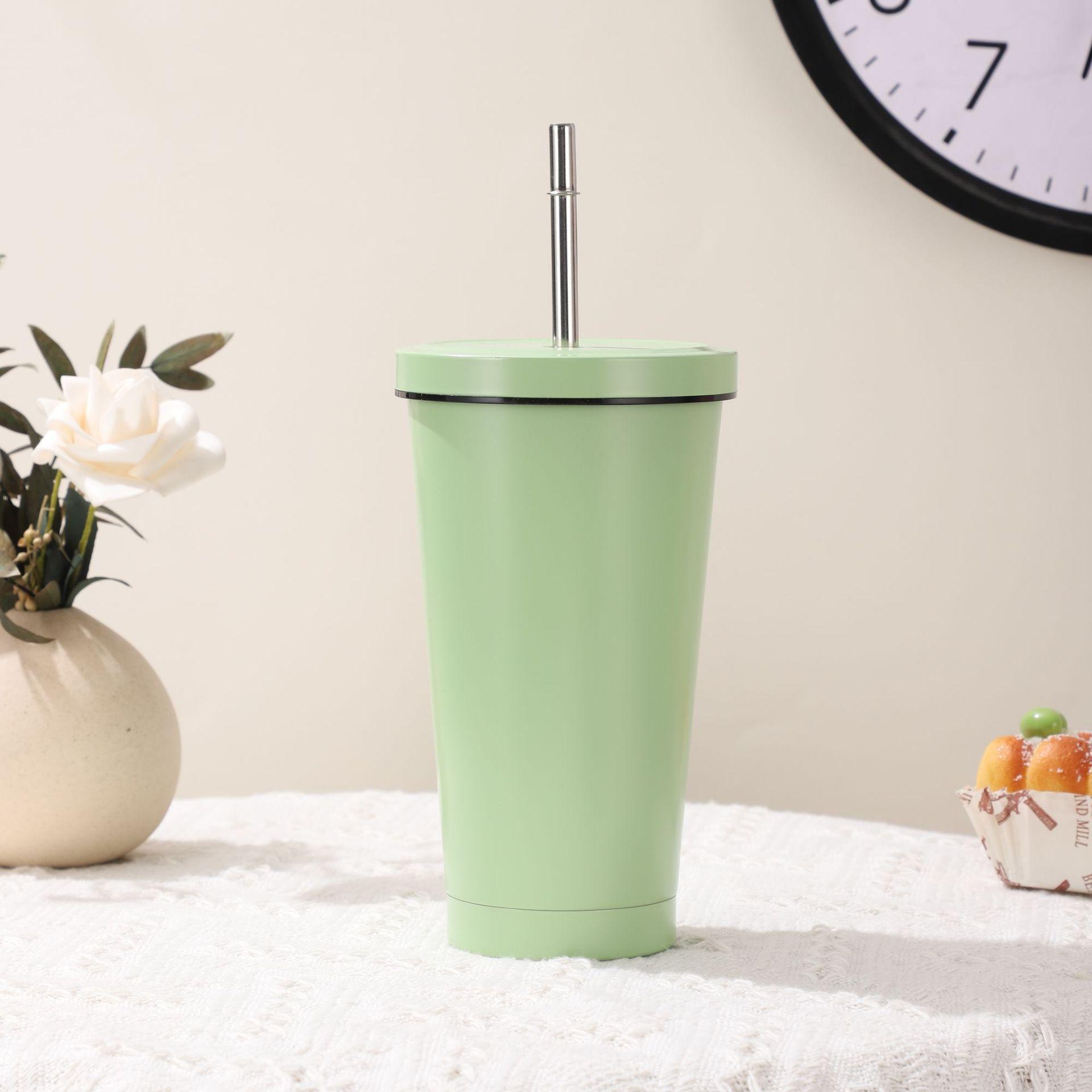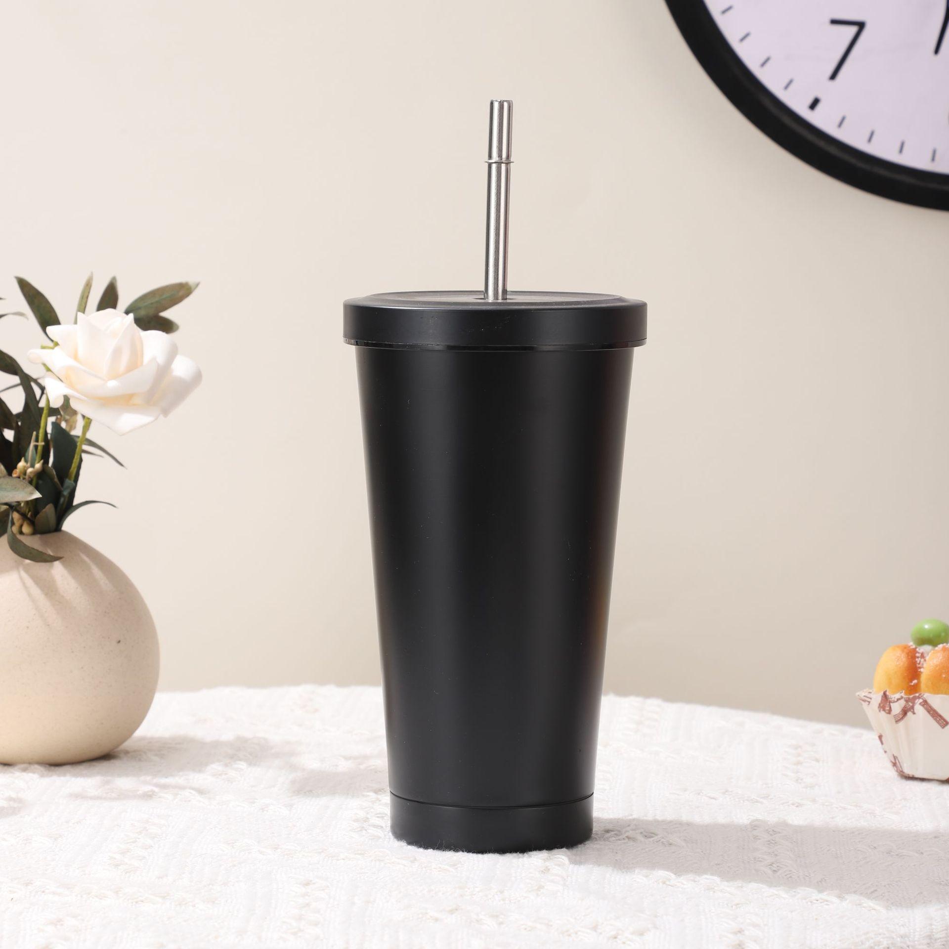 Vaso de Acero Inoxidable 304 de Doble Capa con Pajita, Vaso Aislado para Café Caliente y Frío para Montar en el Coche, Vaso para Té con Leche, Vaso para Agua de Oficina, Portátil