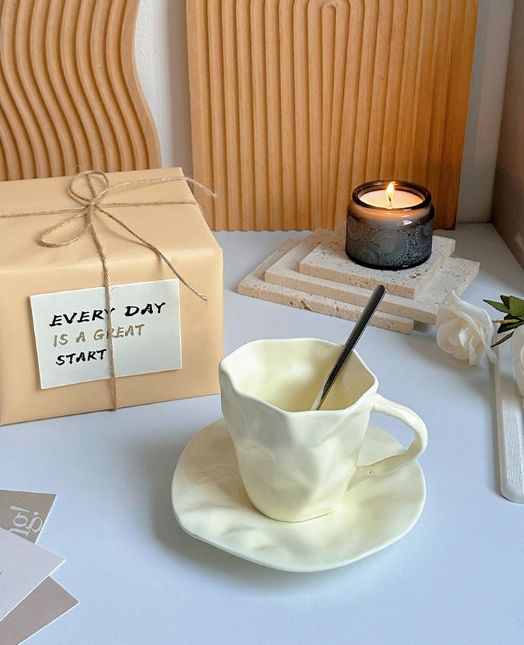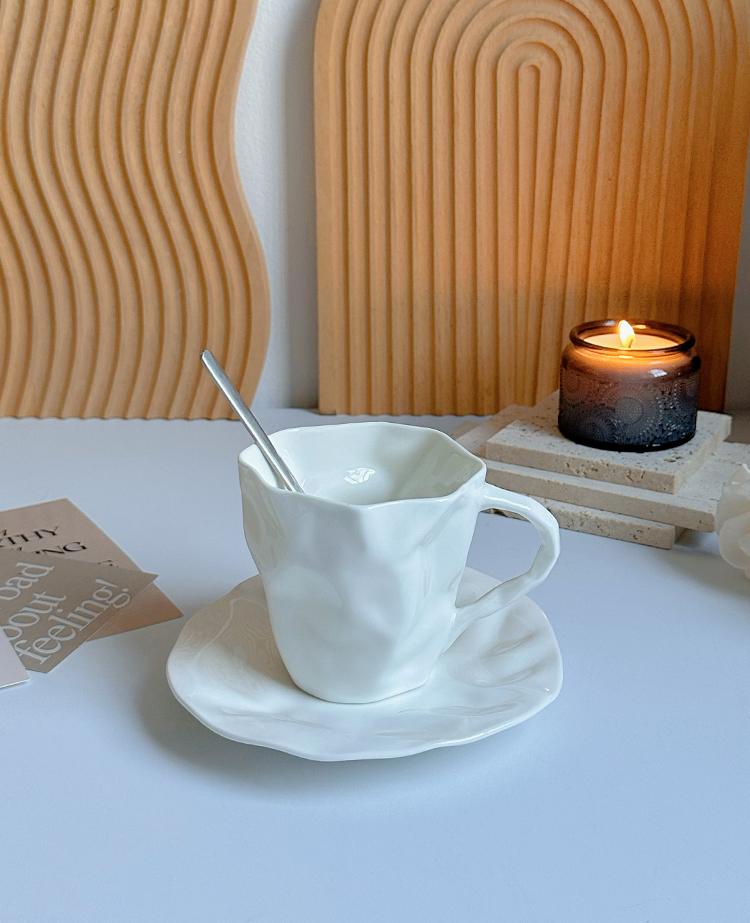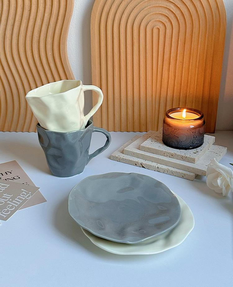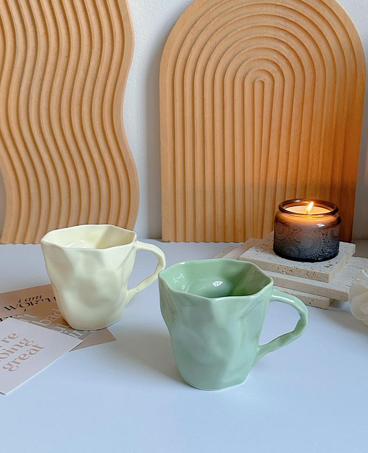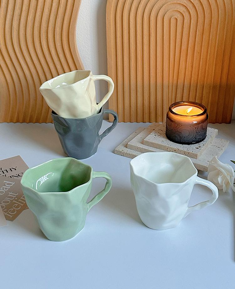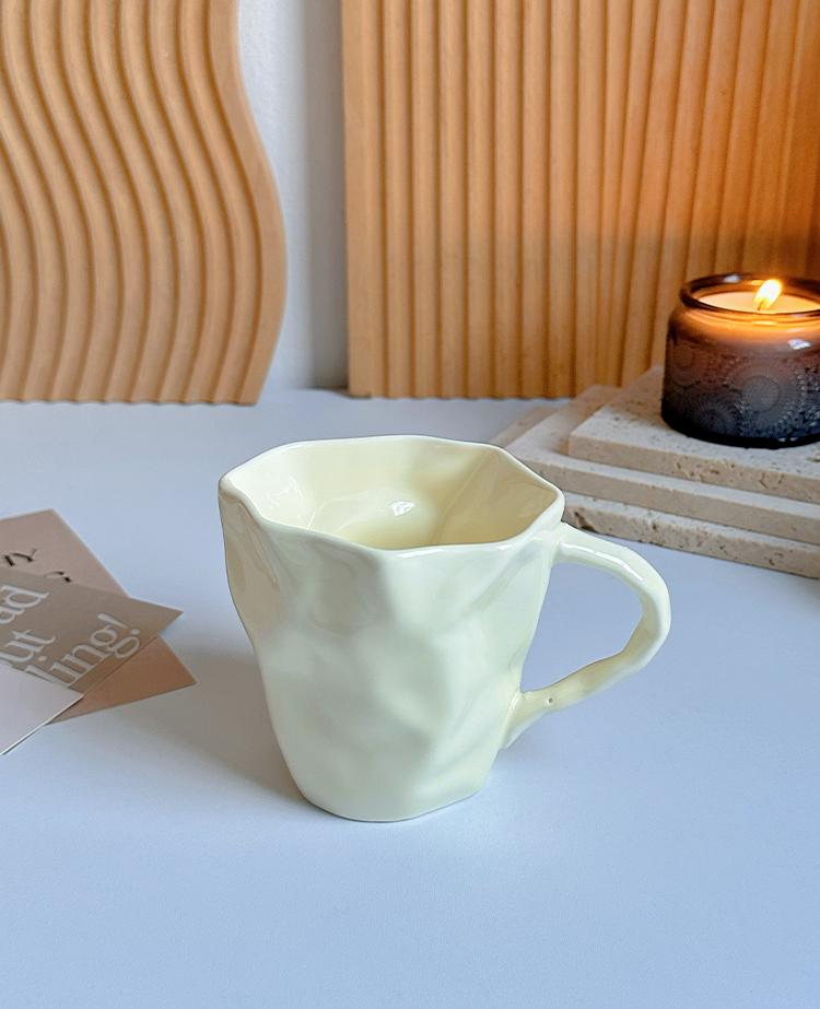 Taza con Pliegues Irregulares Amasada a Mano Diseño Artístico de Taza de Cerámica con Patrón de Bolsa de Papel Plegada Simple Ins