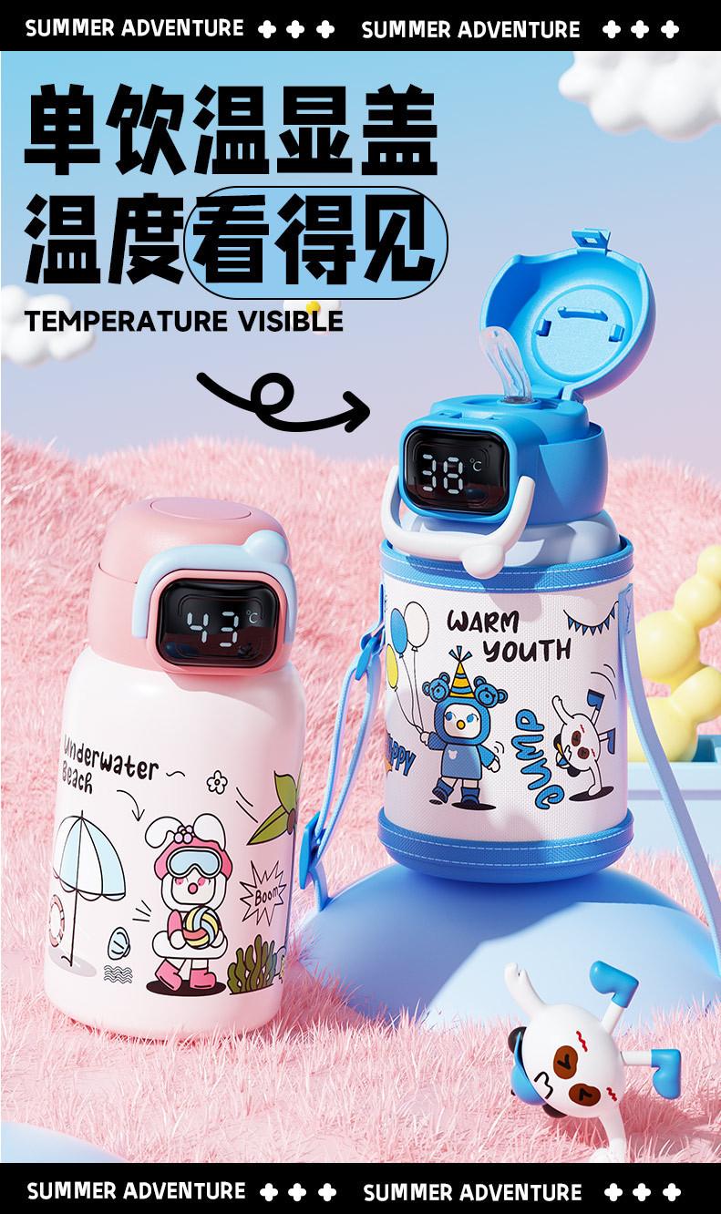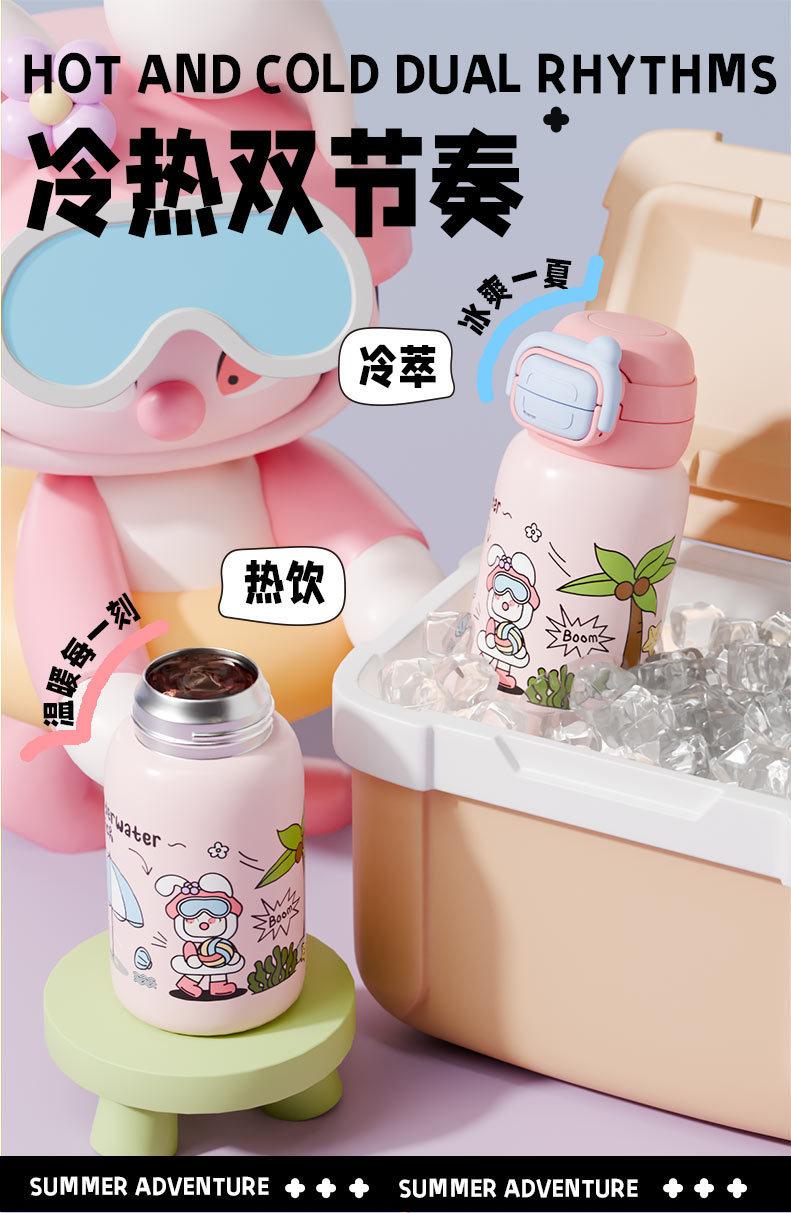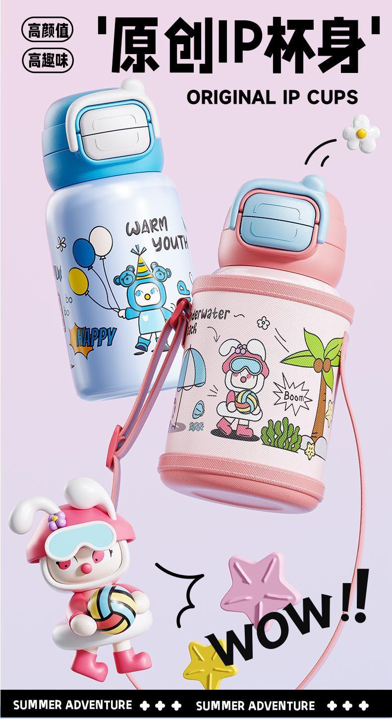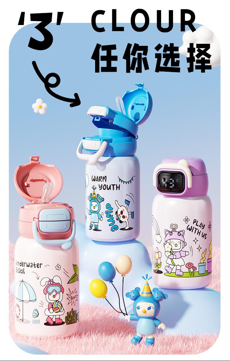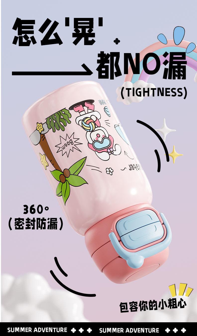 Termo inteligente de acero inoxidable 316 para bebidas dobles, con dibujos animados, de alto valor de color, para niñas y estudiantes, con pajita, personalizable
