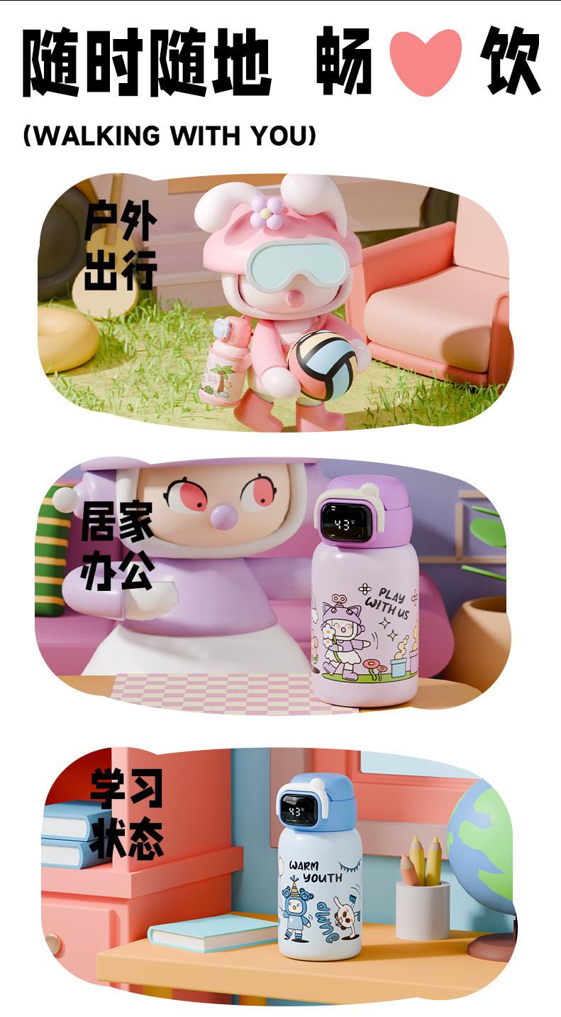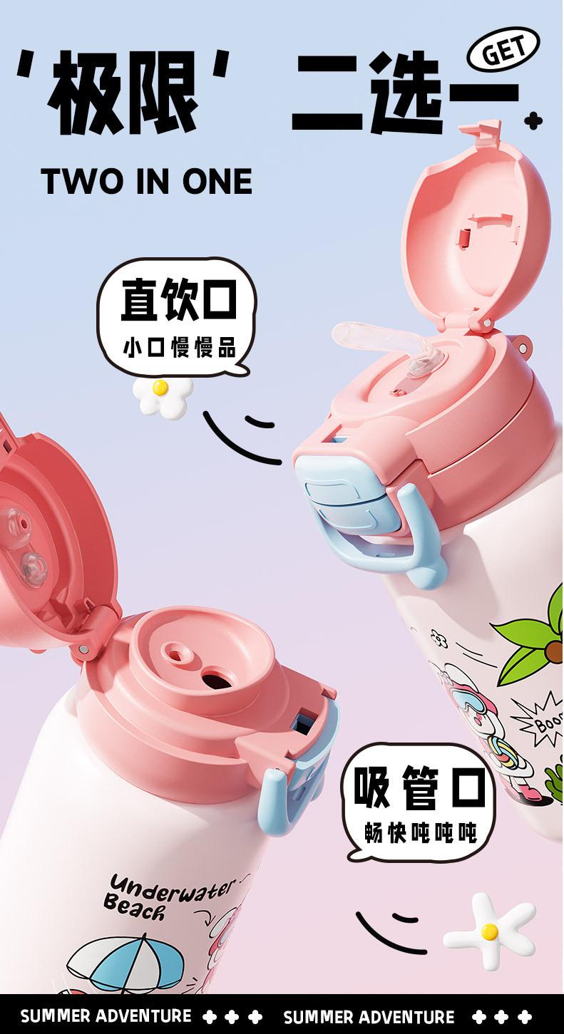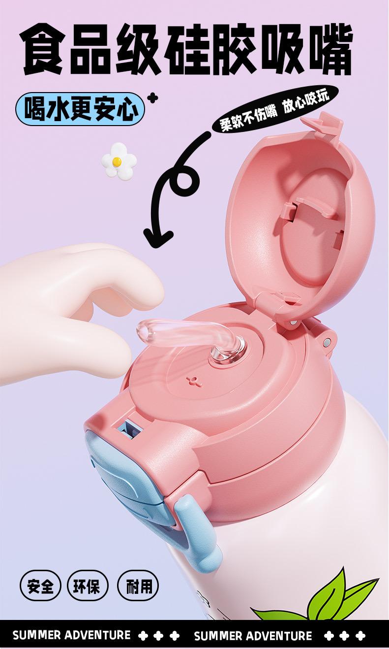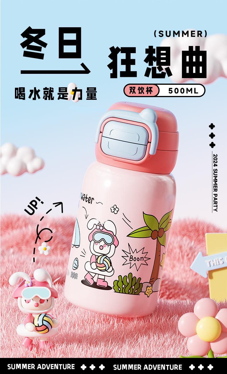 Termo inteligente de acero inoxidable 316 para bebidas dobles, con dibujos animados, de alto valor de color, para niñas y estudiantes, con pajita, personalizable