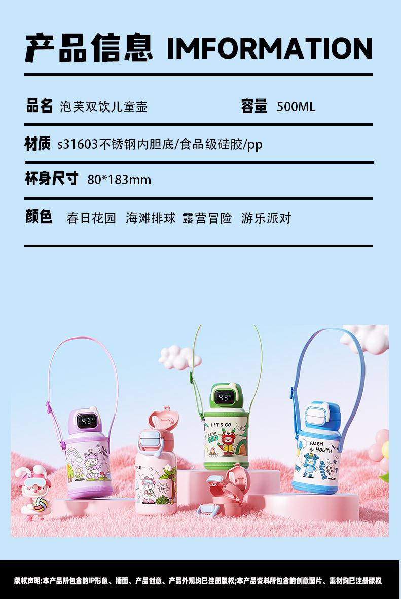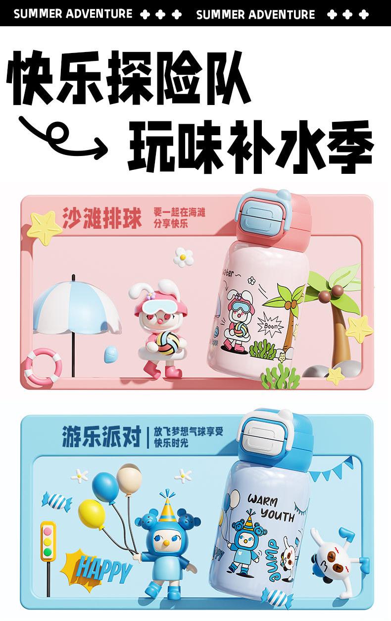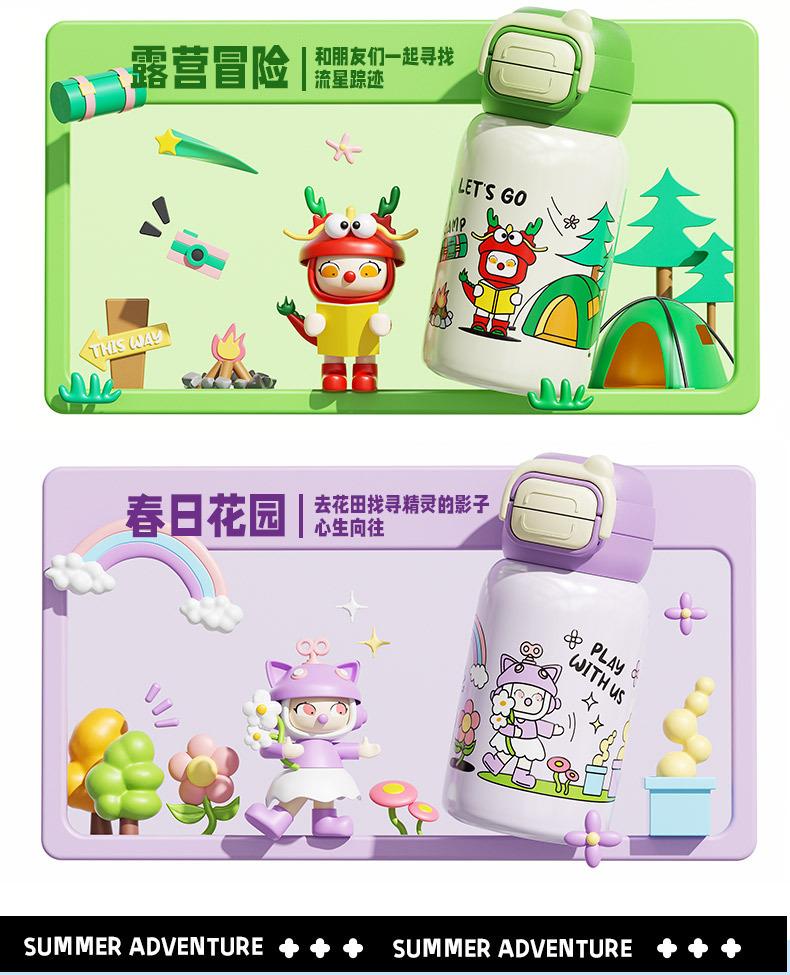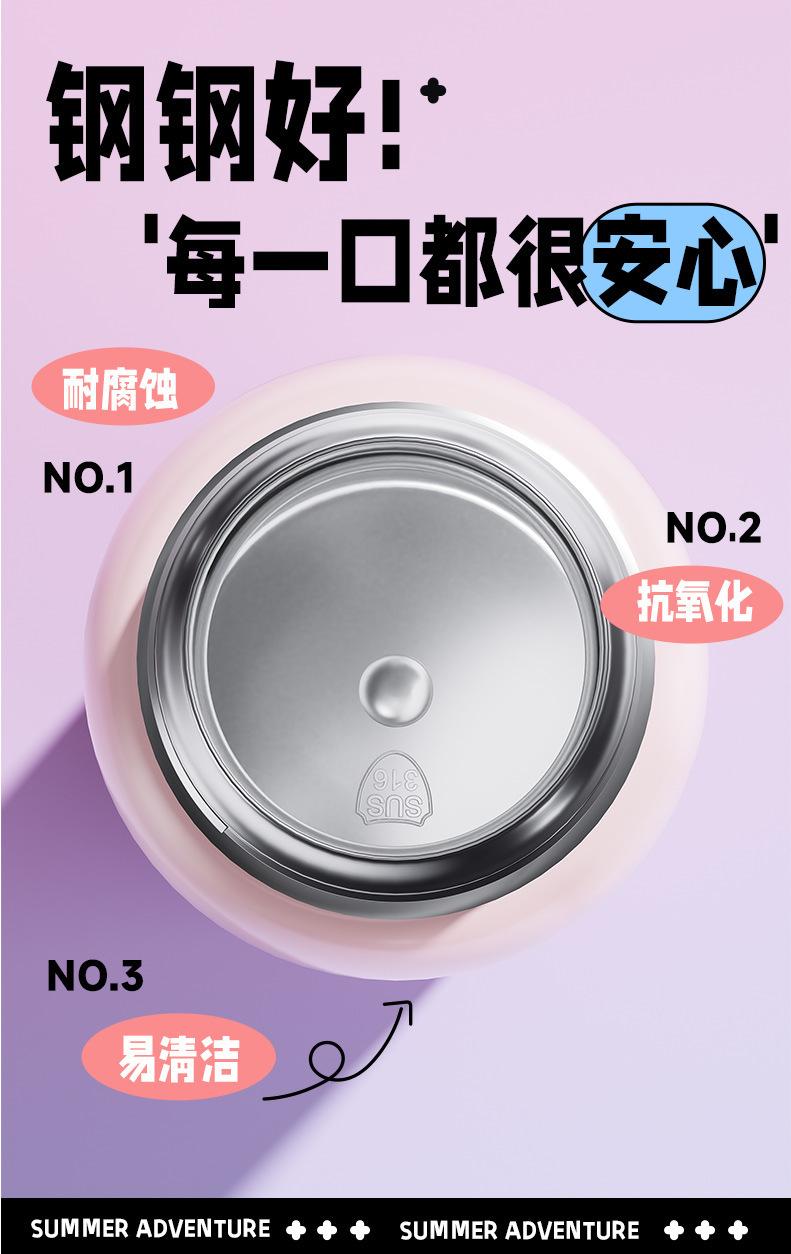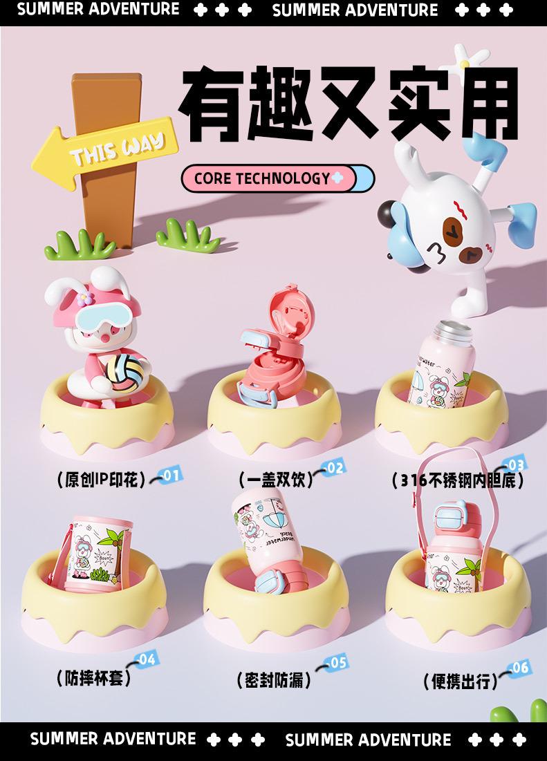 Termo inteligente de acero inoxidable 316 para bebidas dobles, con dibujos animados, de alto valor de color, para niñas y estudiantes, con pajita, personalizable