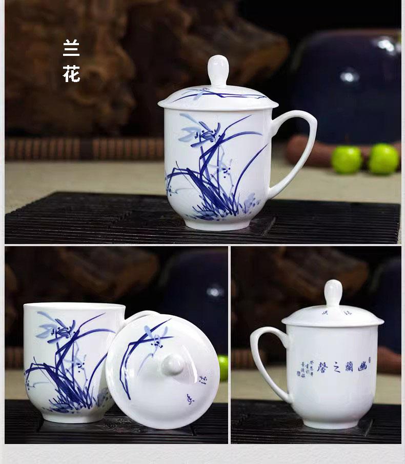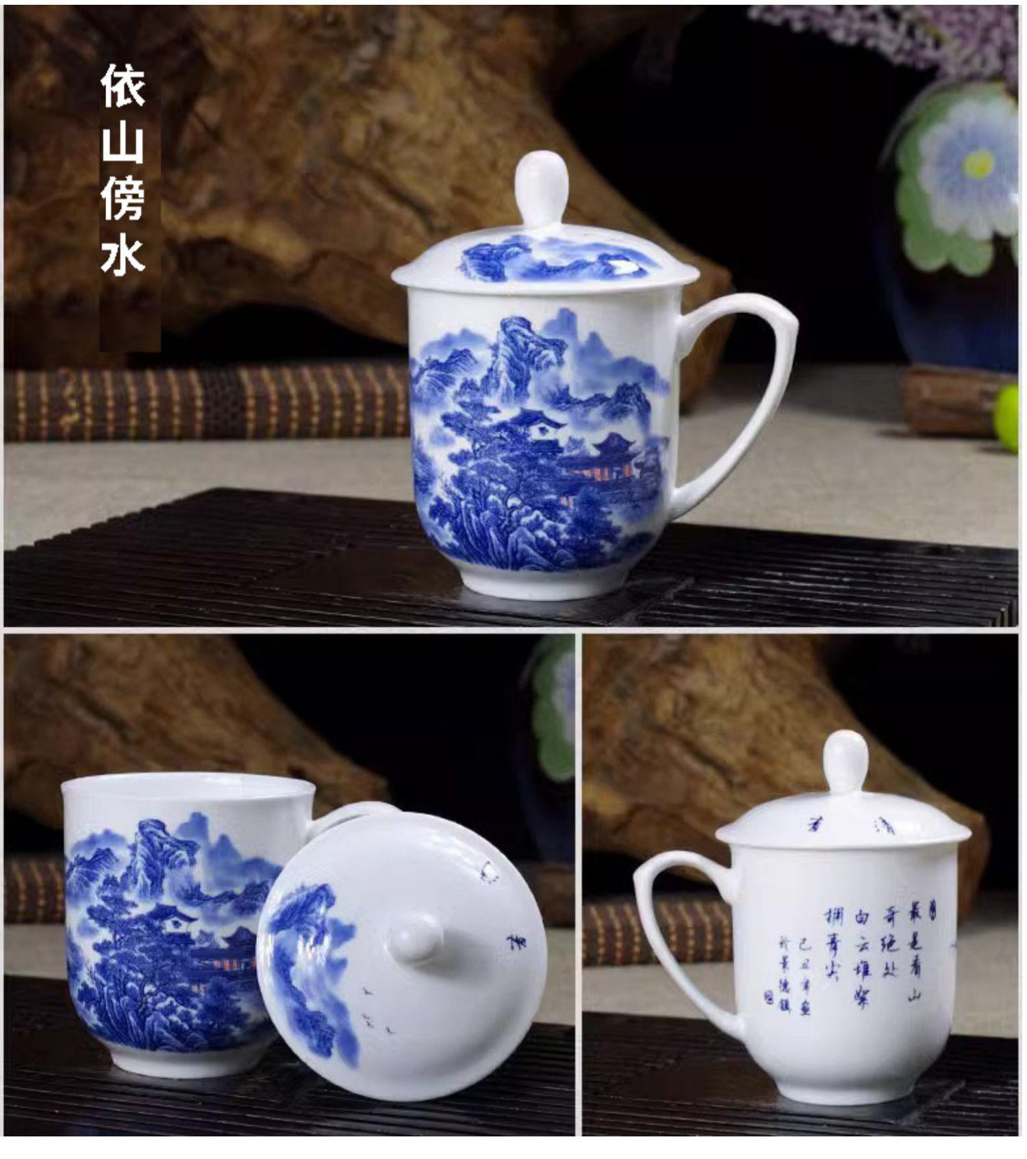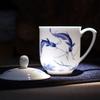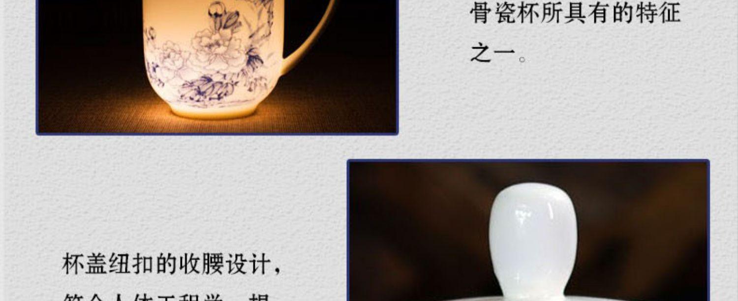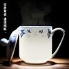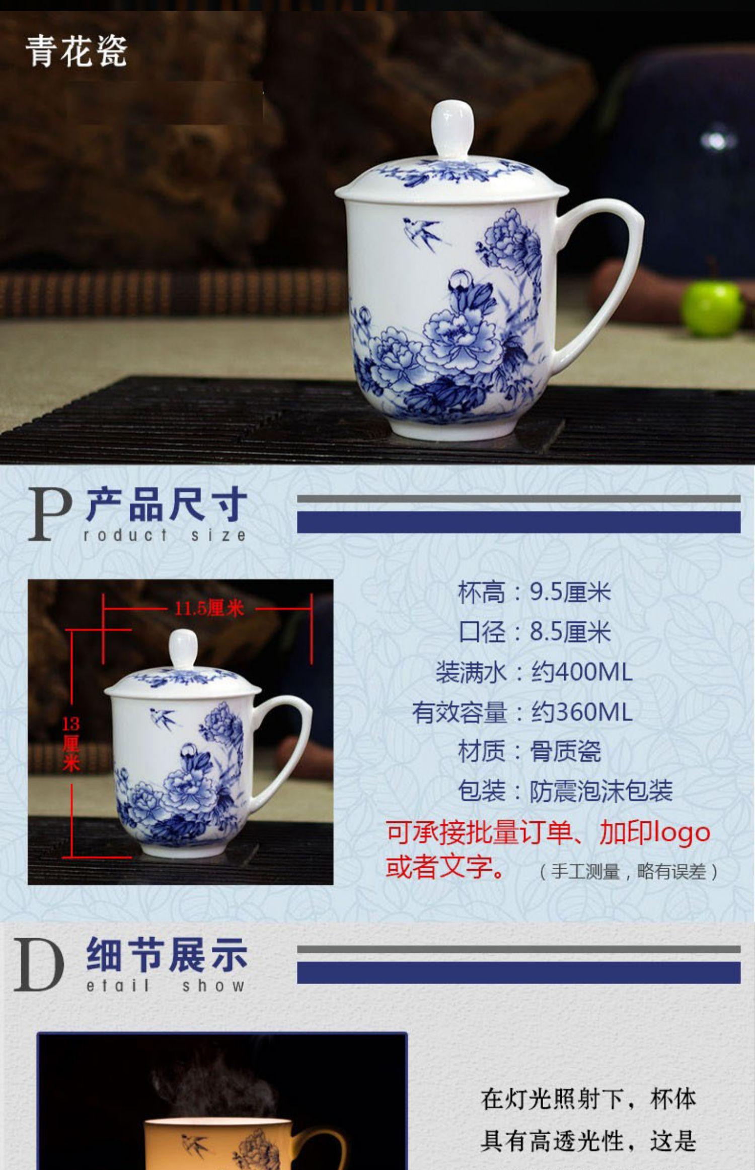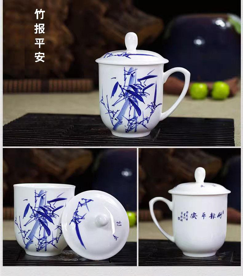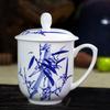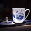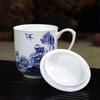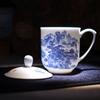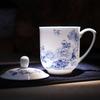 Taza de Porcelana Fina Azul y Blanco de Jingdezhen Taza de Té de Cerámica para Reuniones con Asa Tapa Oficina Taza de Agua Personalizada Impresión de Logotipo
