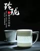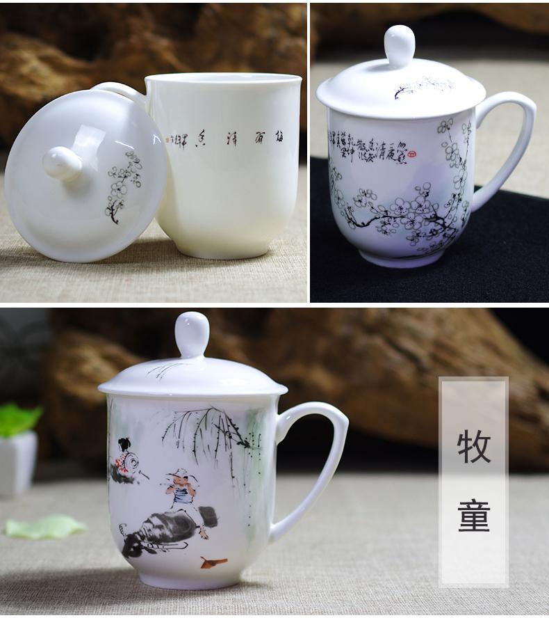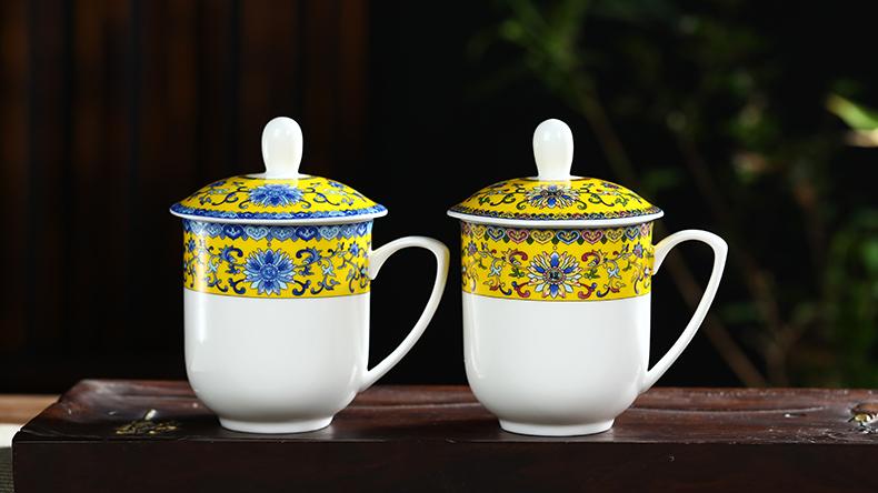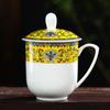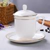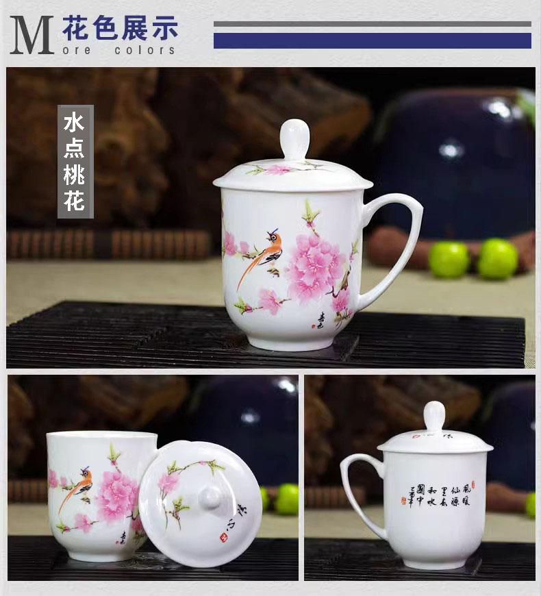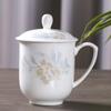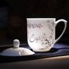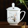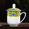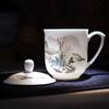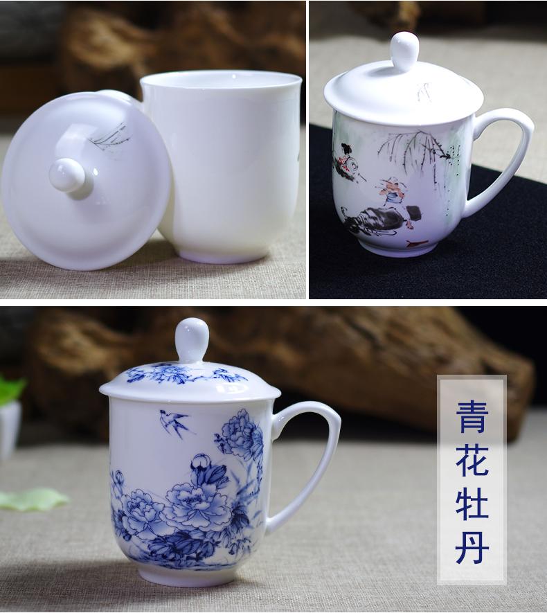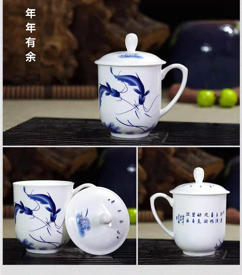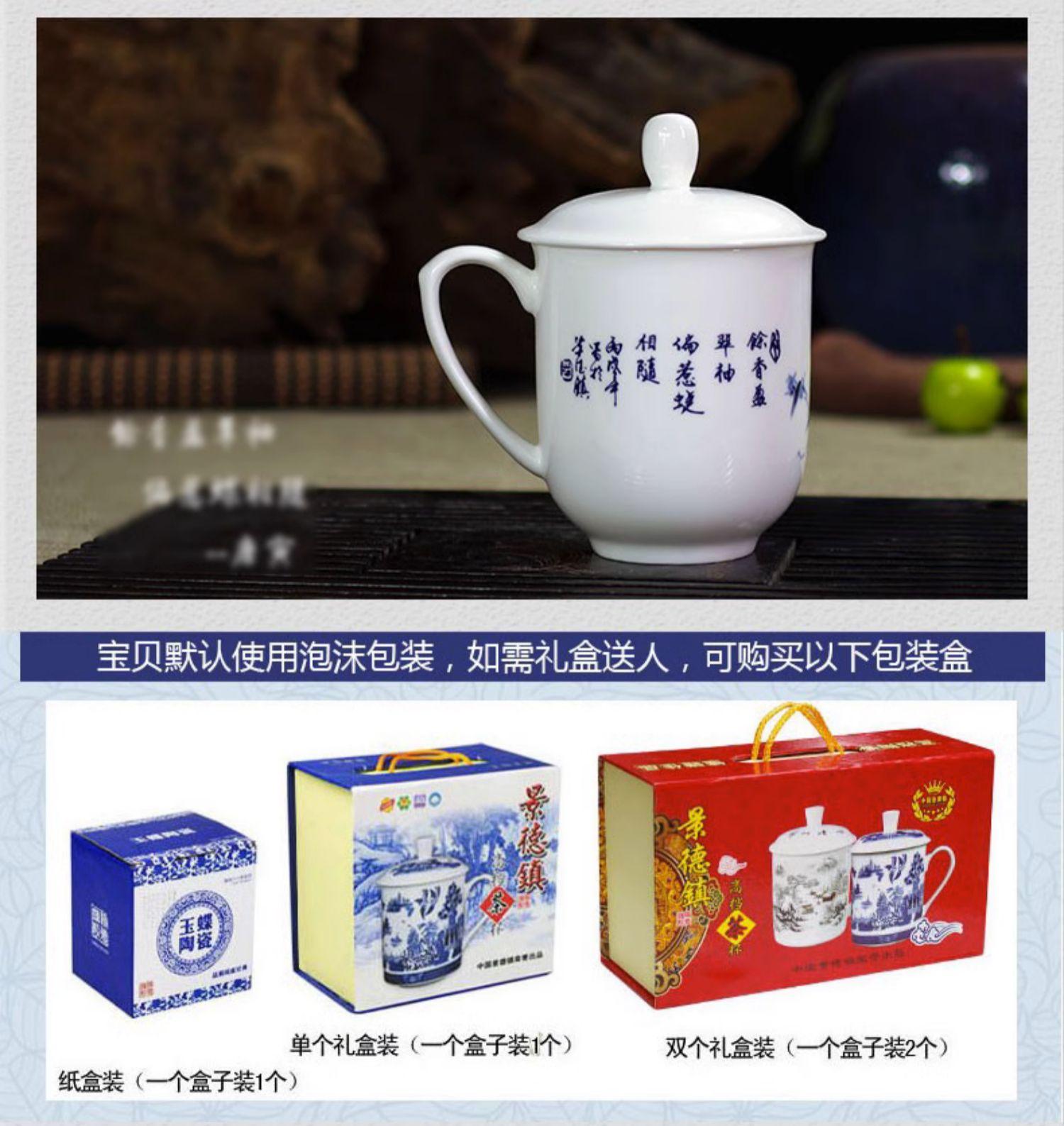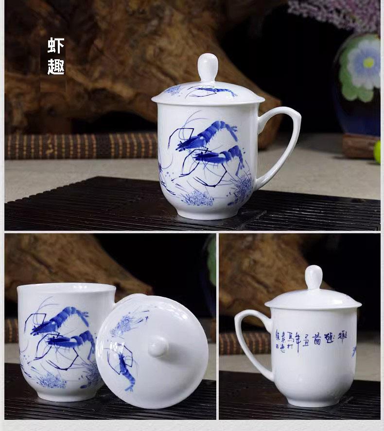Taza de Porcelana Fina Azul y Blanco de Jingdezhen Taza de Té de Cerámica para Reuniones con Asa Tapa Oficina Taza de Agua Personalizada Impresión de Logotipo