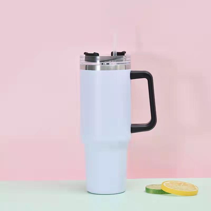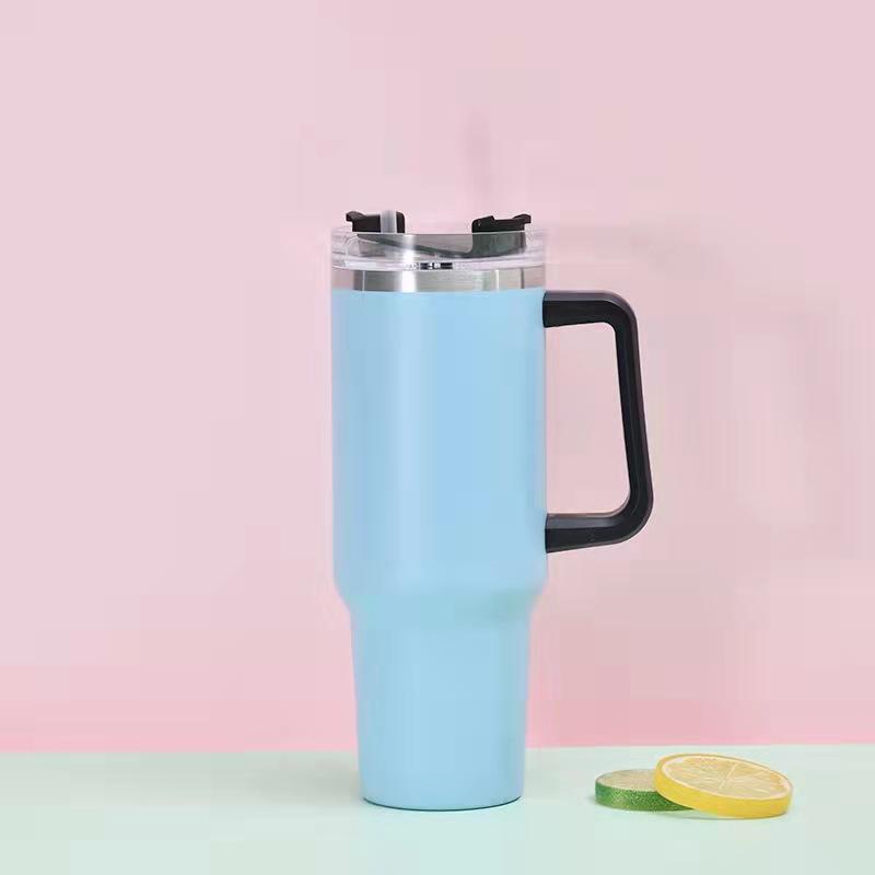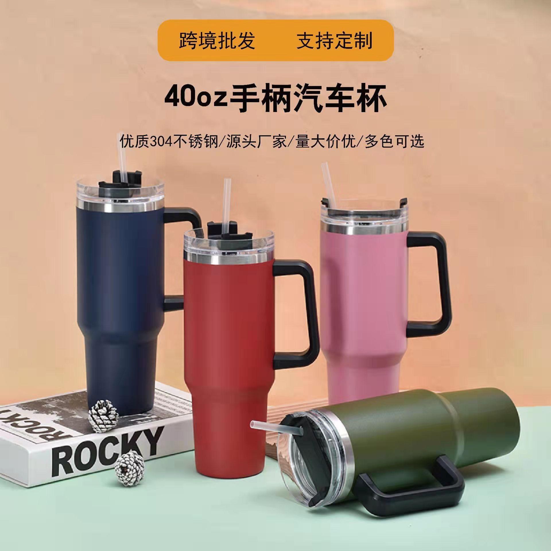 Taza de coche de acero inoxidable de 40 oz transfronteriza, taza con asa portátil para exteriores, taza de gran capacidad con aislamiento térmico para frío y hielo, taza con tubo de succión