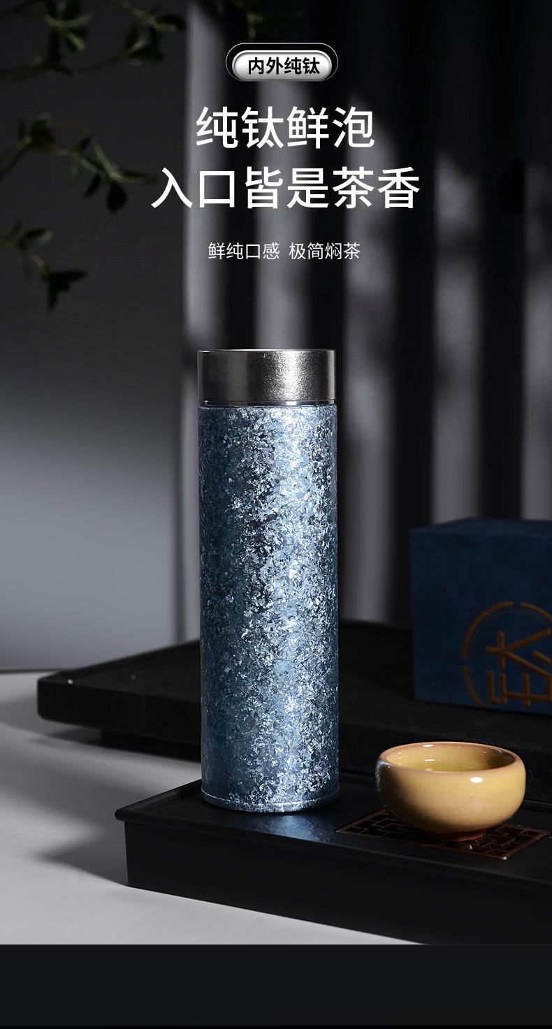 Taza Termo de Titanio Puro, Regalo de Separación de Té y Agua, Taza de Agua Portátil de Alta Gama para Coche y Oficina, Taza de Té, Vaso