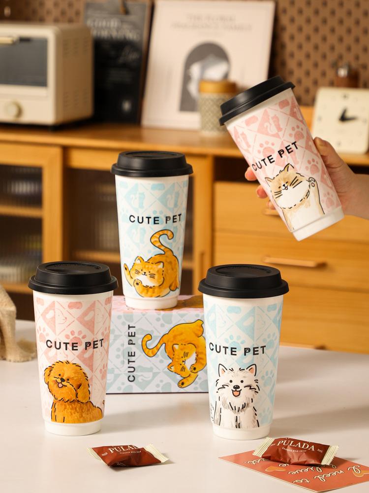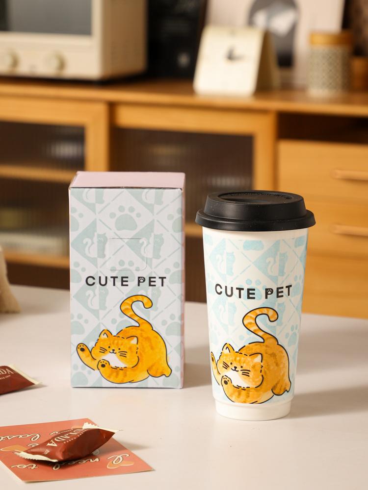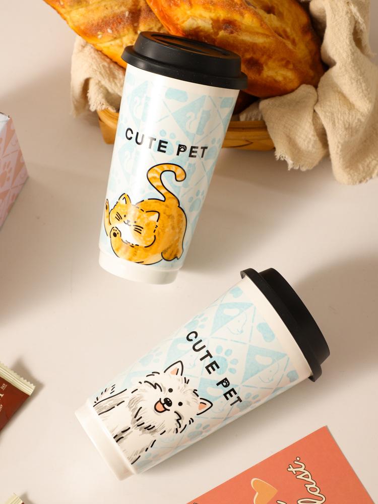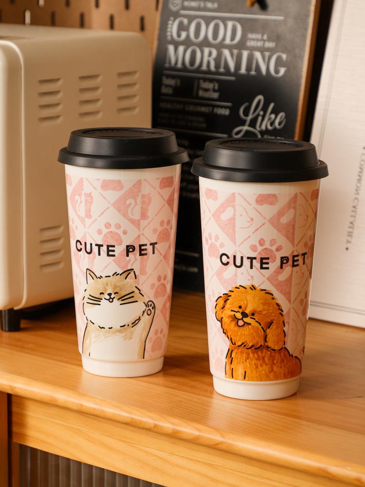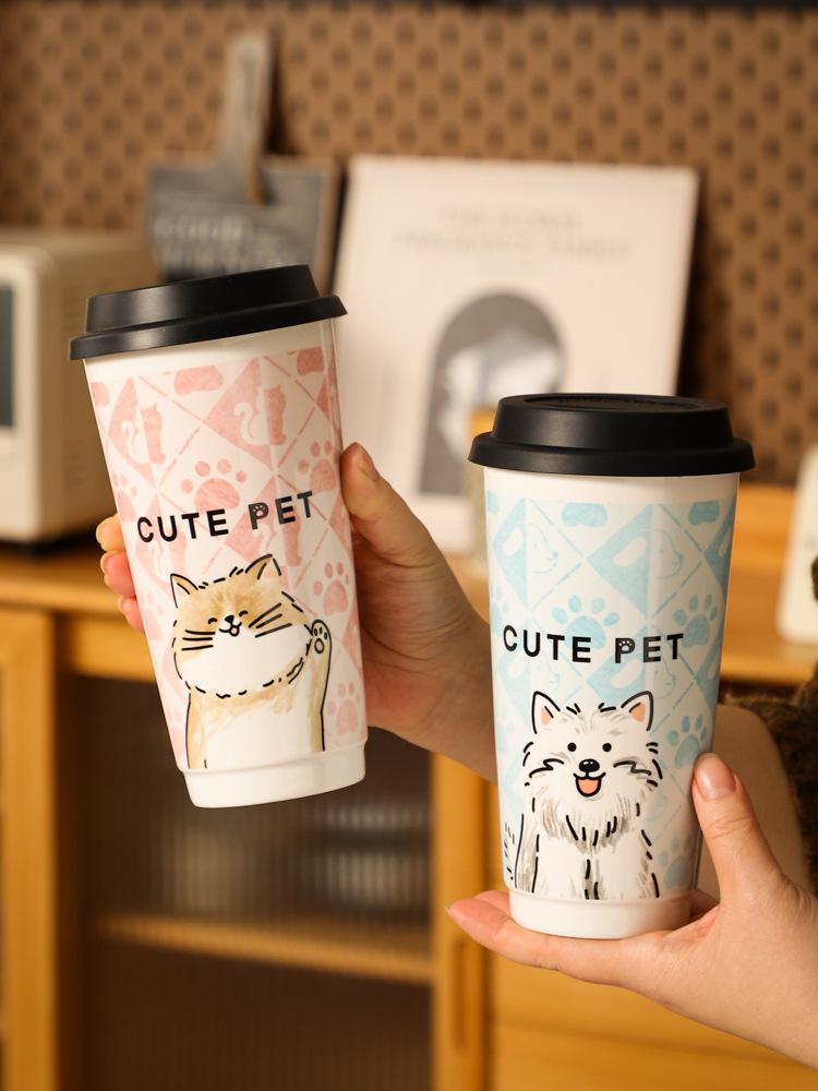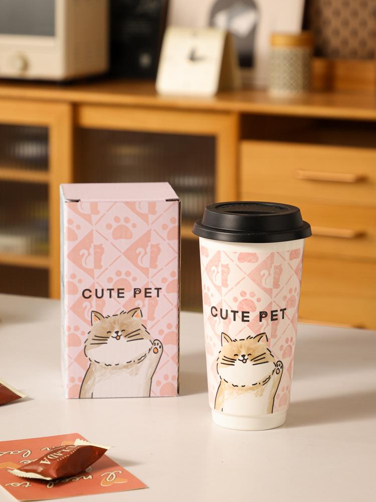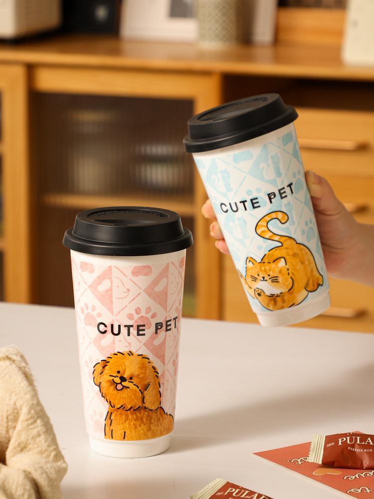 Taza Práctica de Cerámica para Gatito y Cachorro Candy Wind, Alto Valor de Color, Gran Capacidad, Taza para Beber, Taza para Café de Oficina y Hogar