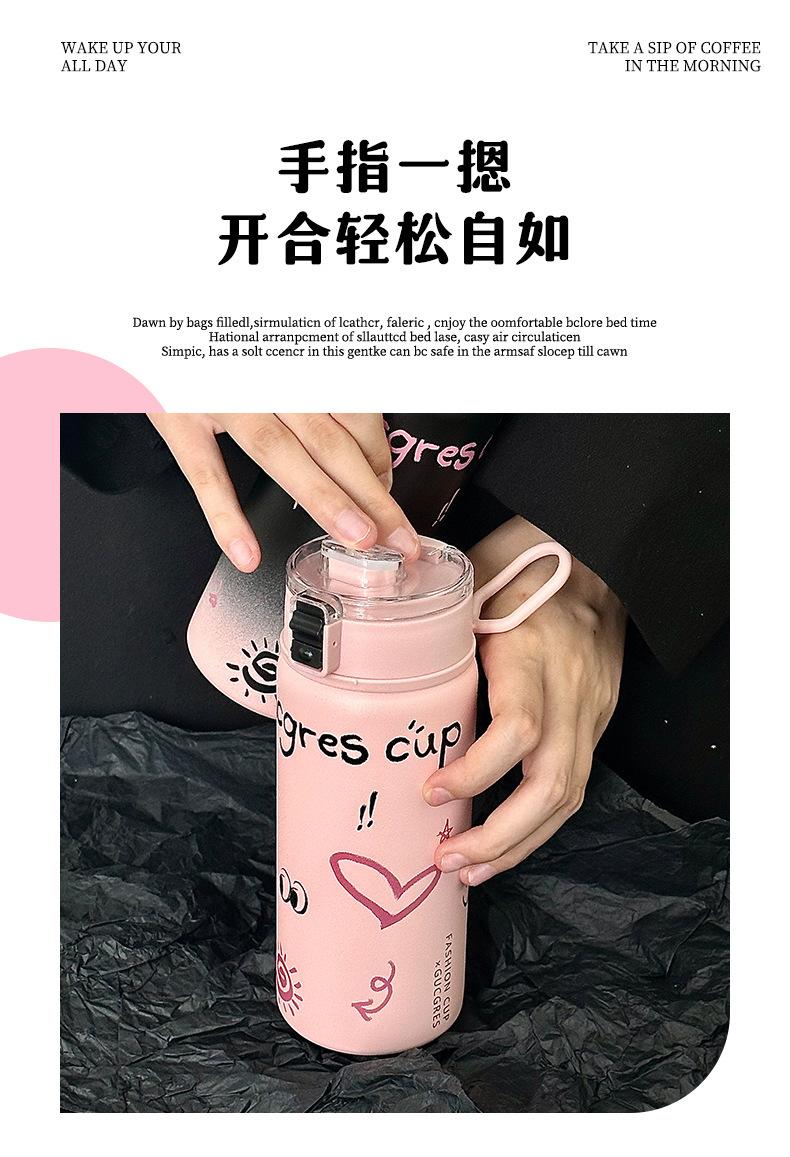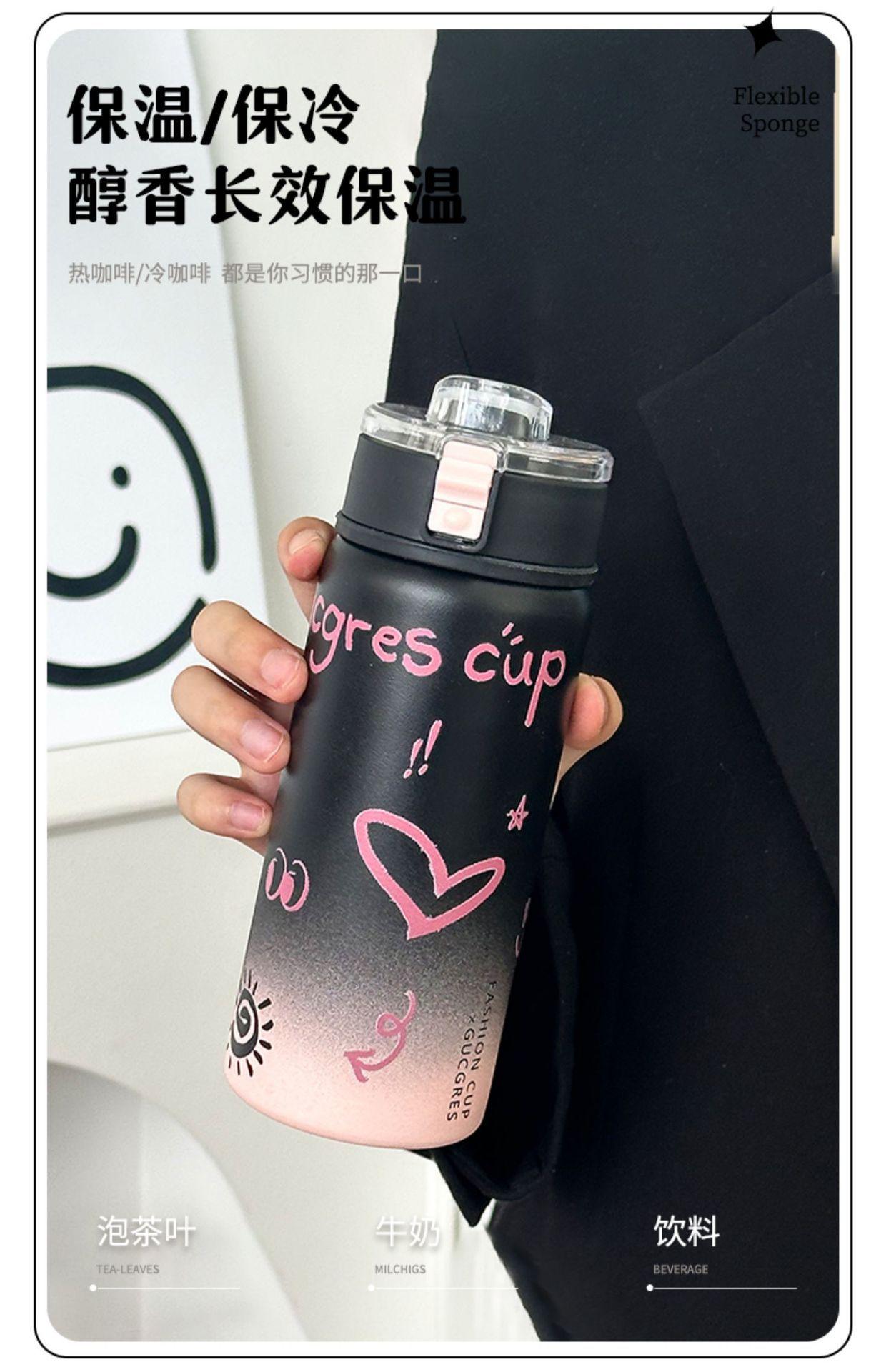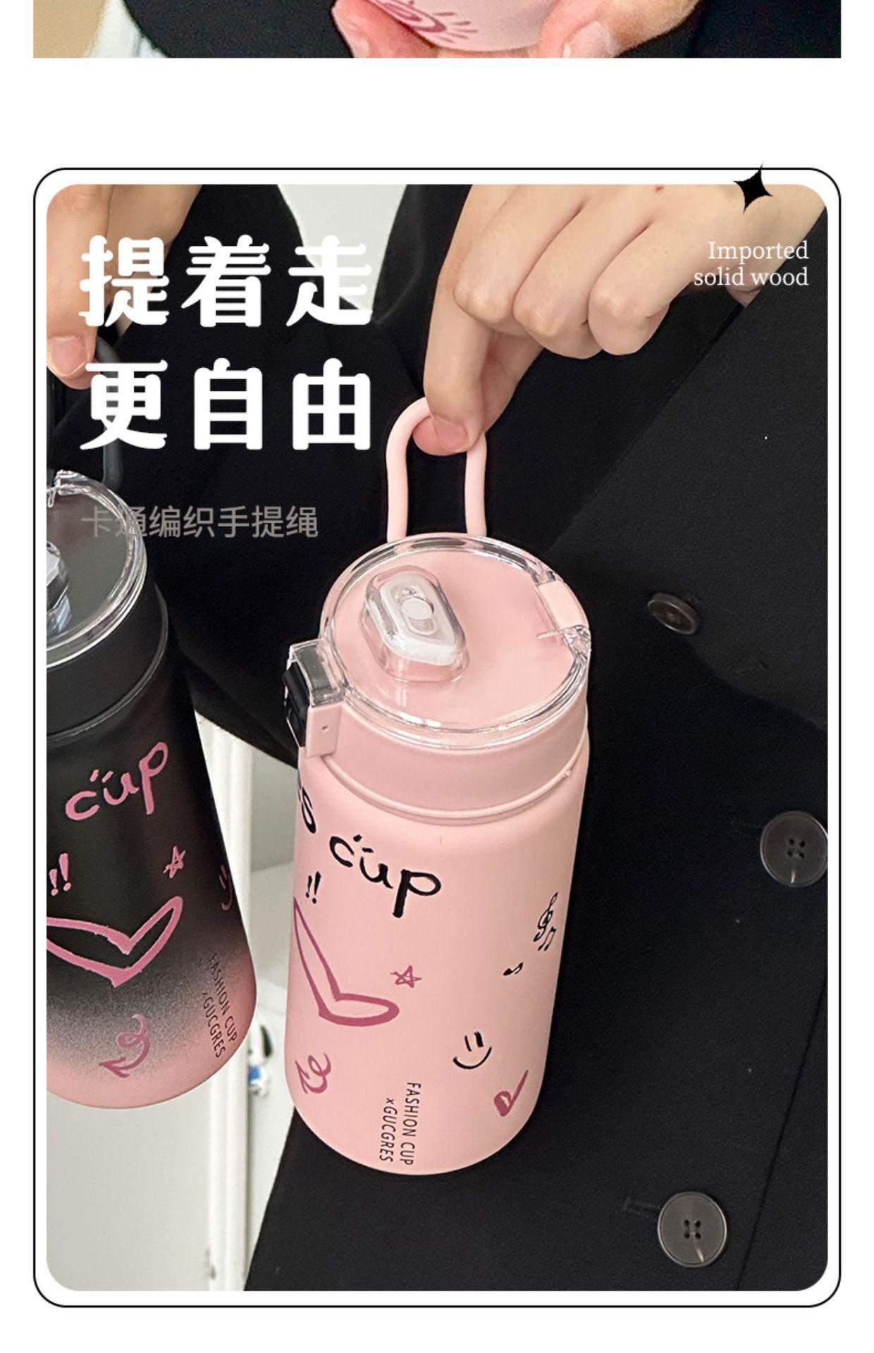 Termo de alto valor sin impresión, taza de té con asa para niñas, taza de drenaje, taza portátil de acero inoxidable, taza de estilo ins personalizable