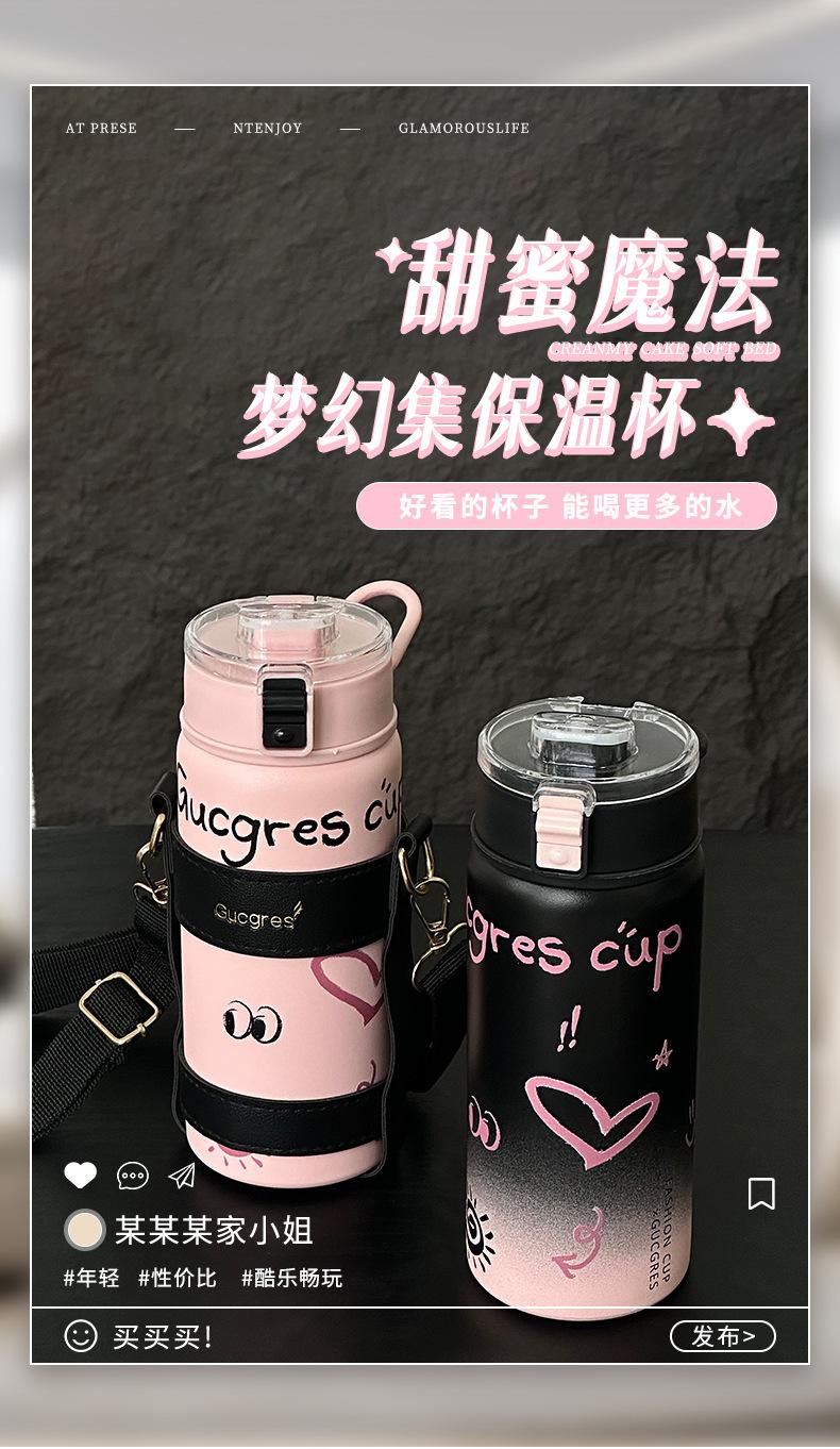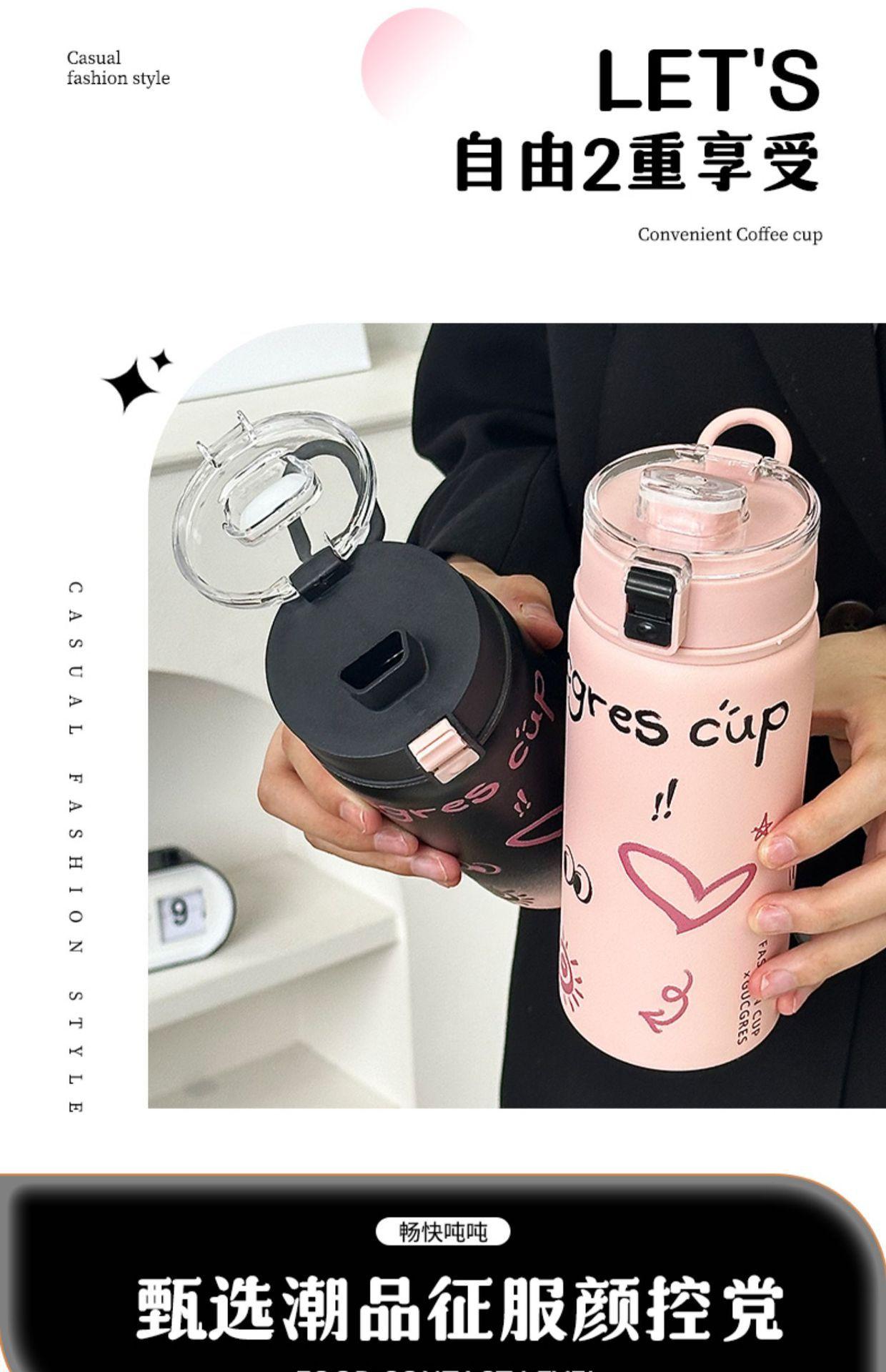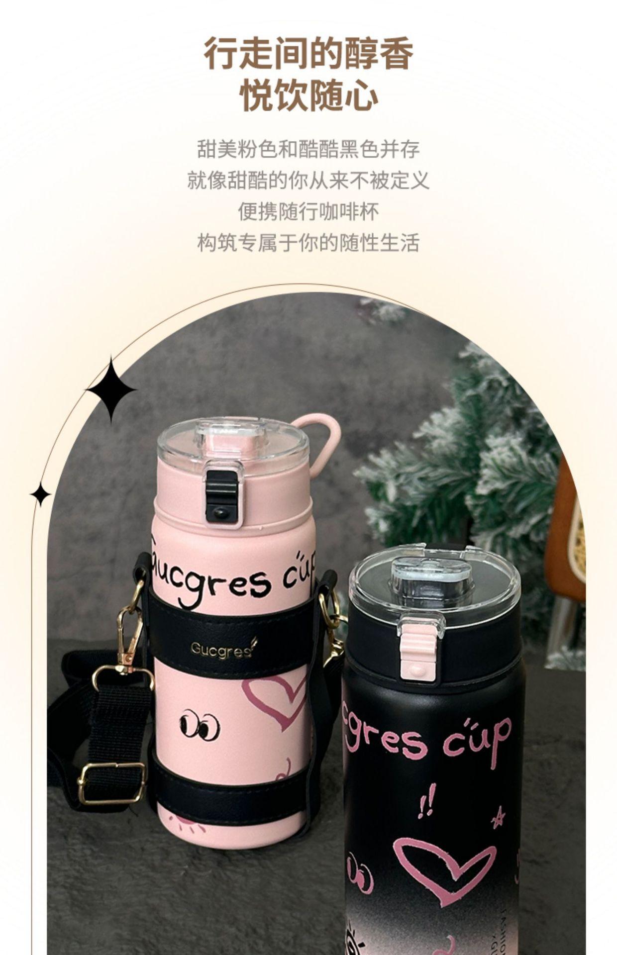 Termo de alto valor sin impresión, taza de té con asa para niñas, taza de drenaje, taza portátil de acero inoxidable, taza de estilo ins personalizable
