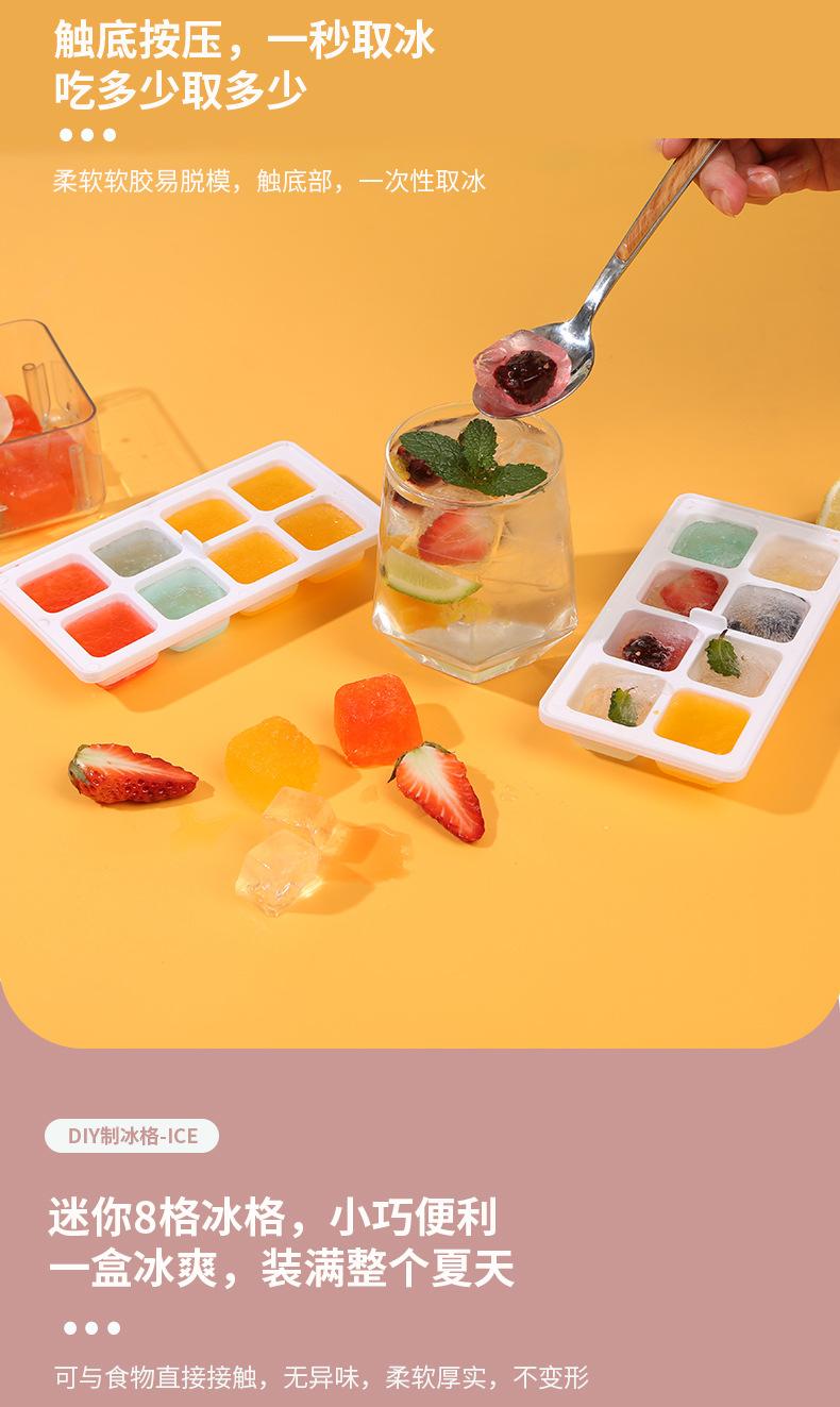 Molde para cubitos de hielo con pegamento suave, creativo, con tapa, para el hogar, cuadrado, para hacer hielo