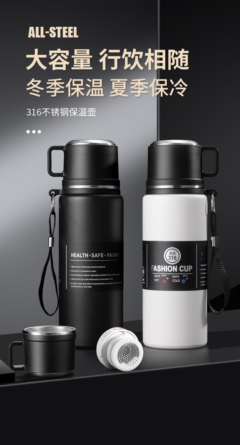 Hervidor de agua con aislamiento térmico de acero inoxidable 316, taza térmica de gran capacidad, venta al por mayor, portátil, para negocios, con separación de té, taza térmica portátil