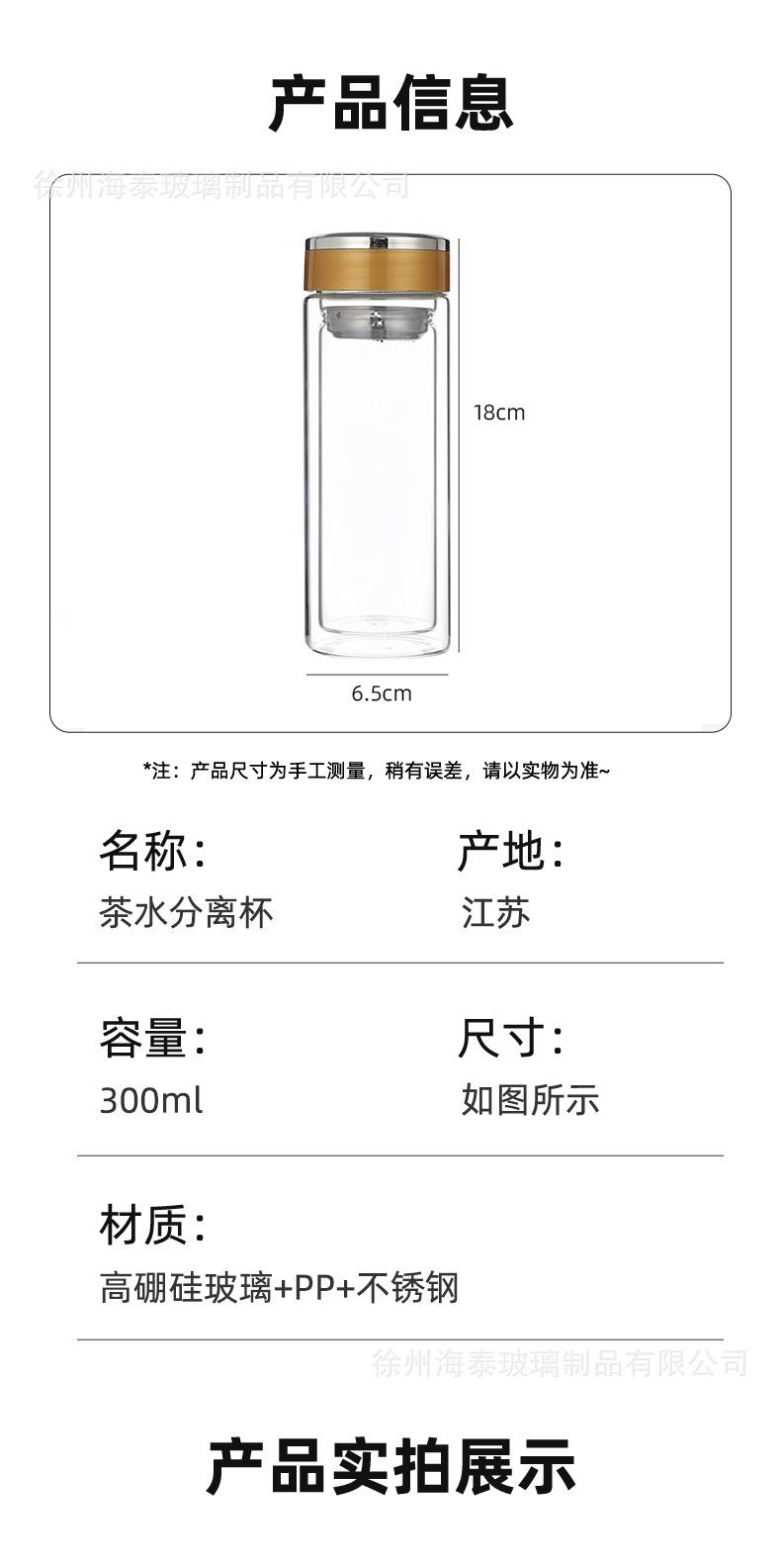 Vaso de Agua de Doble Vidrio Transparente Regalo de Negocios Vaso de Té Venta al por Mayor Vaso Separador de Té y Agua Vaso de Agua de Alto Borosilicato