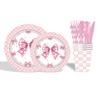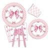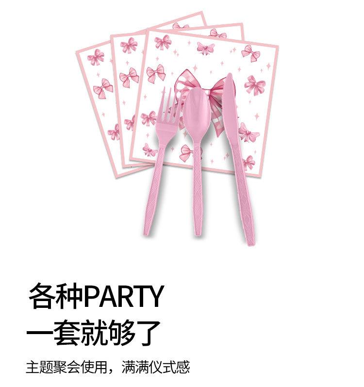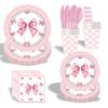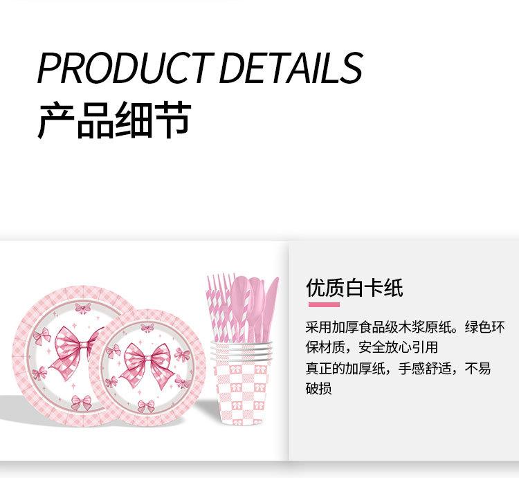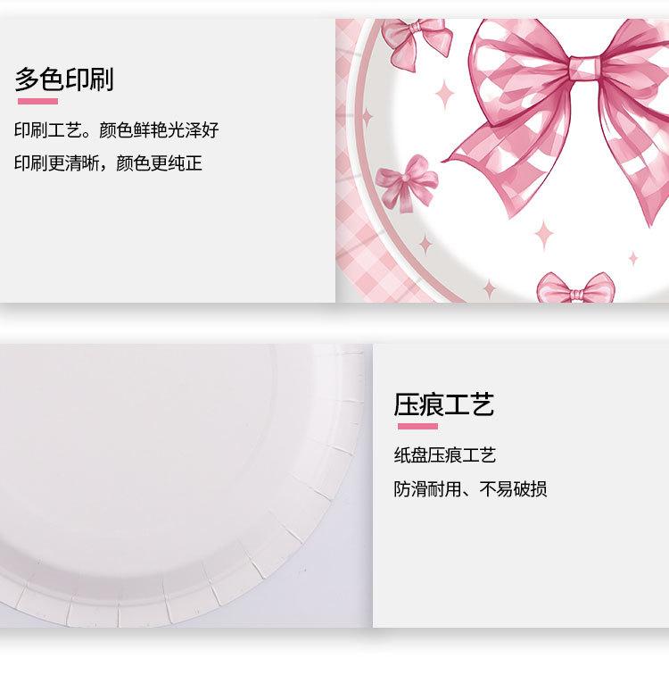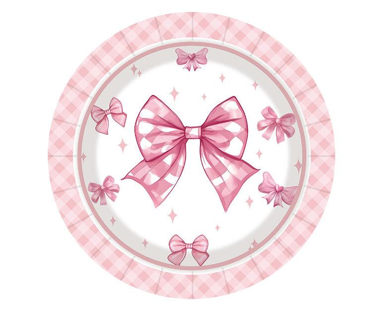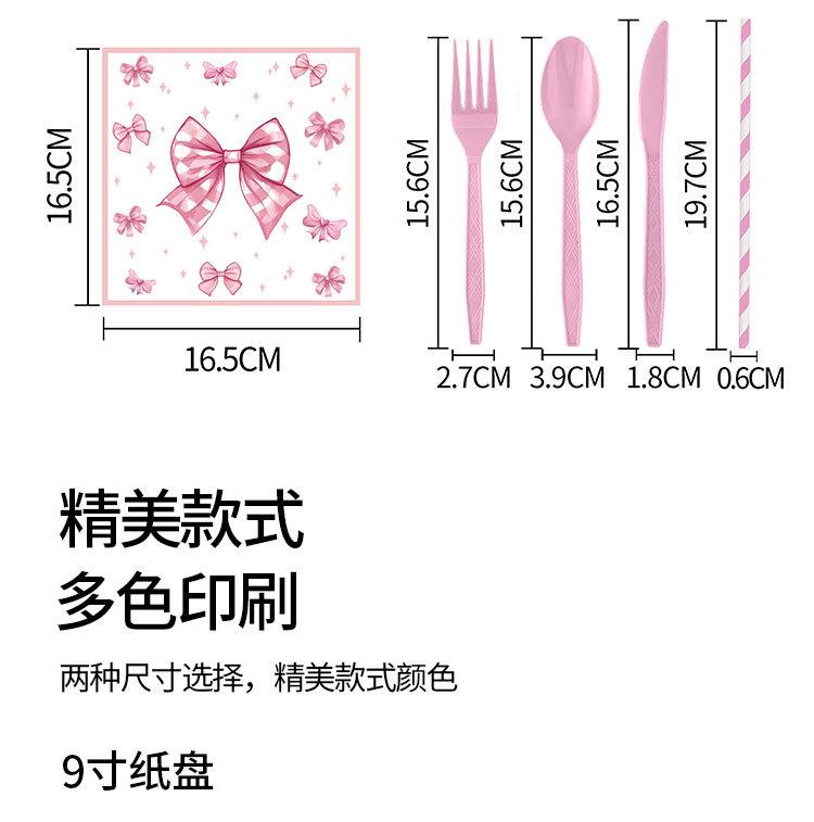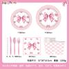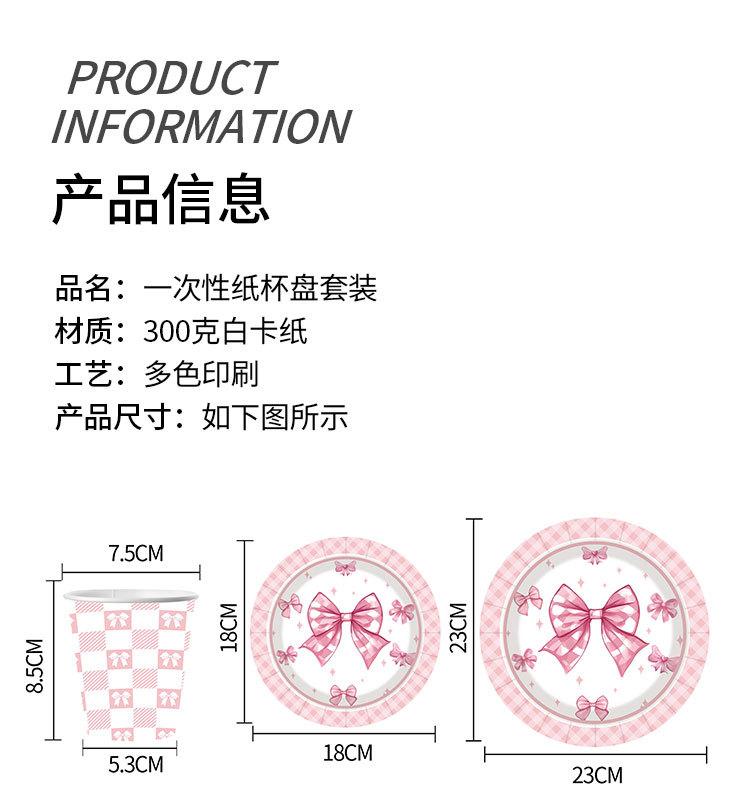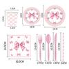 Artículos para fiestas con lazo, vajilla desechable, vasos de papel, platos de papel, tartas de cumpleaños, vajilla decorativa de papel.