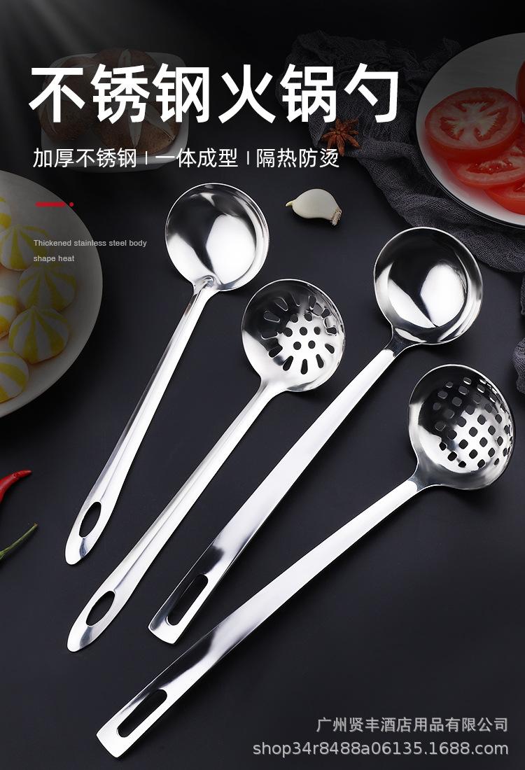 Cuchara para sopa y olla caliente, colador de mango largo, de acero inoxidable, para gachas, tamaño pequeño, gruesa, estilo coreano, para uso doméstico