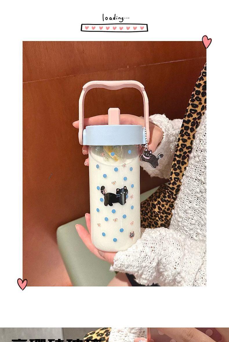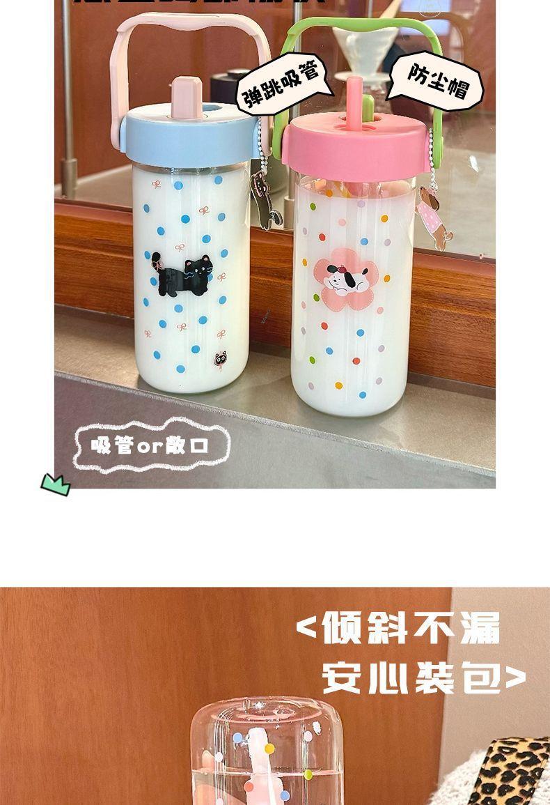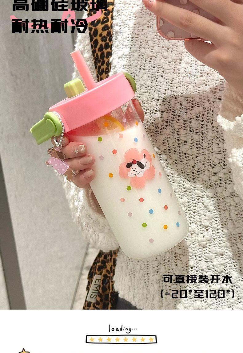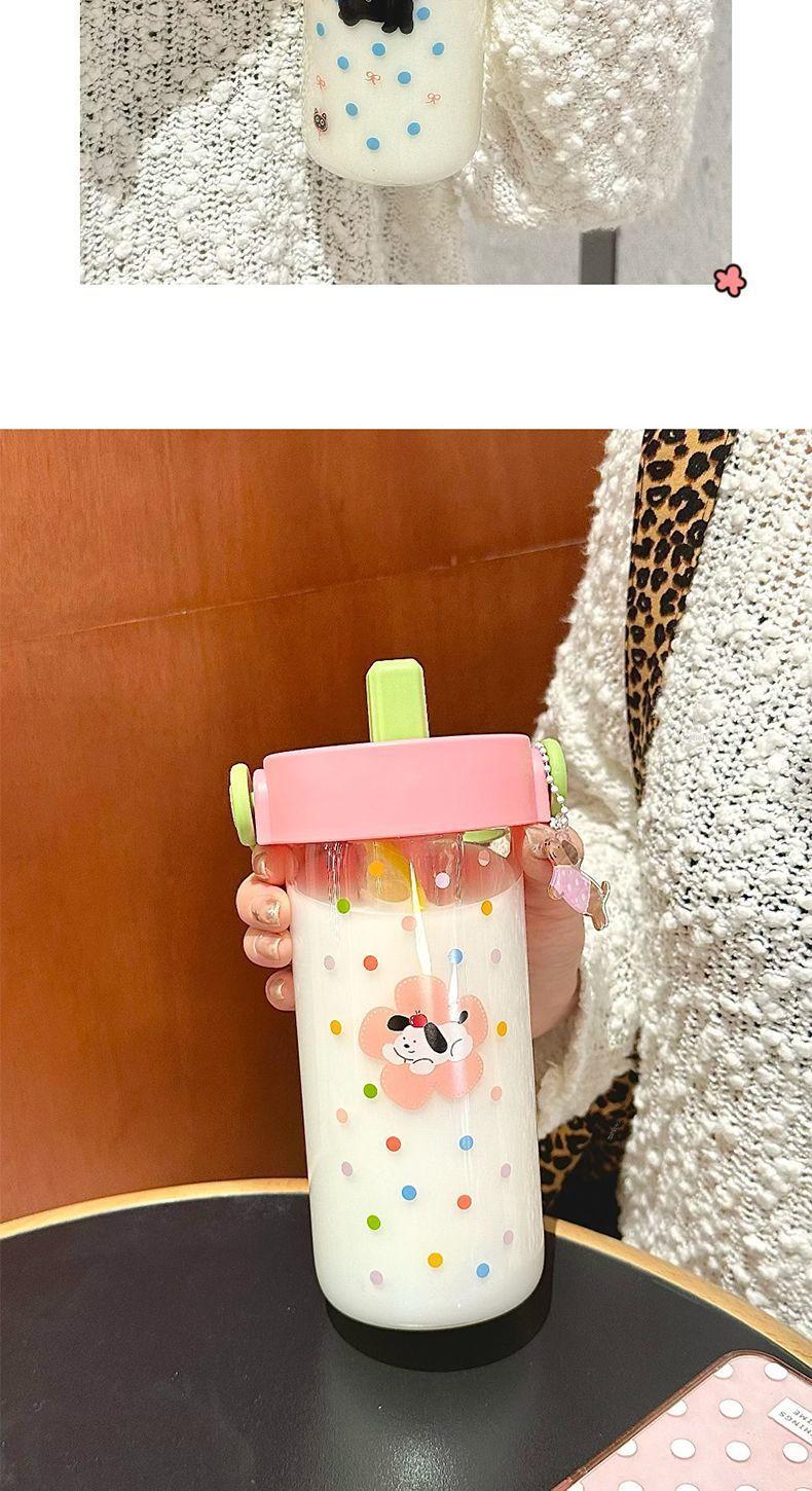Vaso de Agua Vaso de Vidrio Vaso Portátil para Mujer para Escuela Verano Pajita Vaso Resistente a Altas Temperaturas Vaso Ins de Alto Color Separación de Té