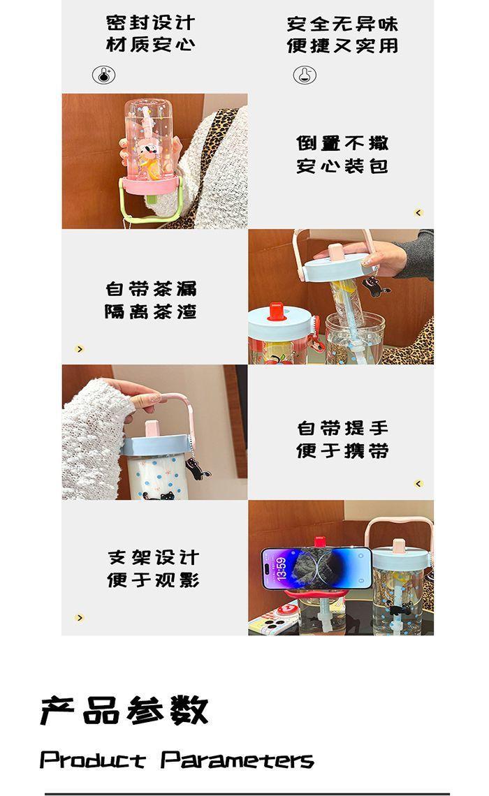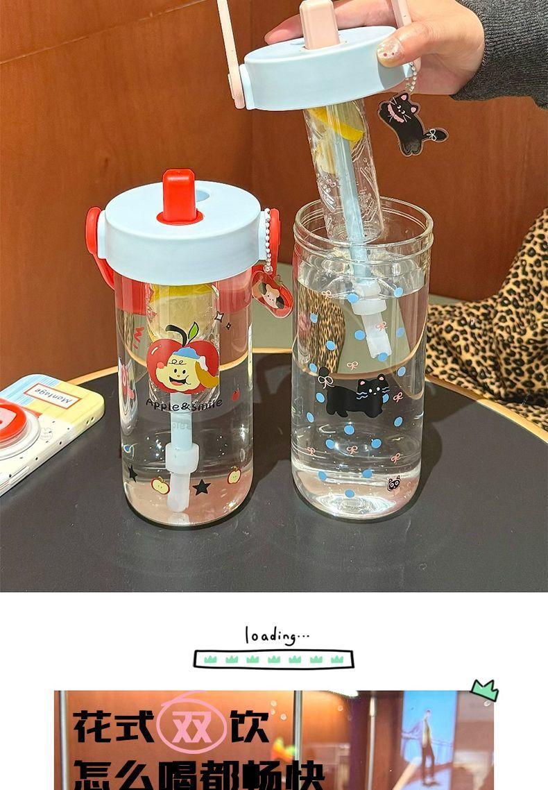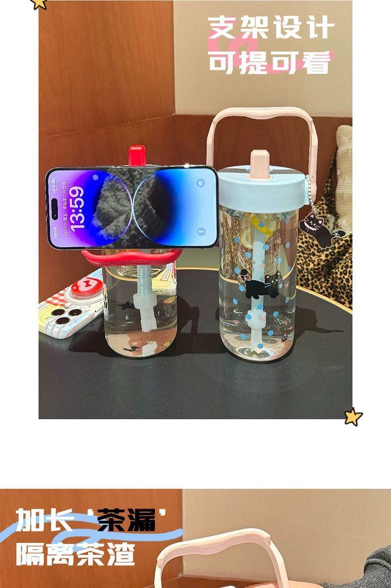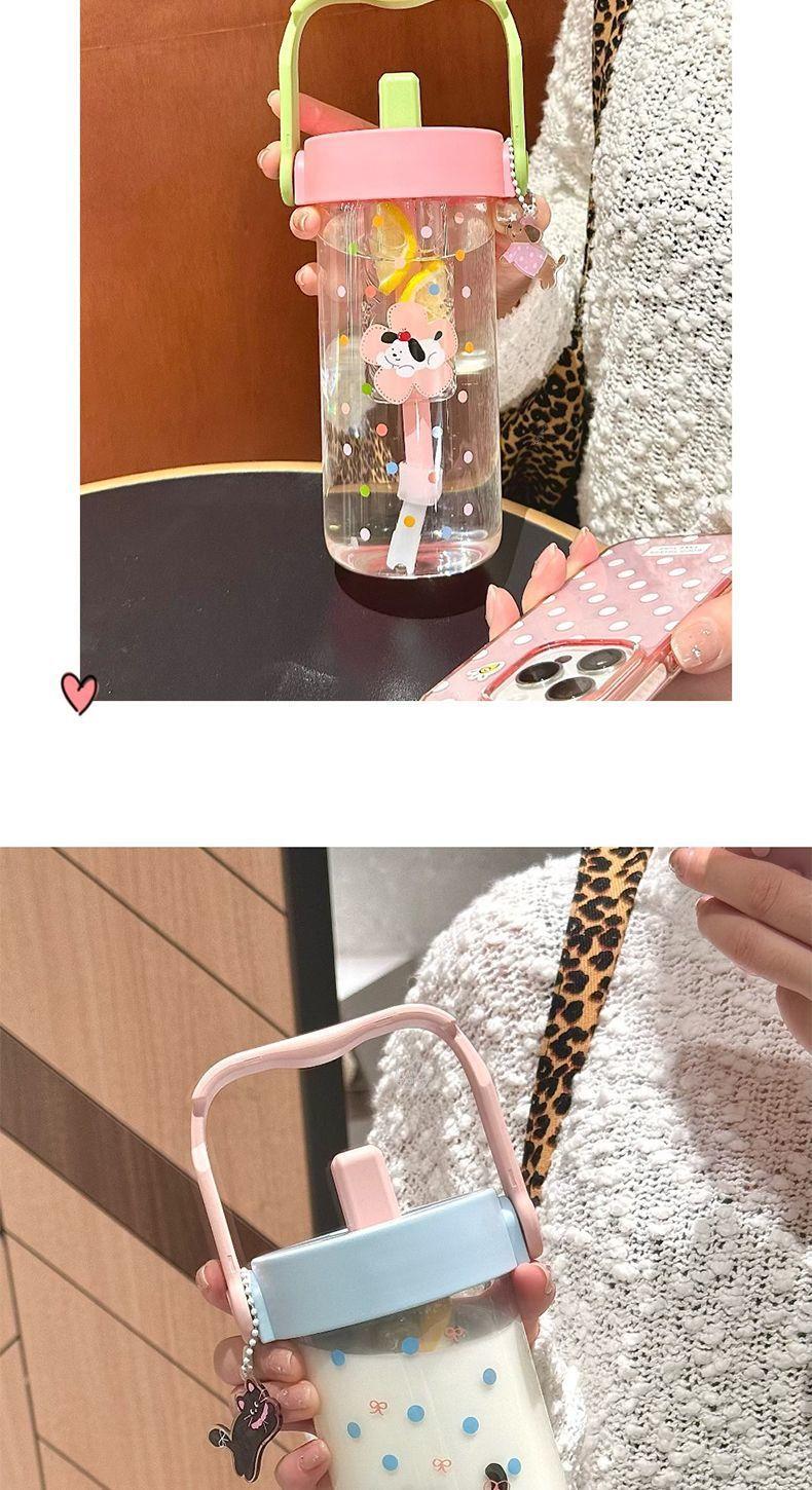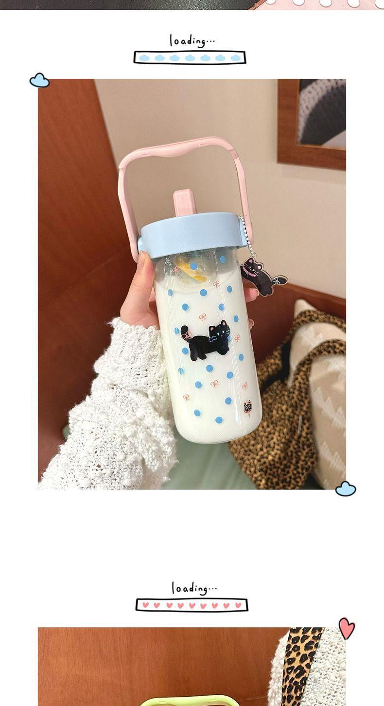 Vaso de Agua Vaso de Vidrio Vaso Portátil para Mujer para Escuela Verano Pajita Vaso Resistente a Altas Temperaturas Vaso Ins de Alto Color Separación de Té