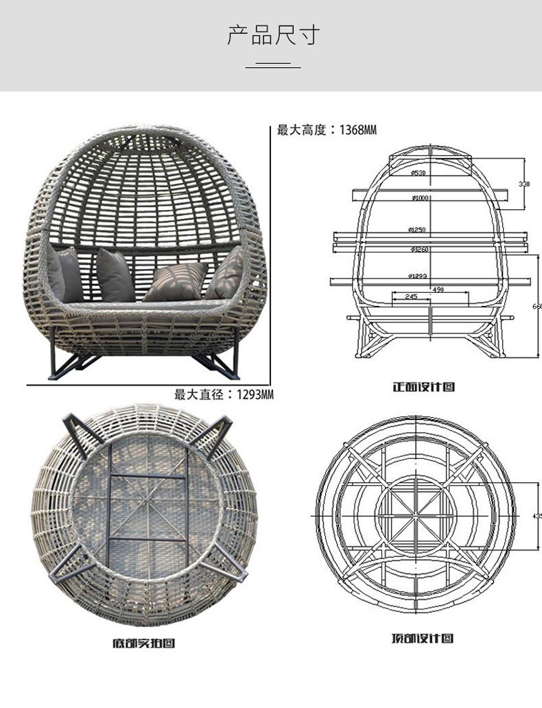 Sofá de ratán para ocio al aire libre, Villa creativa redonda nido de pájaro, Cama para tumbarse, Muebles jaula de pájaros tejidos a mano