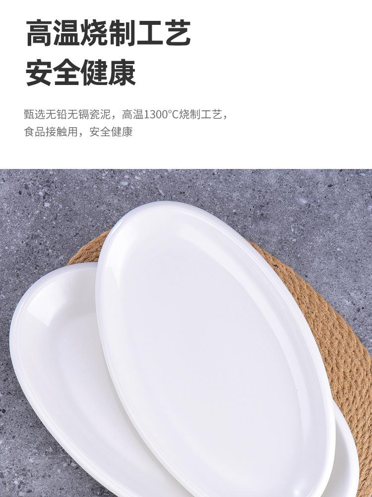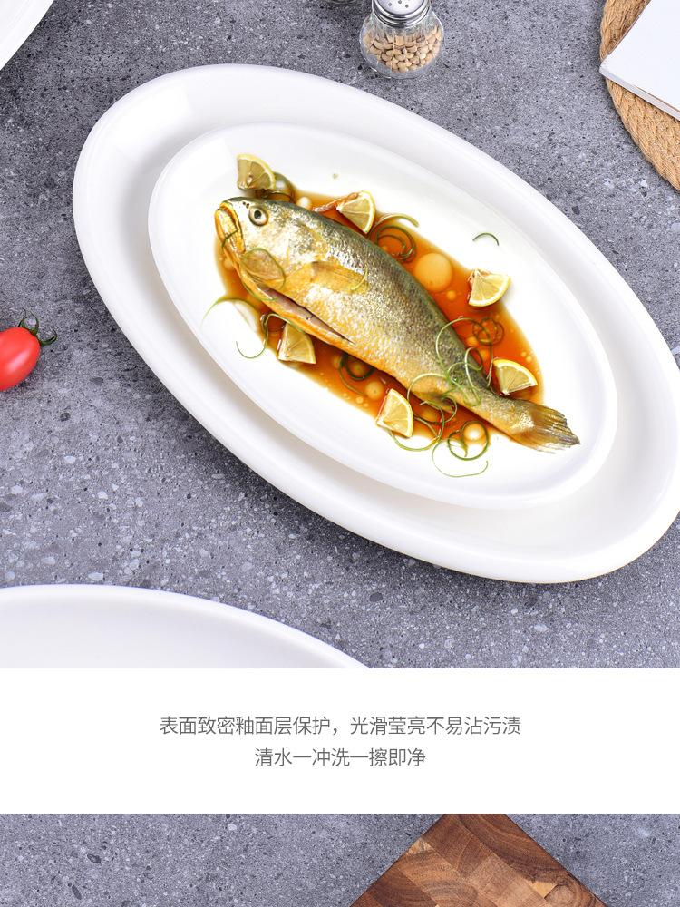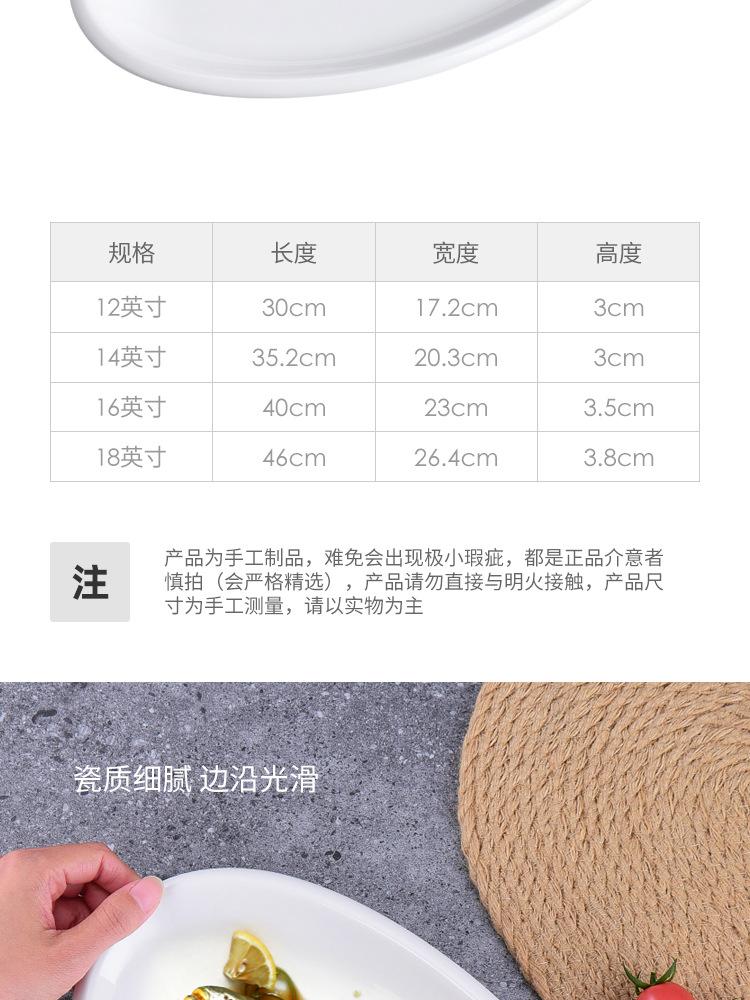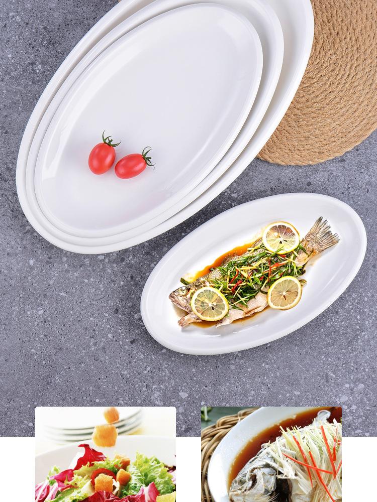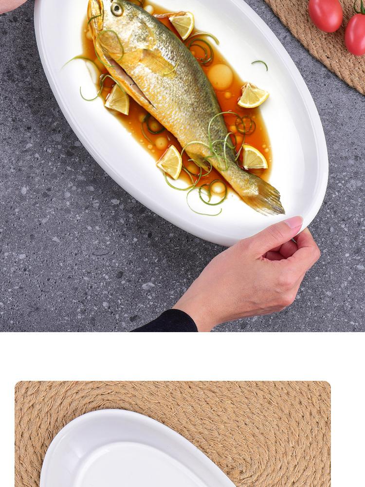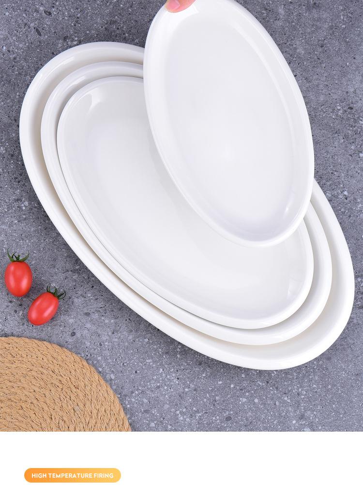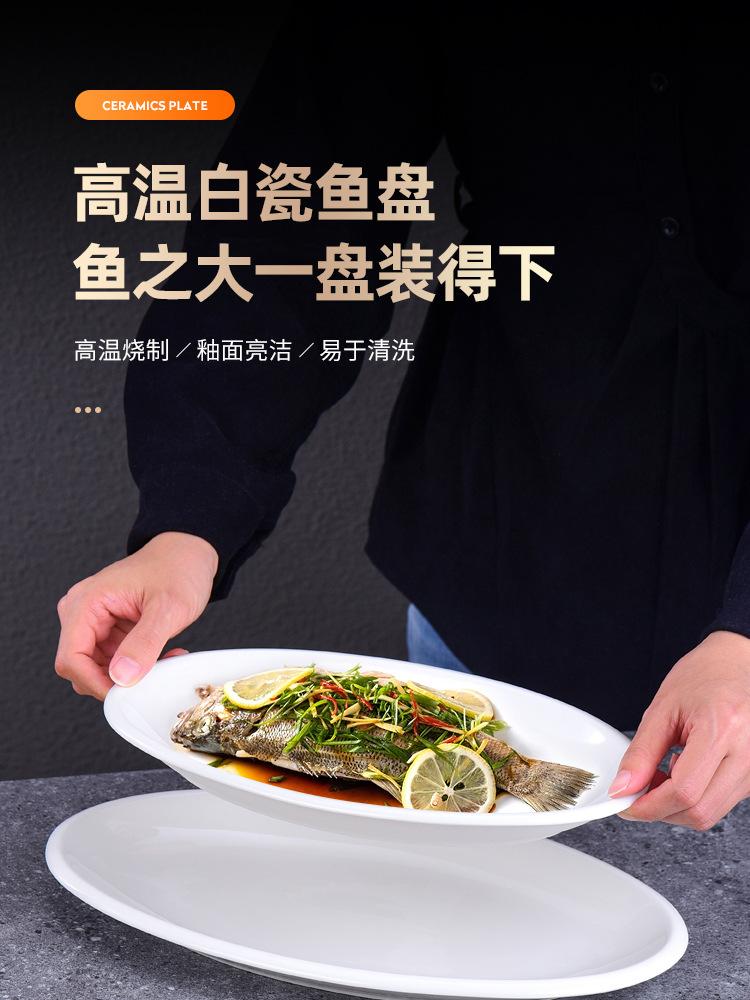 Plato de pescado grueso de porcelana blanca ovalada de 12/14/16/18 pulgadas para hotel, restaurante, hogar, plato grande de cerámica para saltear