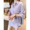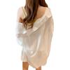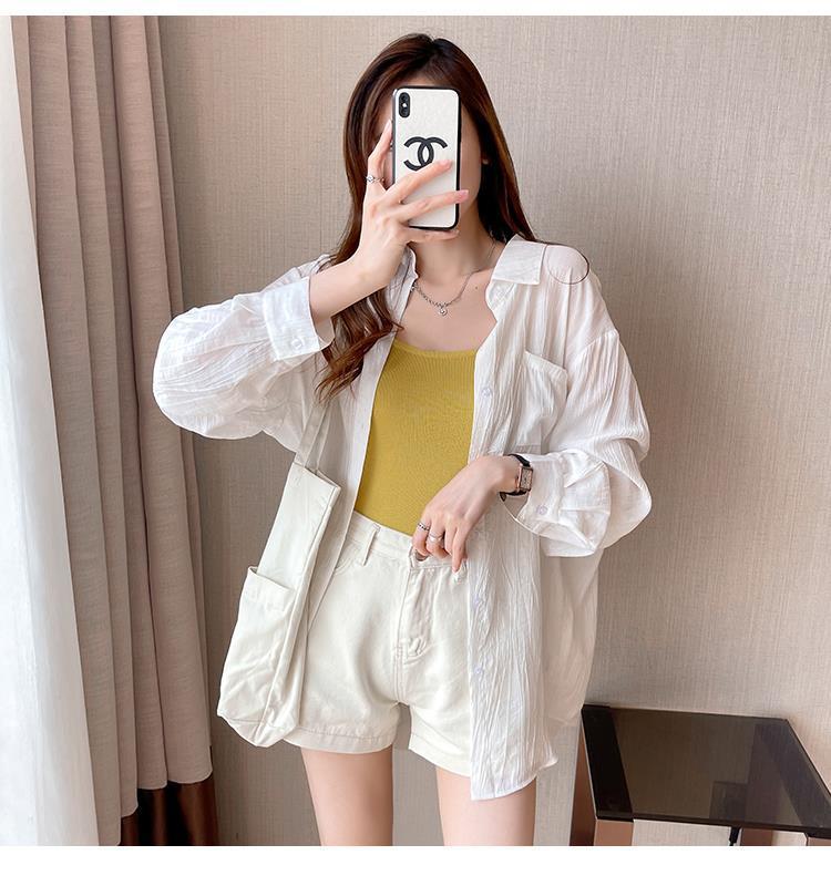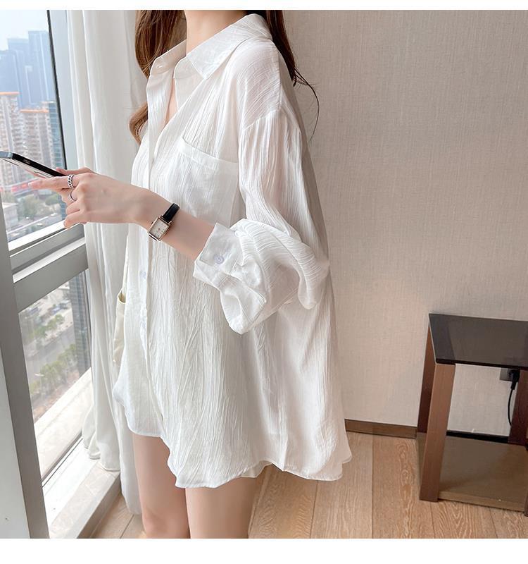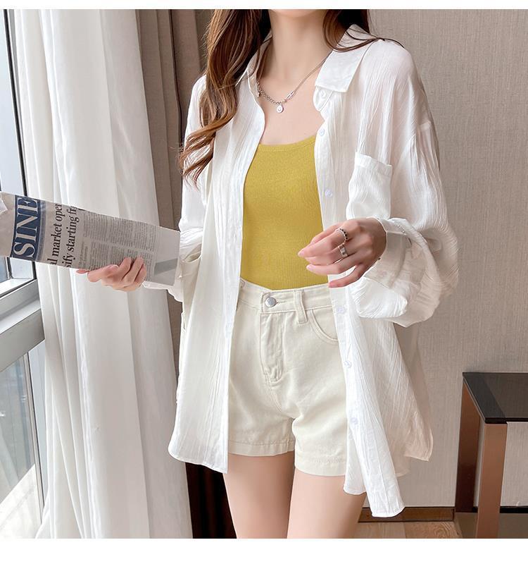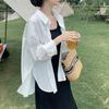 Camisa de seda blanca con protector solar de hielo para mujer, manga larga, novedad de verano 2025, ropa de aire acondicionado que combina con todo, cárdigan, abrigo fino