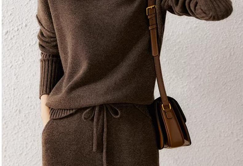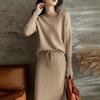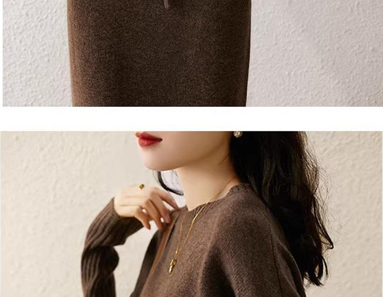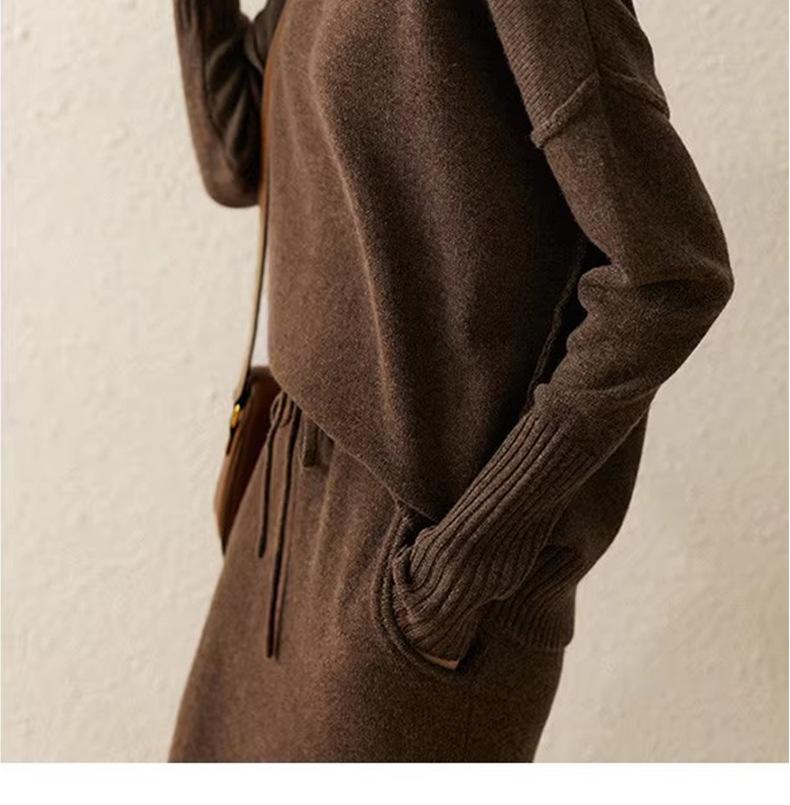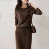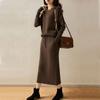 Conjunto de dos piezas de punto de lana para mujer 2024 Primavera, otoño e invierno Traje interior de moda Tejido de punto Cordón Falda larga de cintura alta de moda