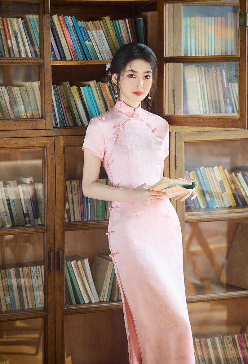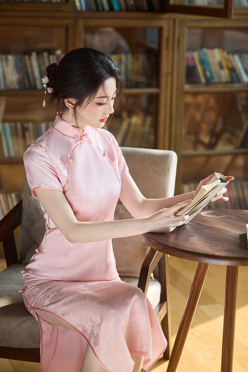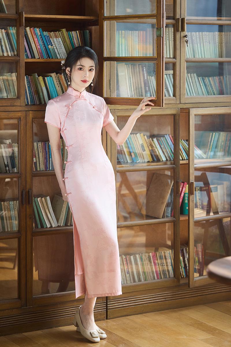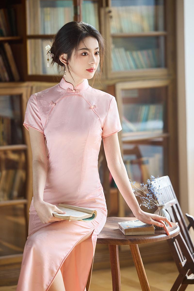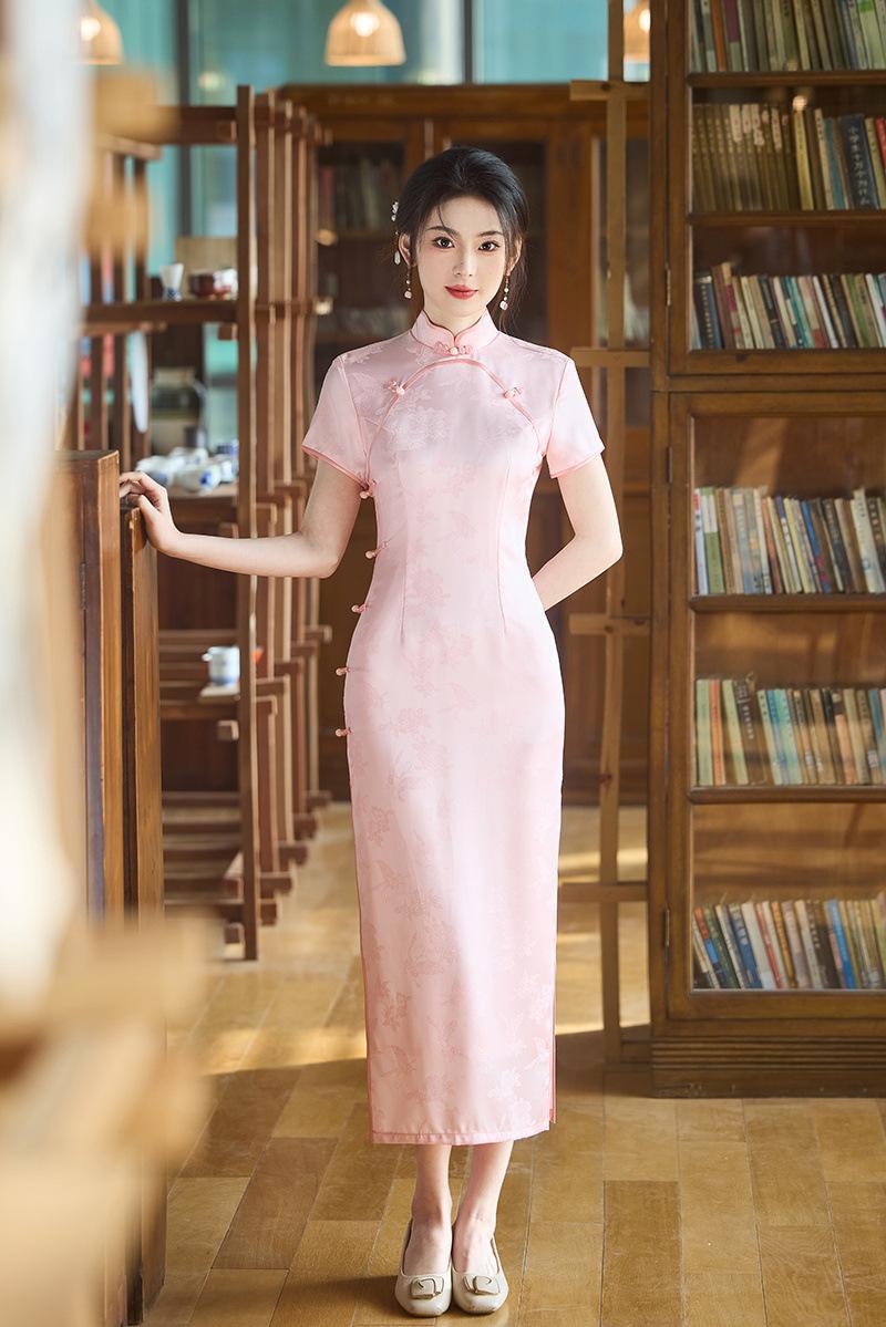 Características:Cheongsam nuevo, tela, textura suave, buena caída, no se encoge, no se decolora, no hace bolitas, ligera elasticidad, más característico de la nación china, bienvenido a comprar,