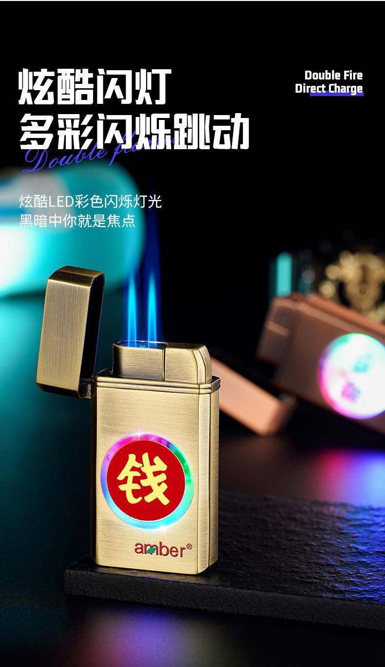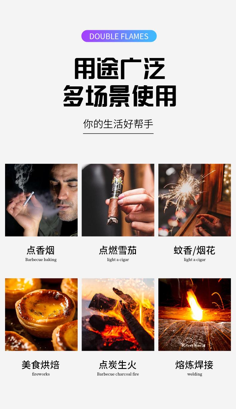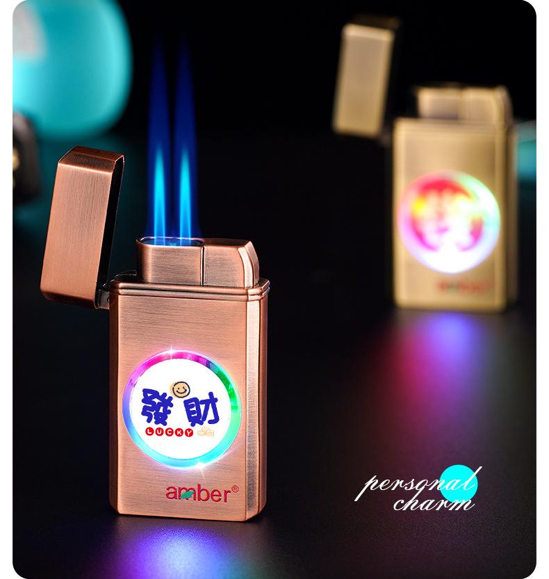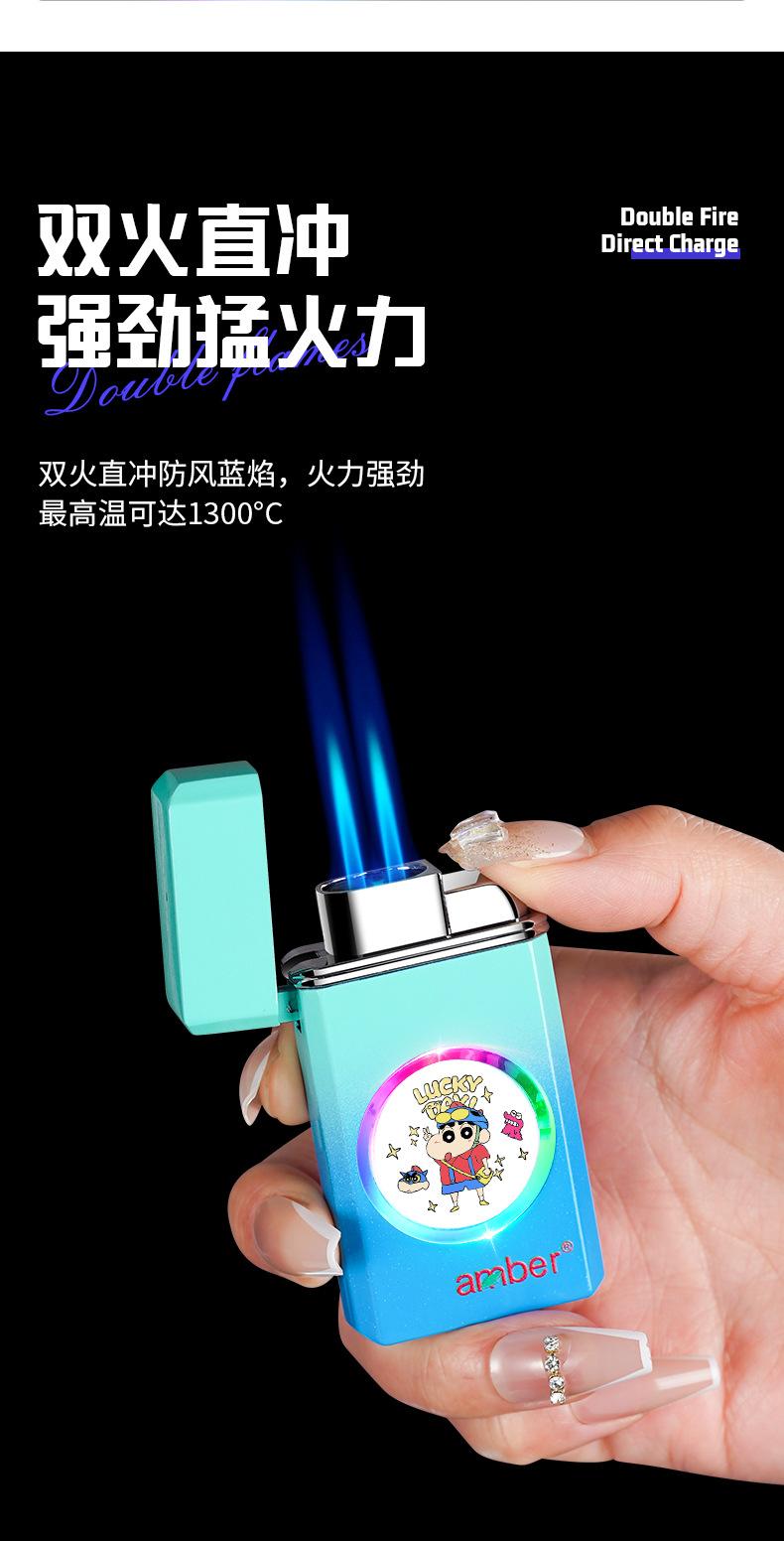 Encendedor inflable grande de metal a prueba de viento con doble fuego directo y fuerte llama azul de TikTok para Internet, ideal para hombres.
