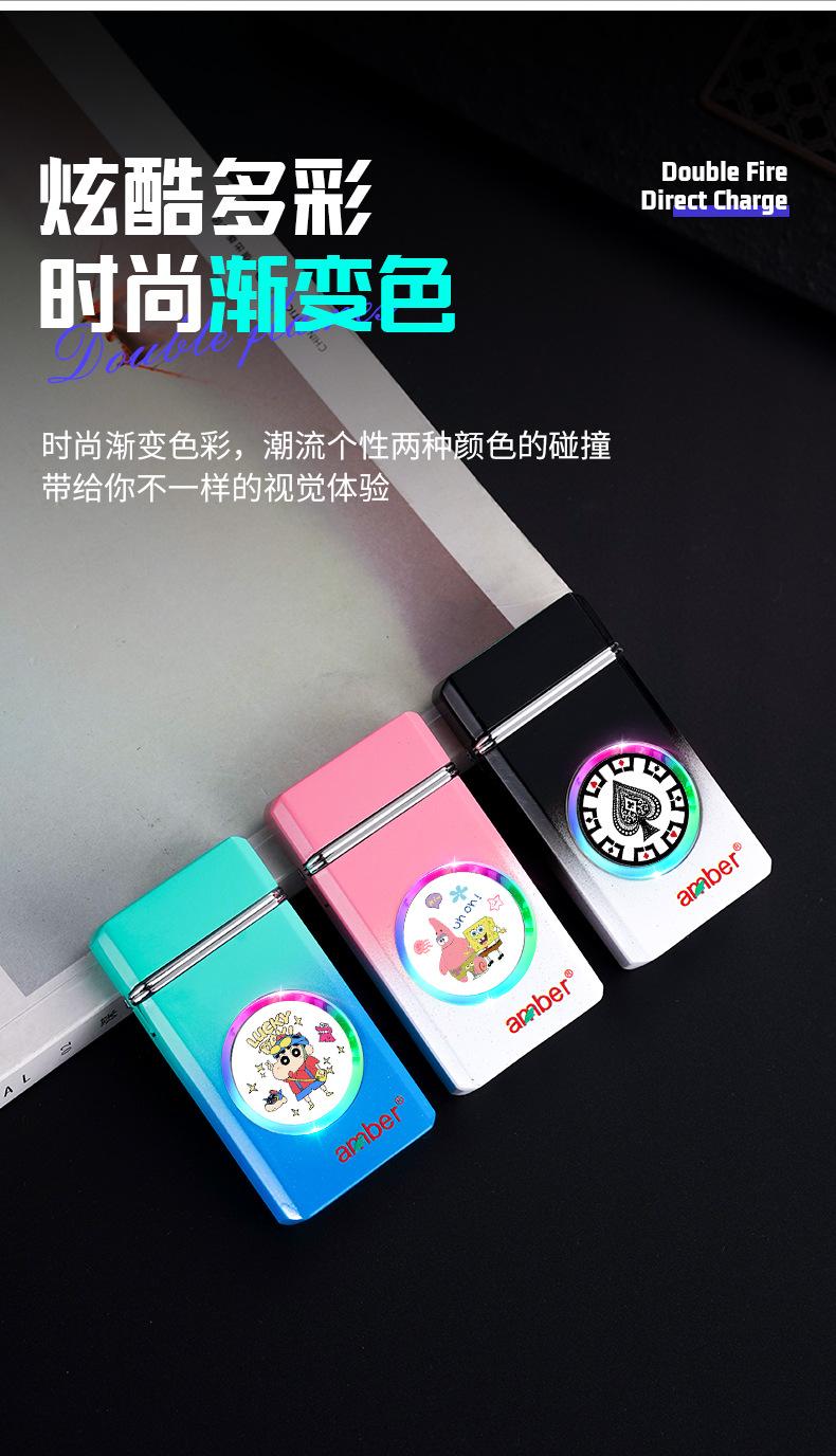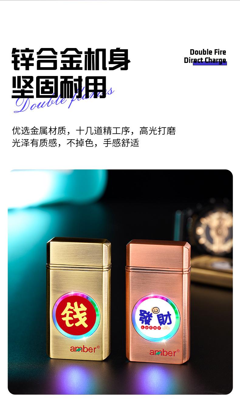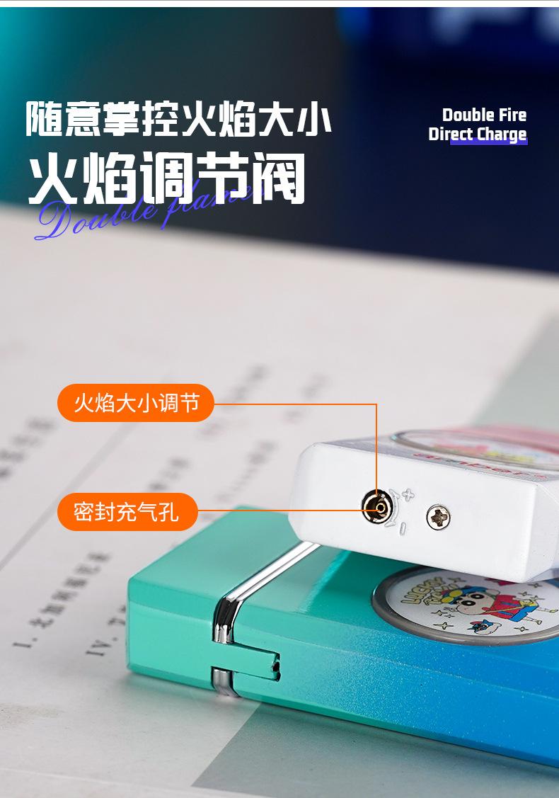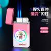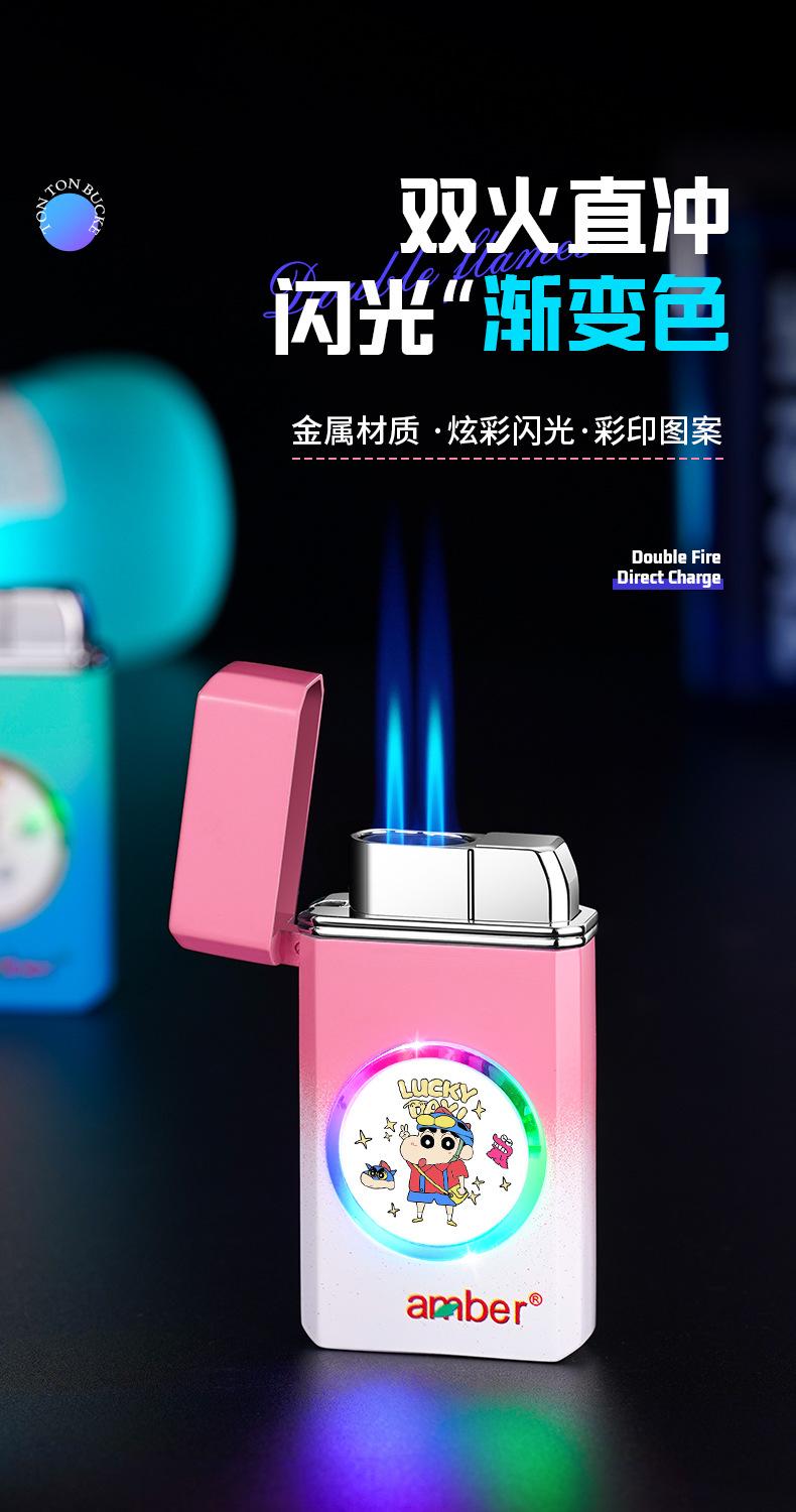 Encendedor inflable grande de metal a prueba de viento con doble fuego directo y fuerte llama azul de TikTok para Internet, ideal para hombres.