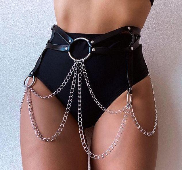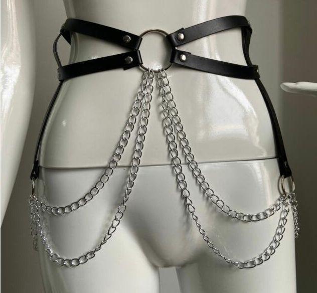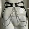 Nueva cadena de cintura transfronteriza europea y americana con decoración de PU con borlas de metal multicapa, cadena para el cuerpo, cinturón hueco sexy, joyería