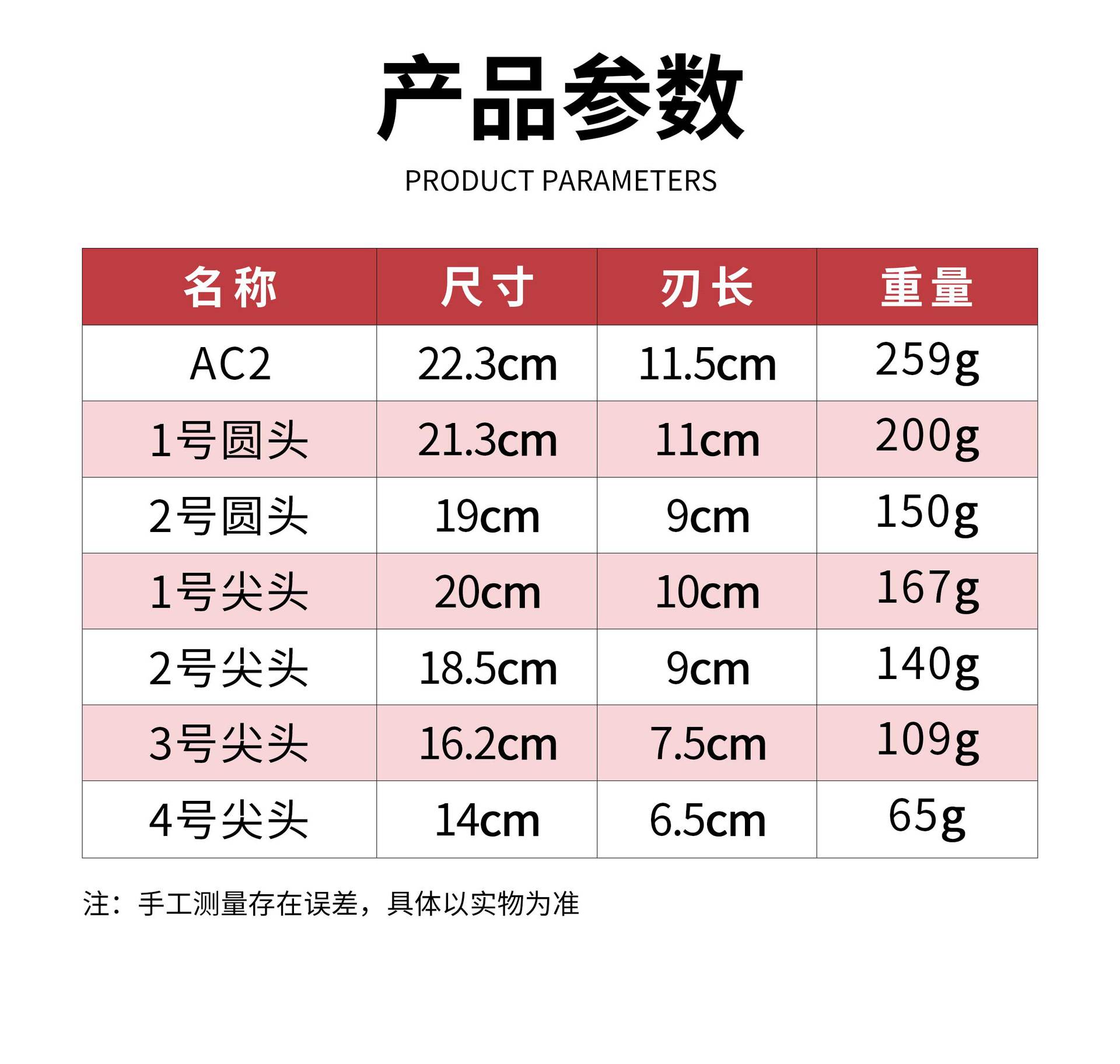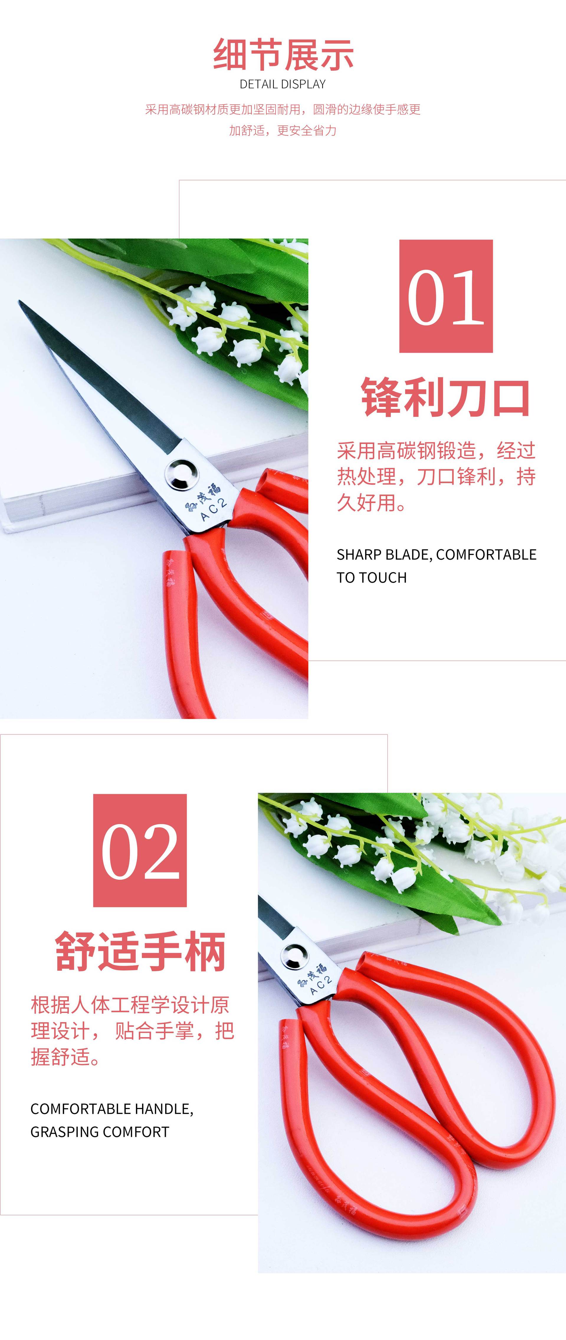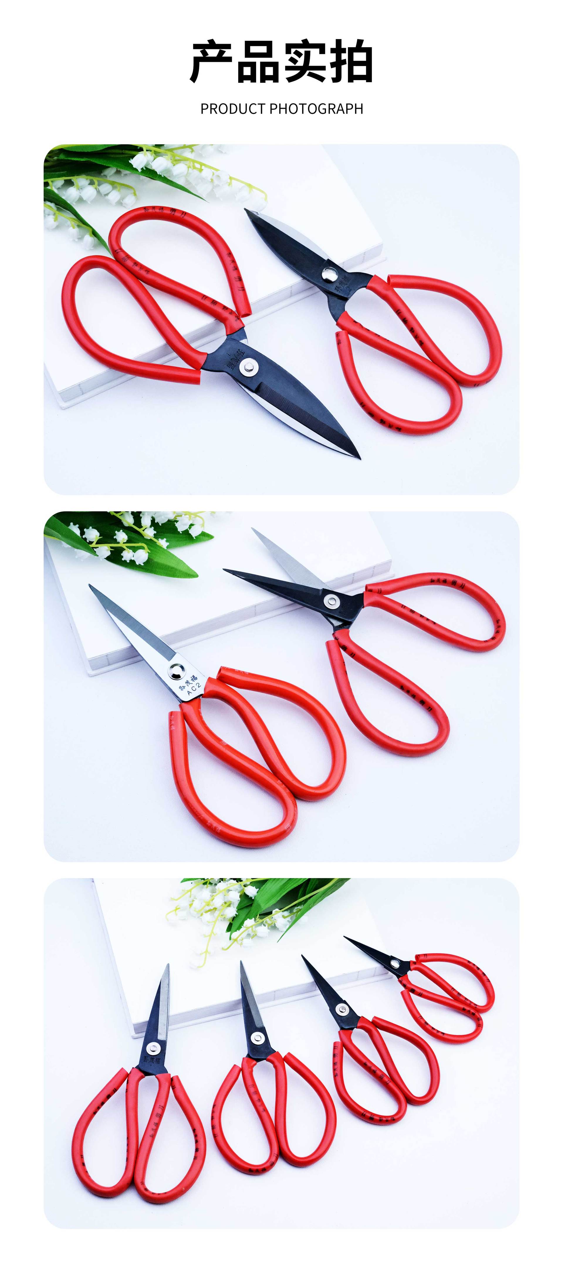 No. 1 round head-red household scissors (21.3*11cm), No. 2 round head-red household scissors (19*10.5cm), No. ...