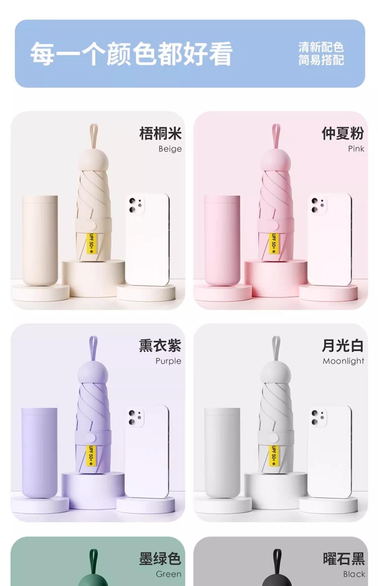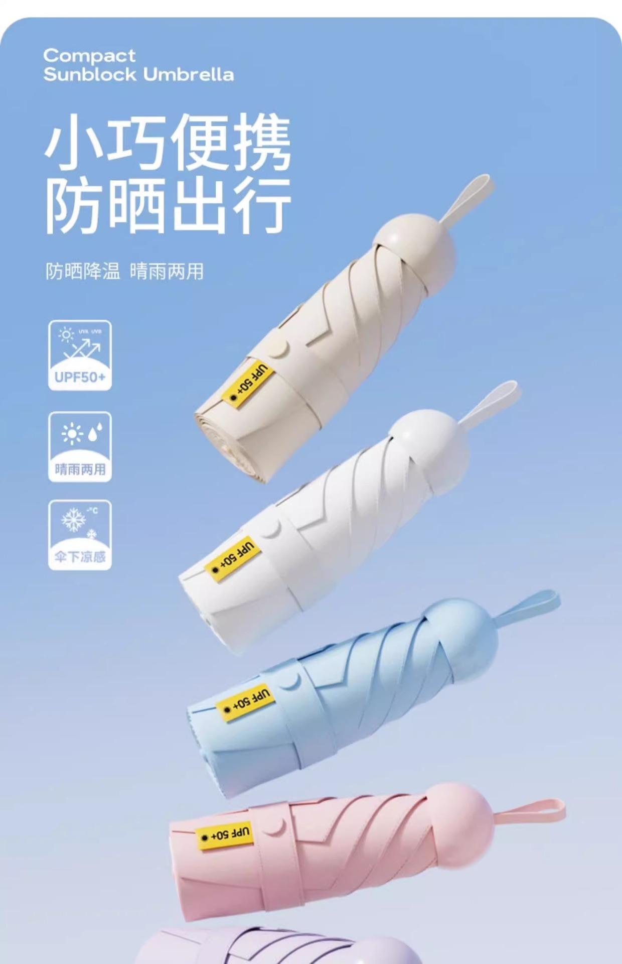 Paraguas Cápsula Compacto y Portátil para Sol y Lluvia, Protección Solar para Mujeres y Protección UV para Exterior Vinilo 50% de descuento Paraguas para Sol