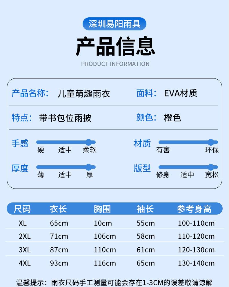 Impermeable Largo Grueso de Dibujos Animados para Niños de Jardín de Niños y Estudiantes de Primaria Mochila Grande Poncho de Conejito Bebé
