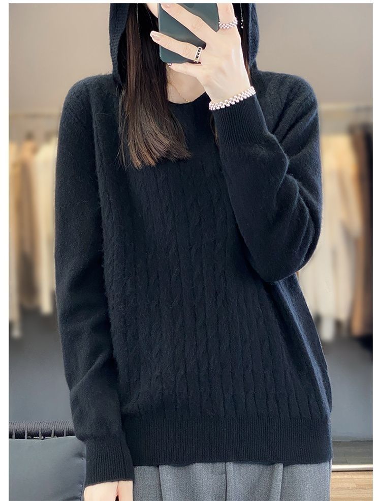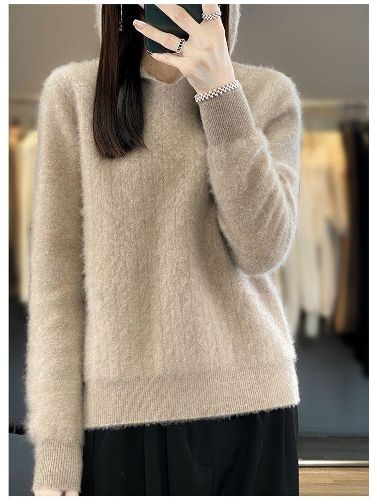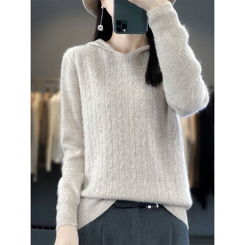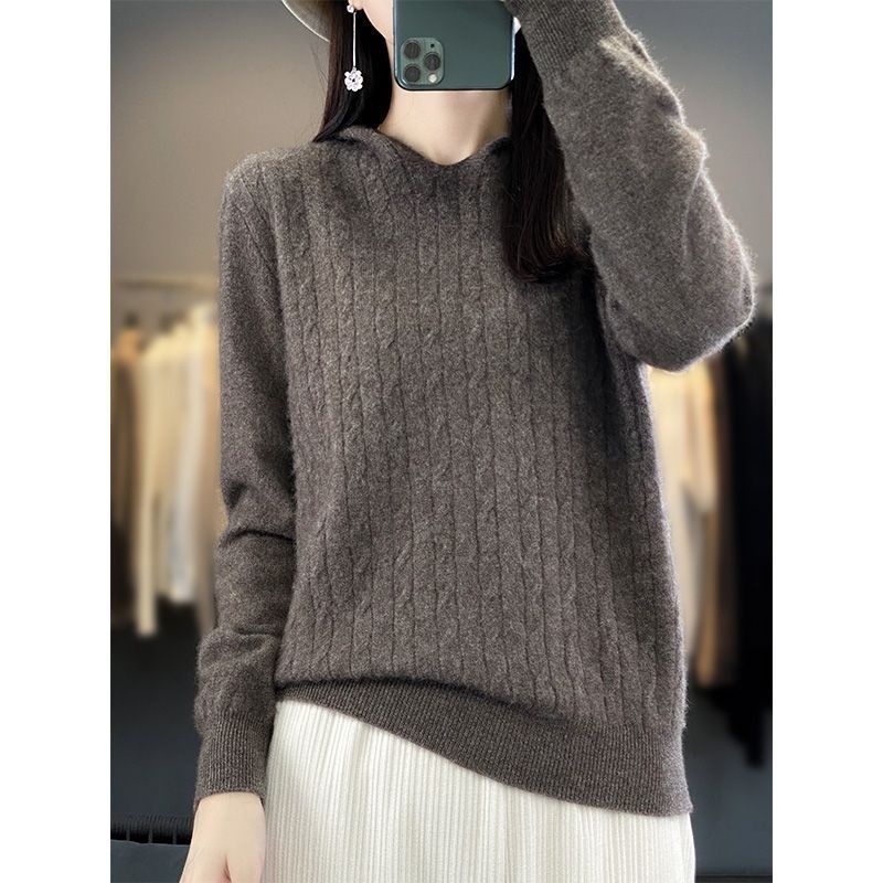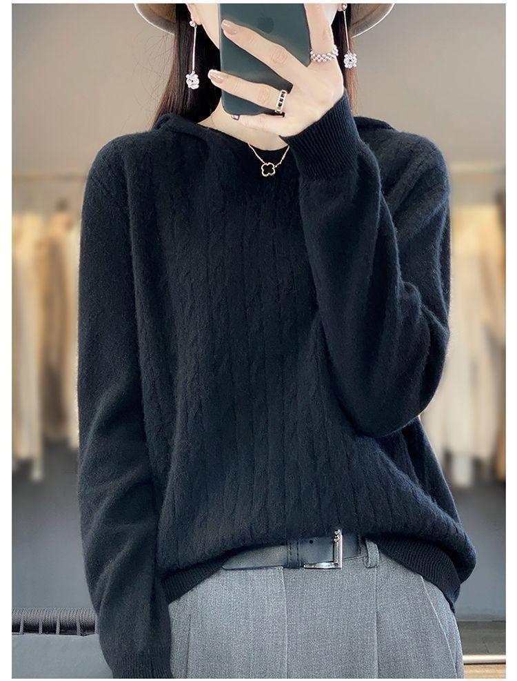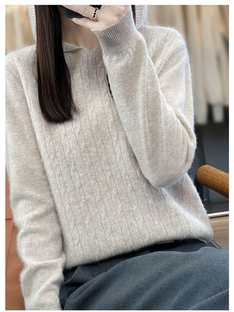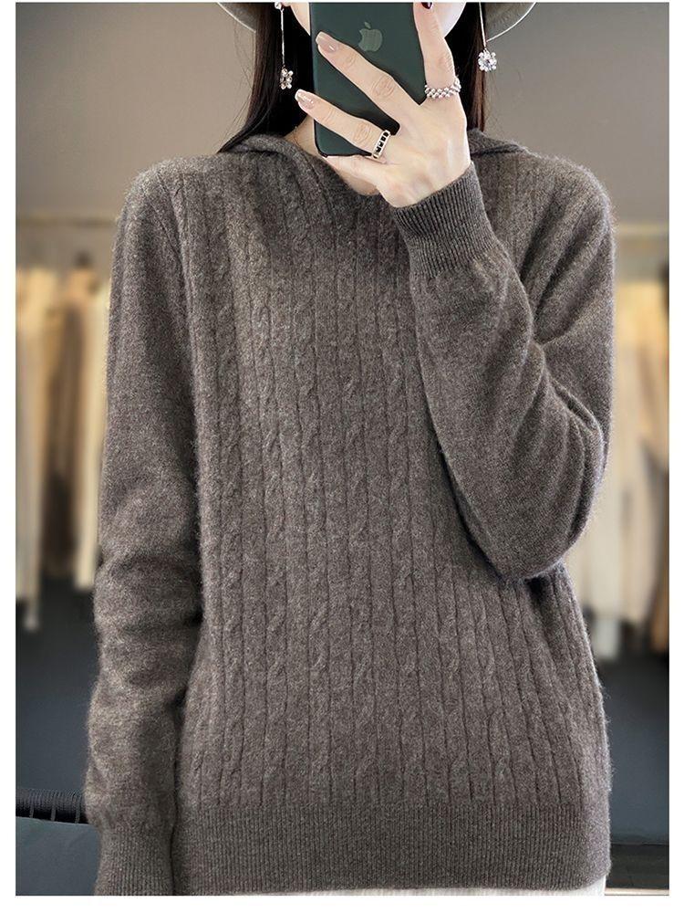 Suéter de punto con capucha para mujer, suéter informal de manga larga, color liso, estilo coreano, otoño e invierno de 2024
