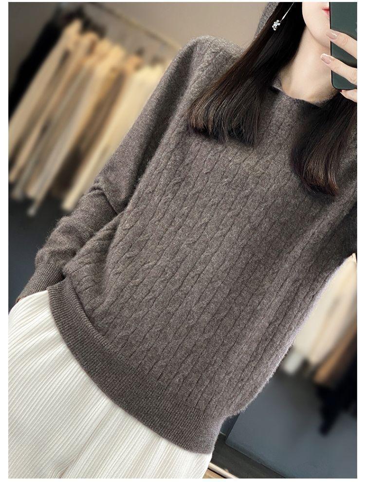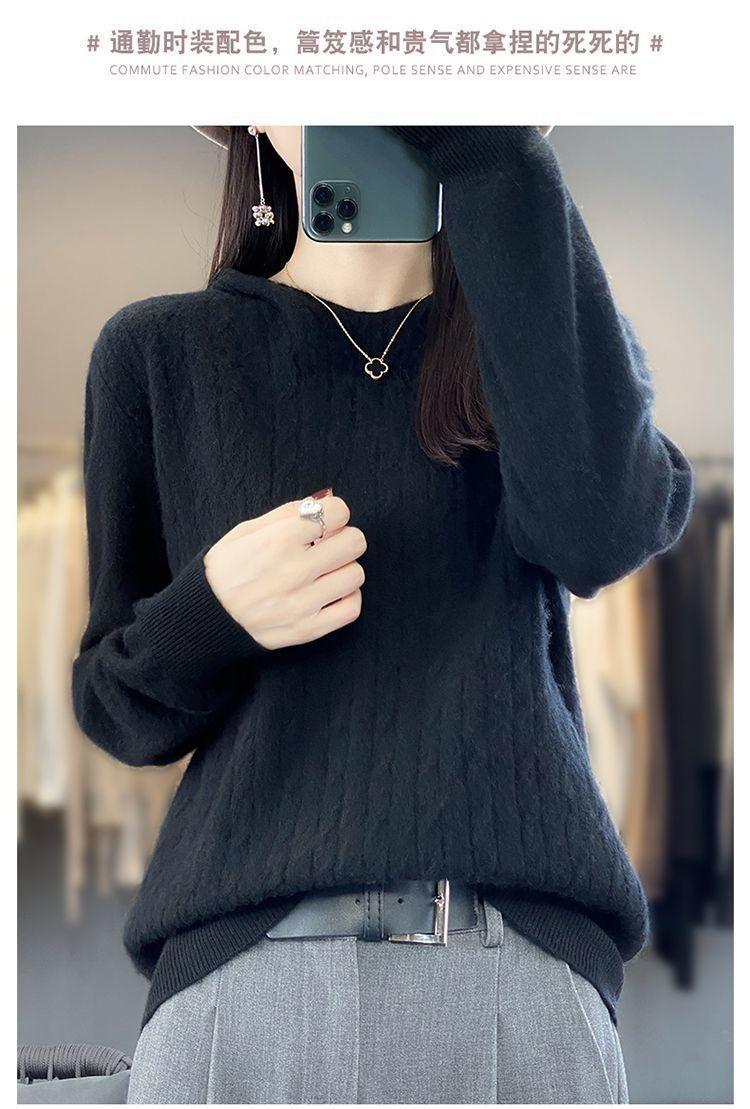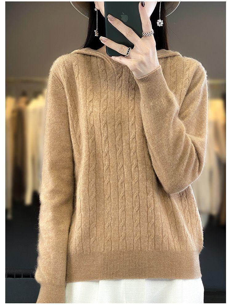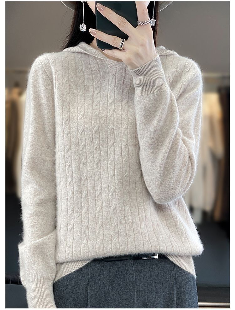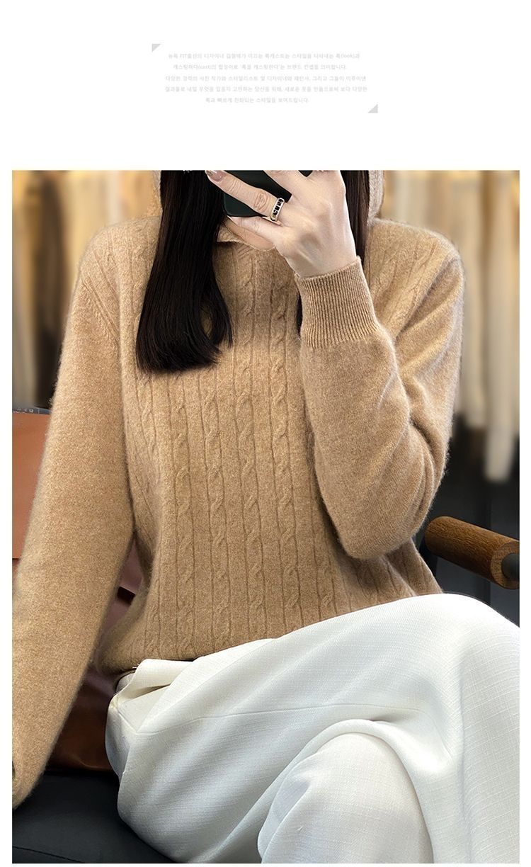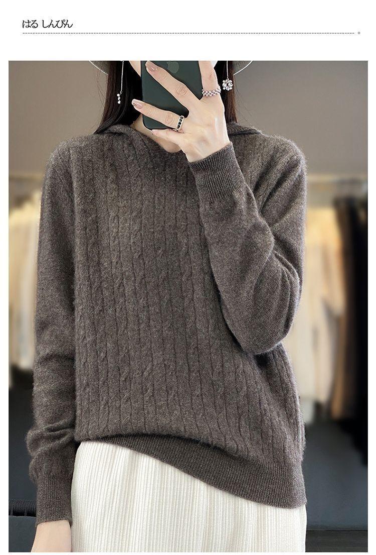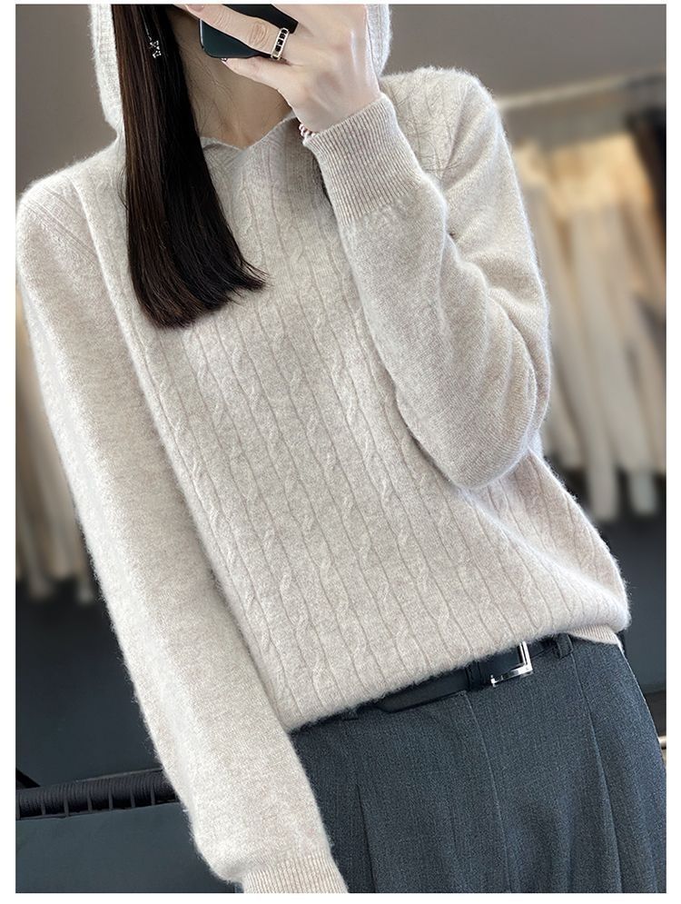 Suéter de punto con capucha para mujer, suéter informal de manga larga, color liso, estilo coreano, otoño e invierno de 2024