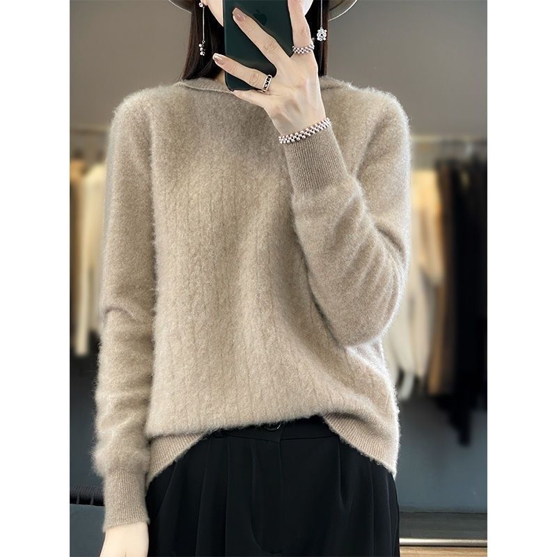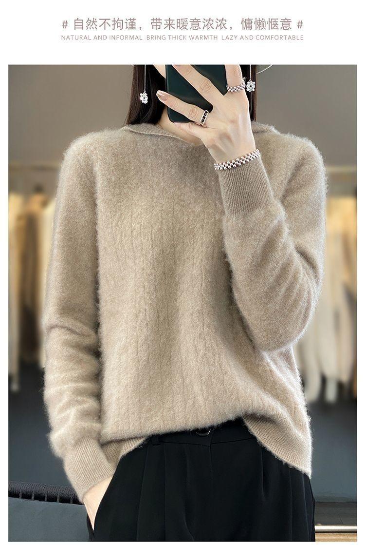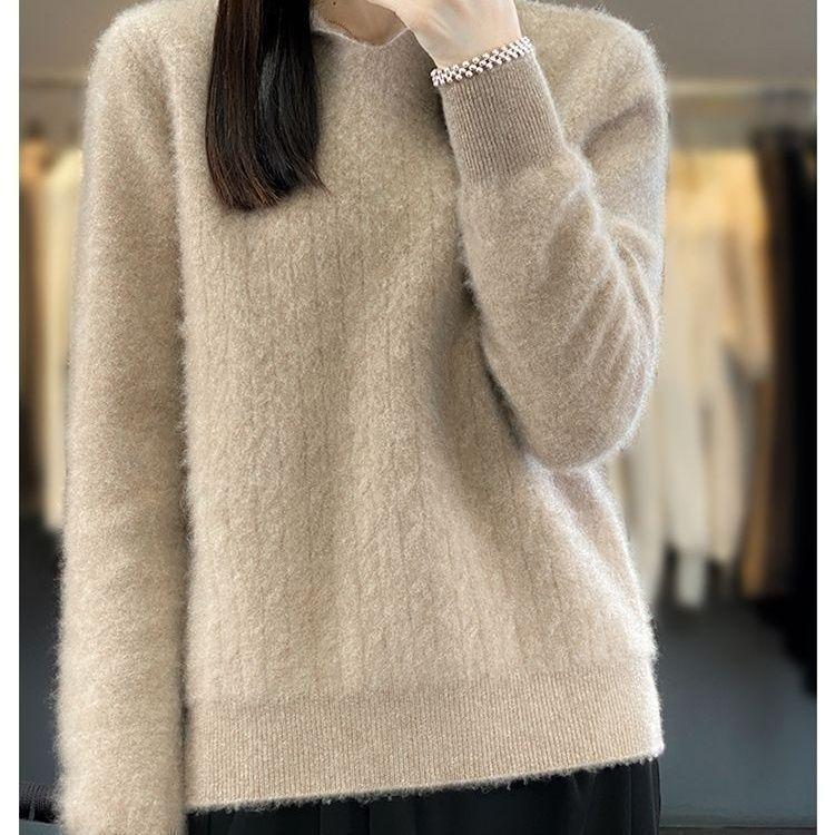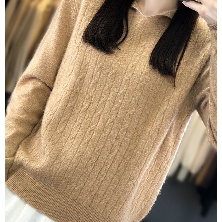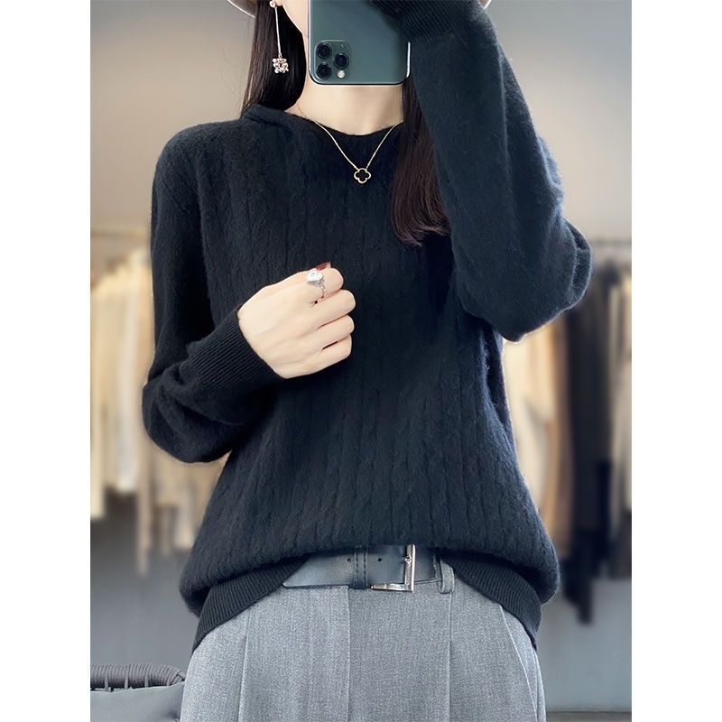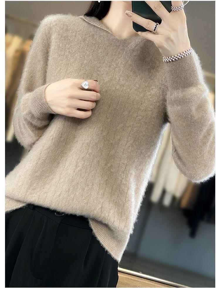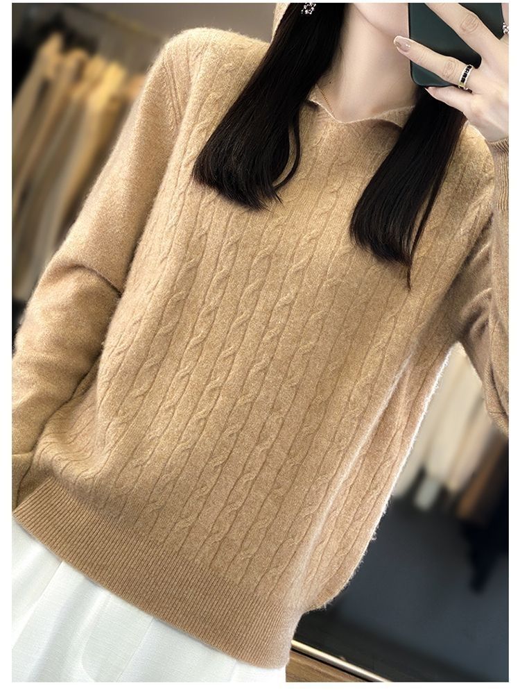 Suéter de punto con capucha para mujer, suéter informal de manga larga, color liso, estilo coreano, otoño e invierno de 2024