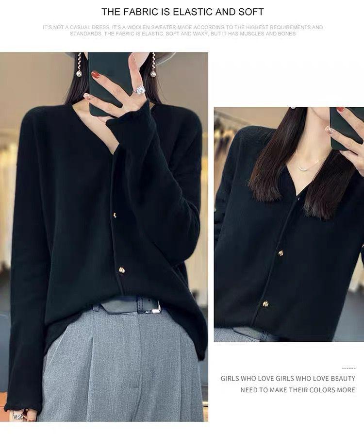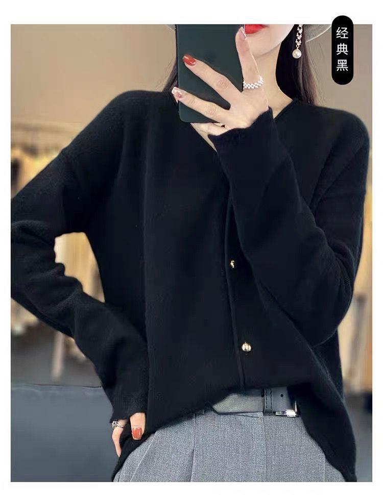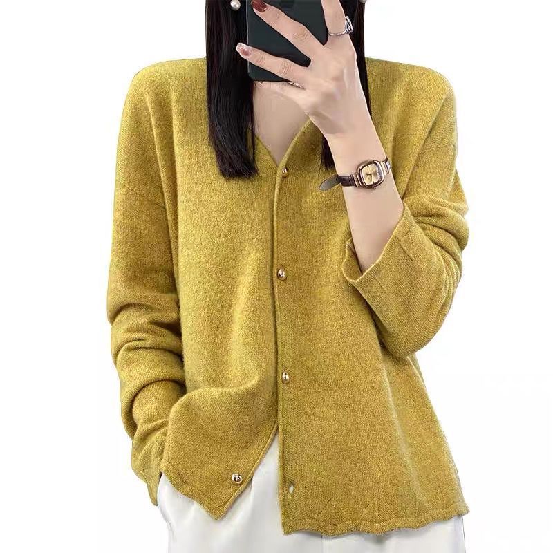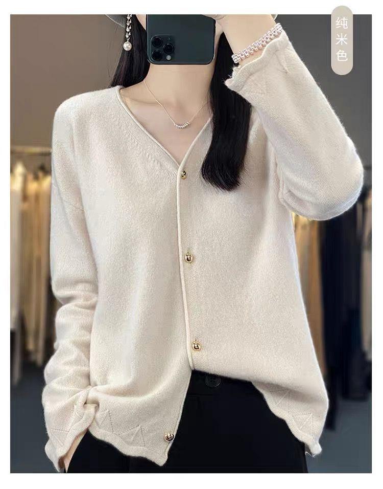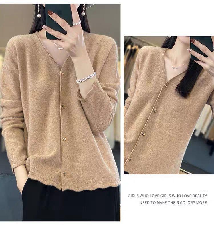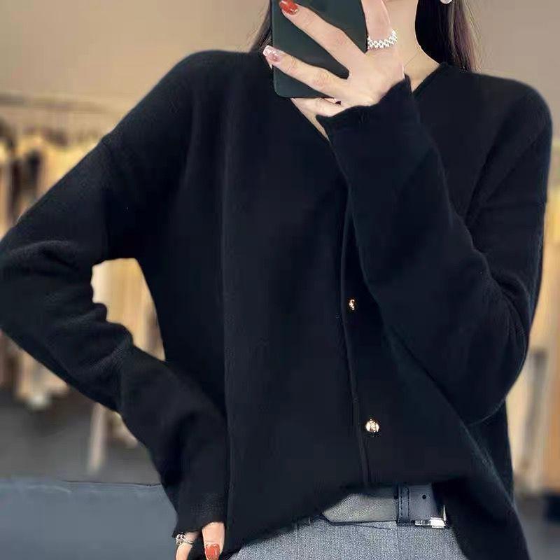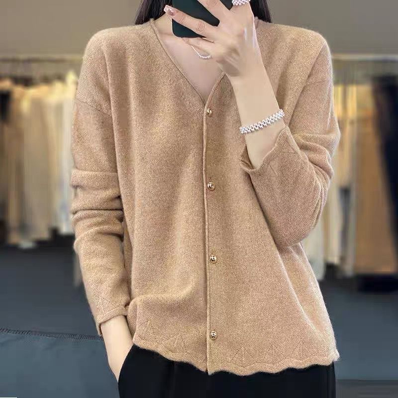 Cárdigan de Punto de Encaje Estilo Coreano Nuevo Primavera y Otoño Suelto Cuello en V Color Puro Sencillo Versátil Chaqueta Suéter para Mujer Trendy