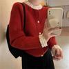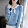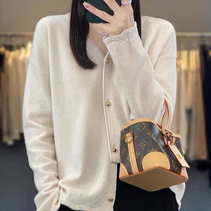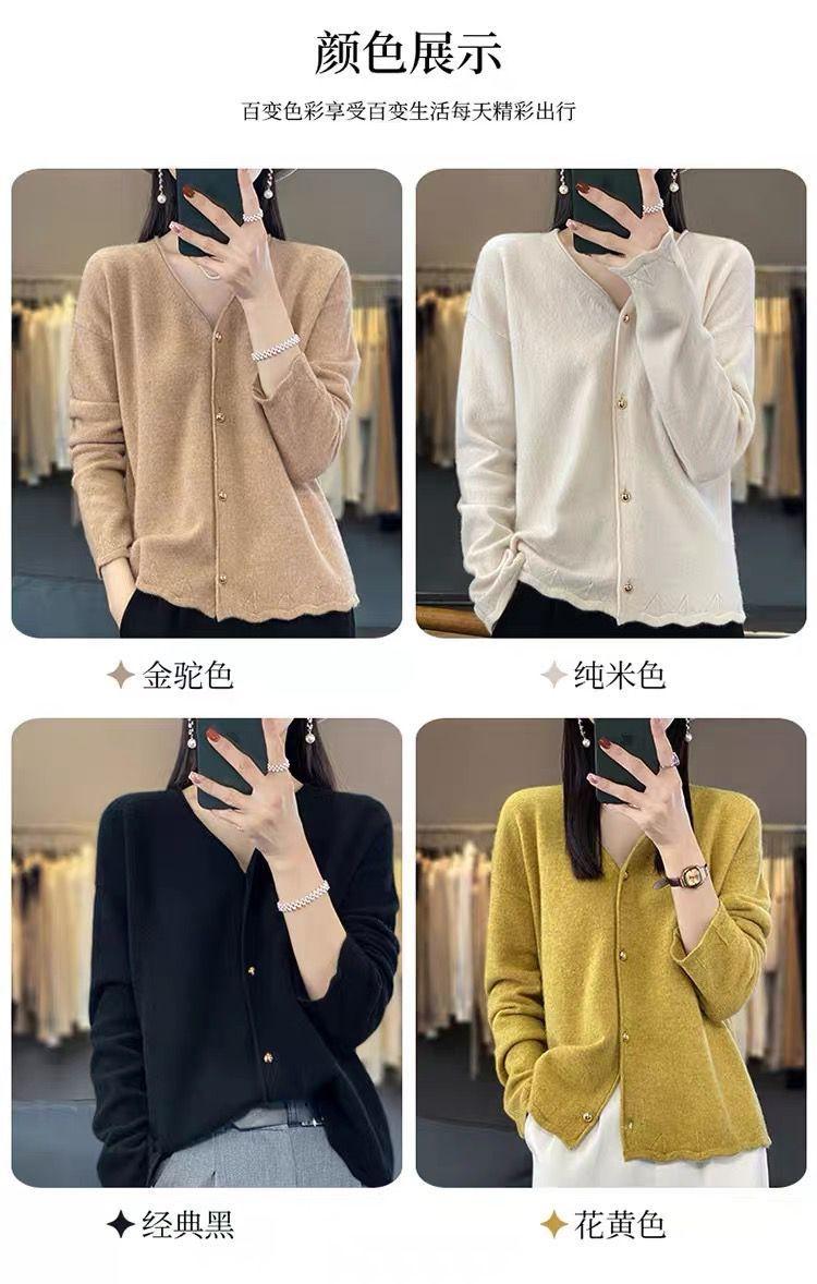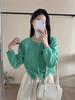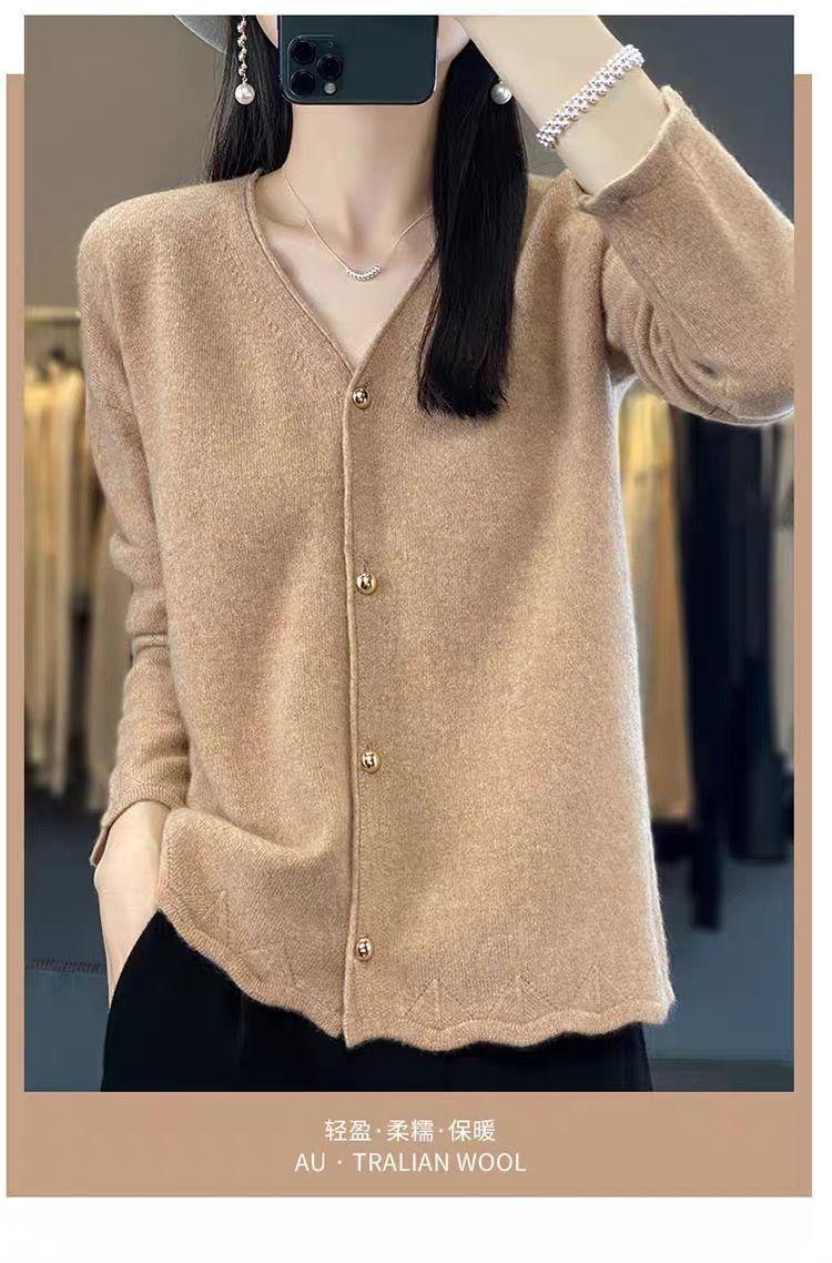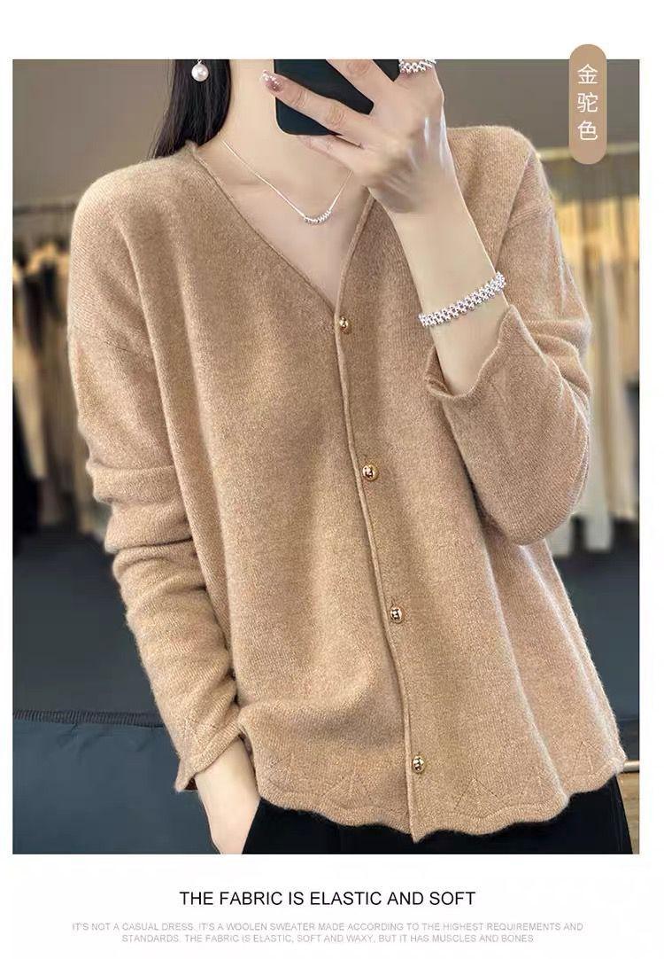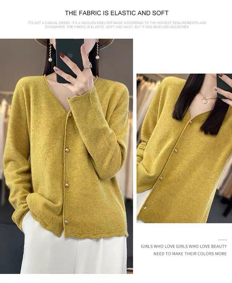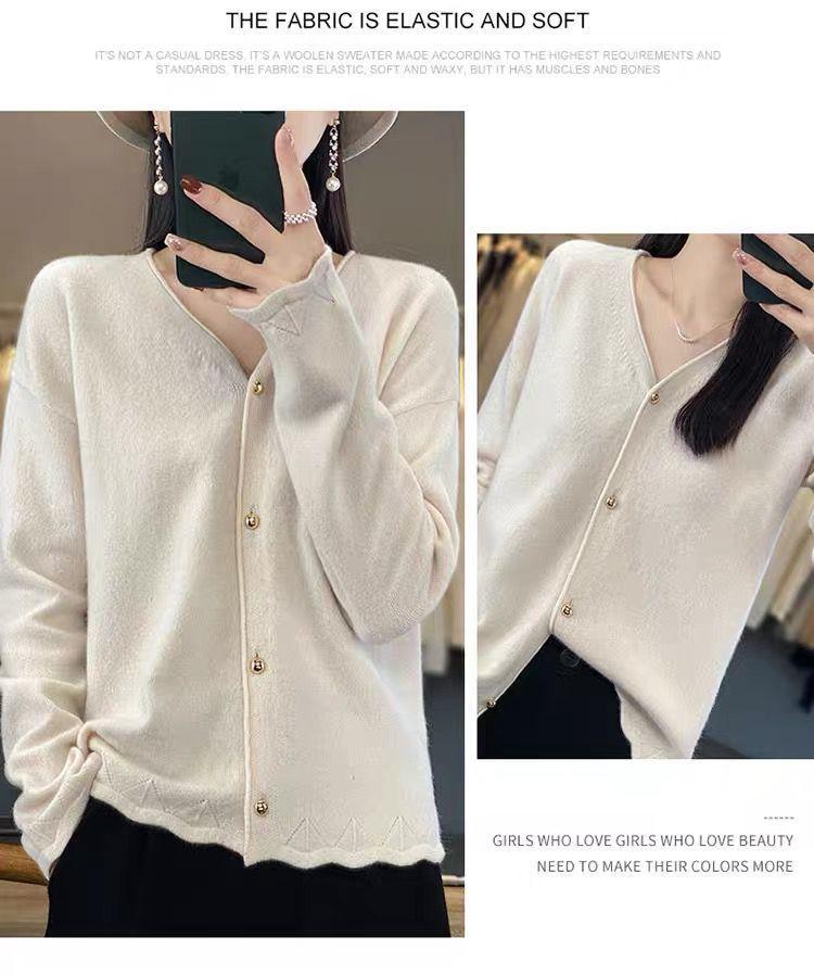 Cárdigan de Punto de Encaje Estilo Coreano Nuevo Primavera y Otoño Suelto Cuello en V Color Puro Sencillo Versátil Chaqueta Suéter para Mujer Trendy
