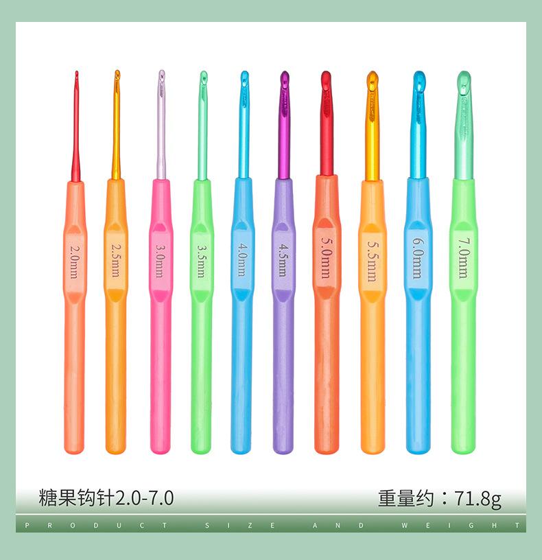 2.0mm candy color crochet hook, 2.5mm candy color crochet hook, 3.0mm candy color crochet hook, 3.5mm candy co...
