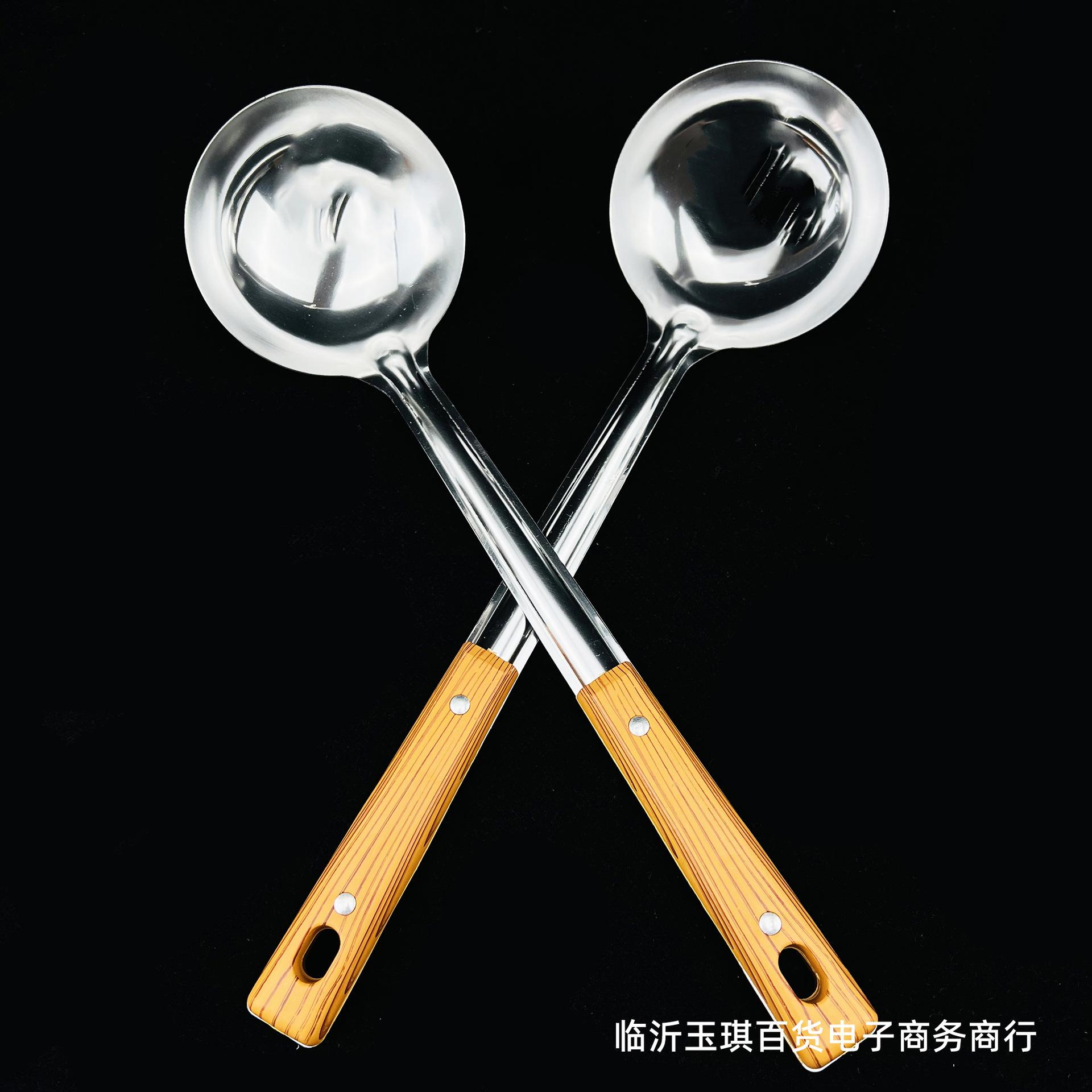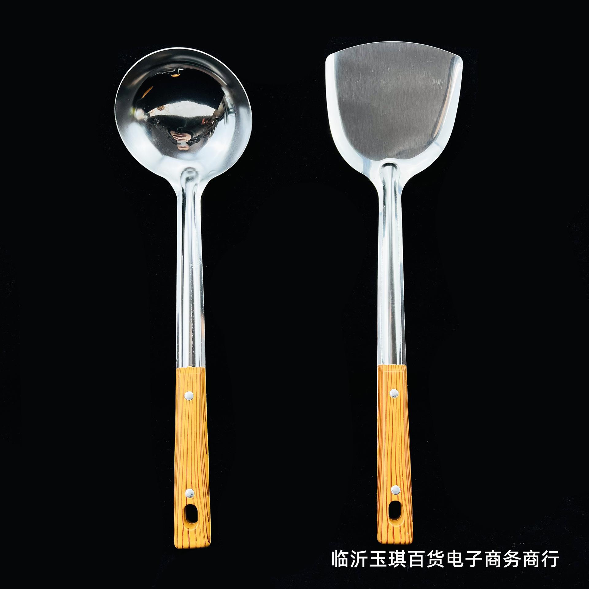 Espátula de acero inoxidable con veta de madera, cuchara, colador, juego de cocina, cuchara para sopa, pala para freír, aislamiento térmico antideslizante para cocina de hotel
