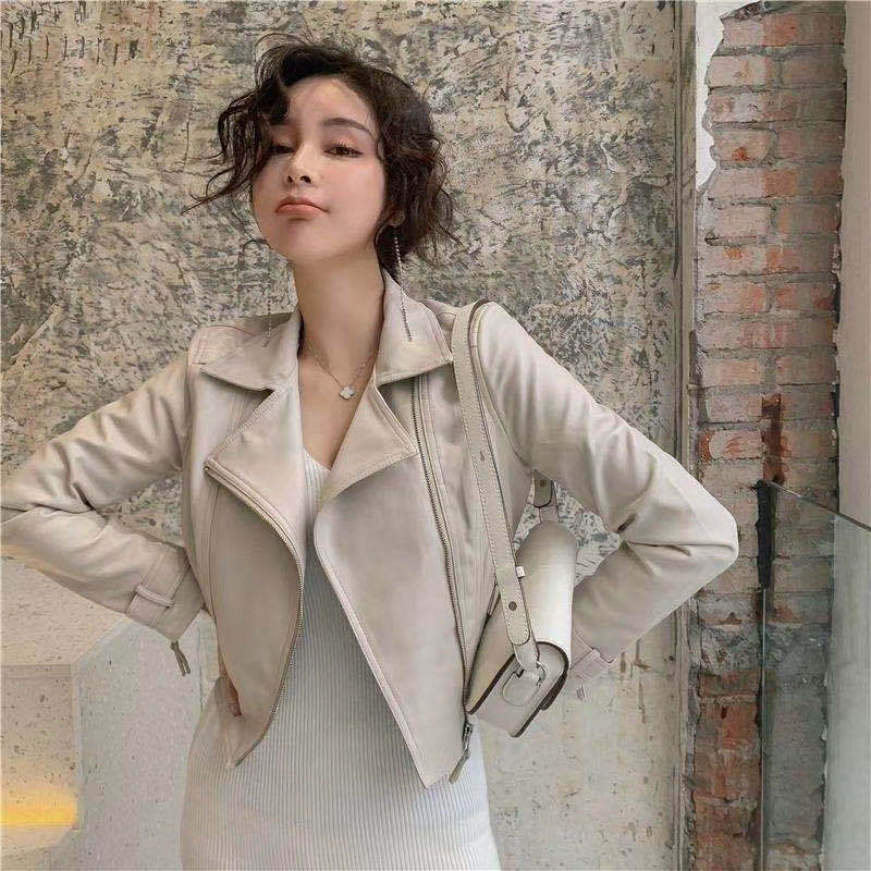 Nueva Chaqueta de Cuero PU para Mujer de Primavera y Otoño Transfronteriza Corta Estilo Coreano Ajustada Multicolor Chaqueta Biker con Cuello Vuelto