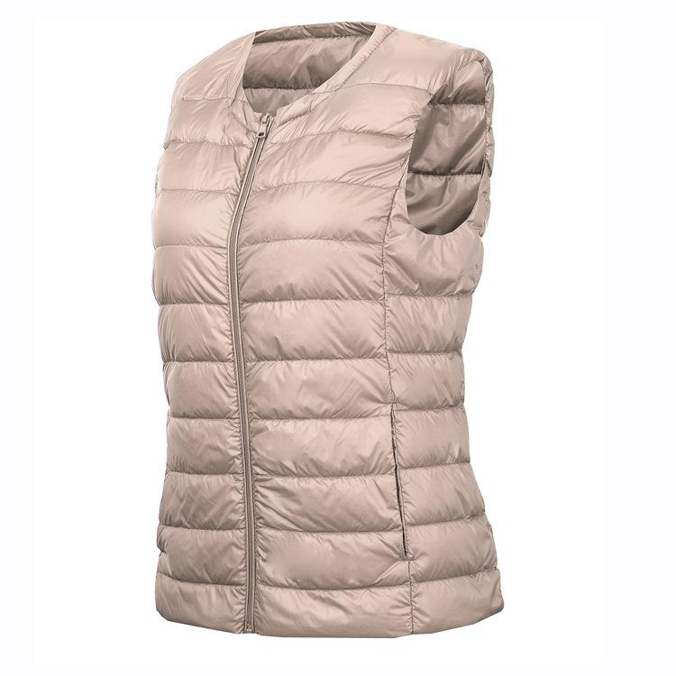 Chaqueta ligera de plumón transfronteriza Chaleco de mujer Otoño e Invierno Sin cuello Talla Grande Chaleco de plumón Forro Chaleco corto de mujer