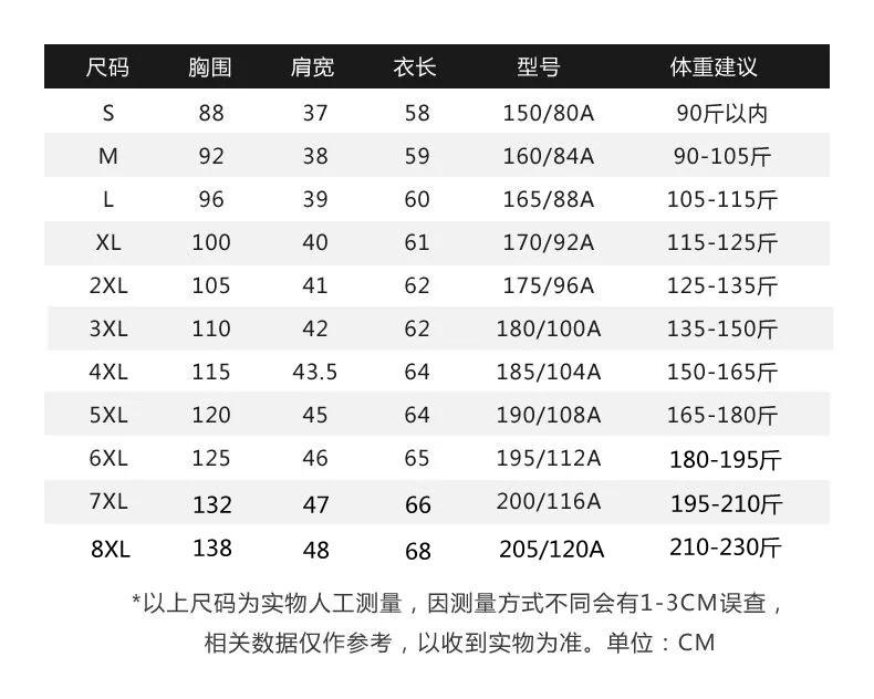 S, M, L, XL, 2XL, 3XL, 4XL, 5XL, 6XL, 7XL, 8XL