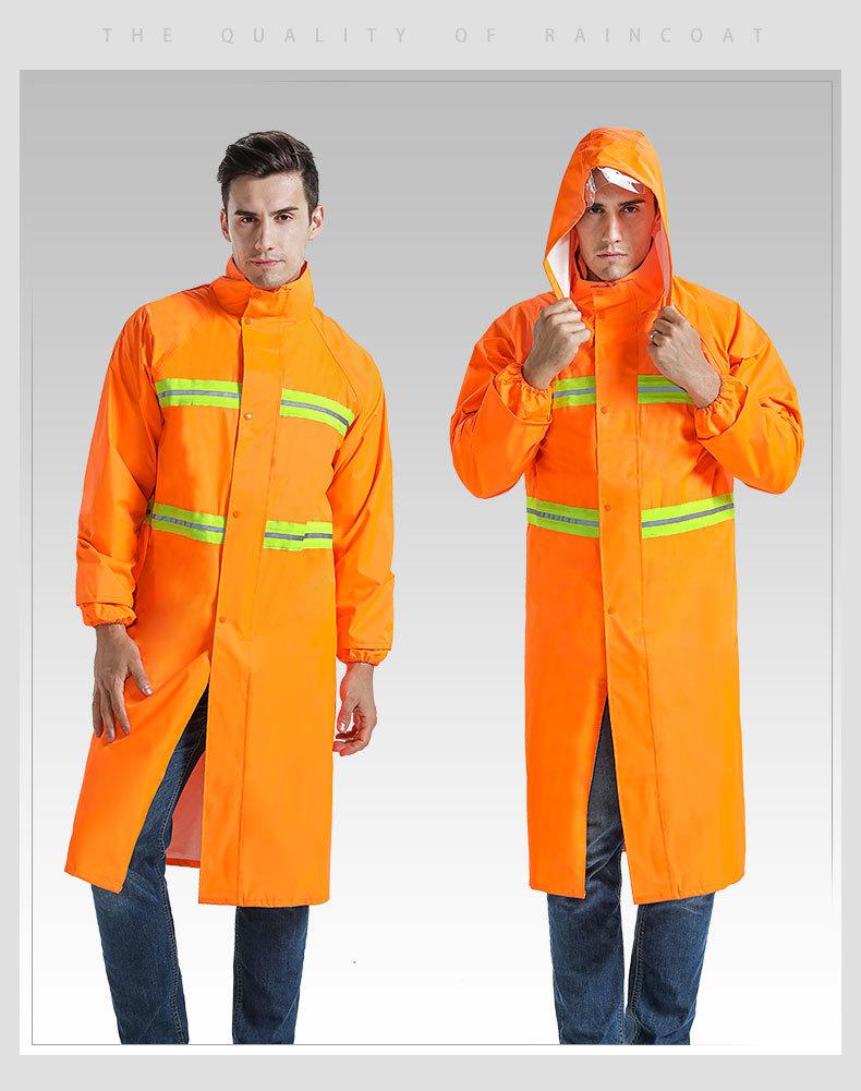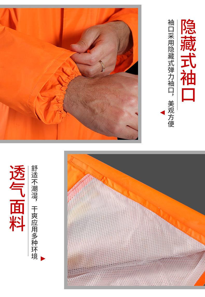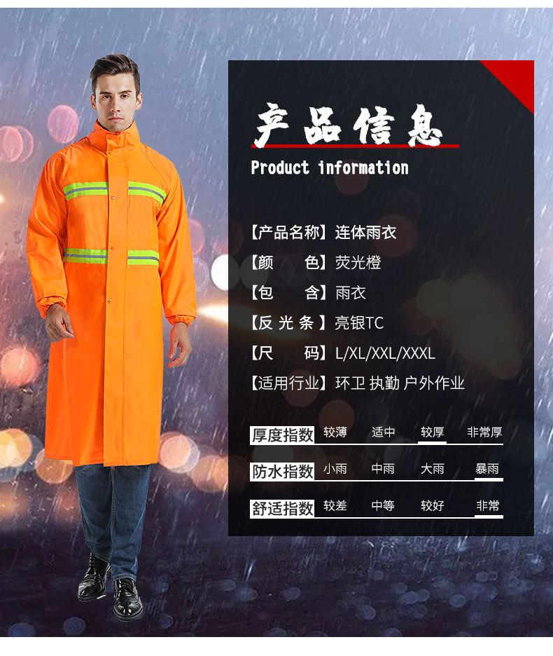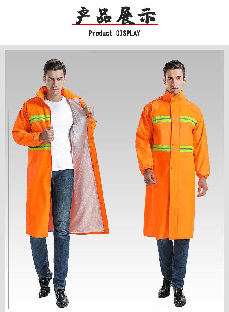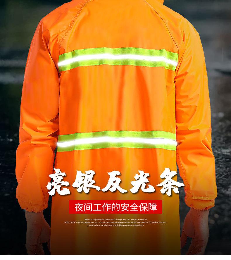 Venta al por mayor de impermeable sanitario largo y unido, impermeable de cuerpo entero, naranja, protección laboral al aire libre, impermeable reflectante para trabajo, impermeable para prevención de tormentas.