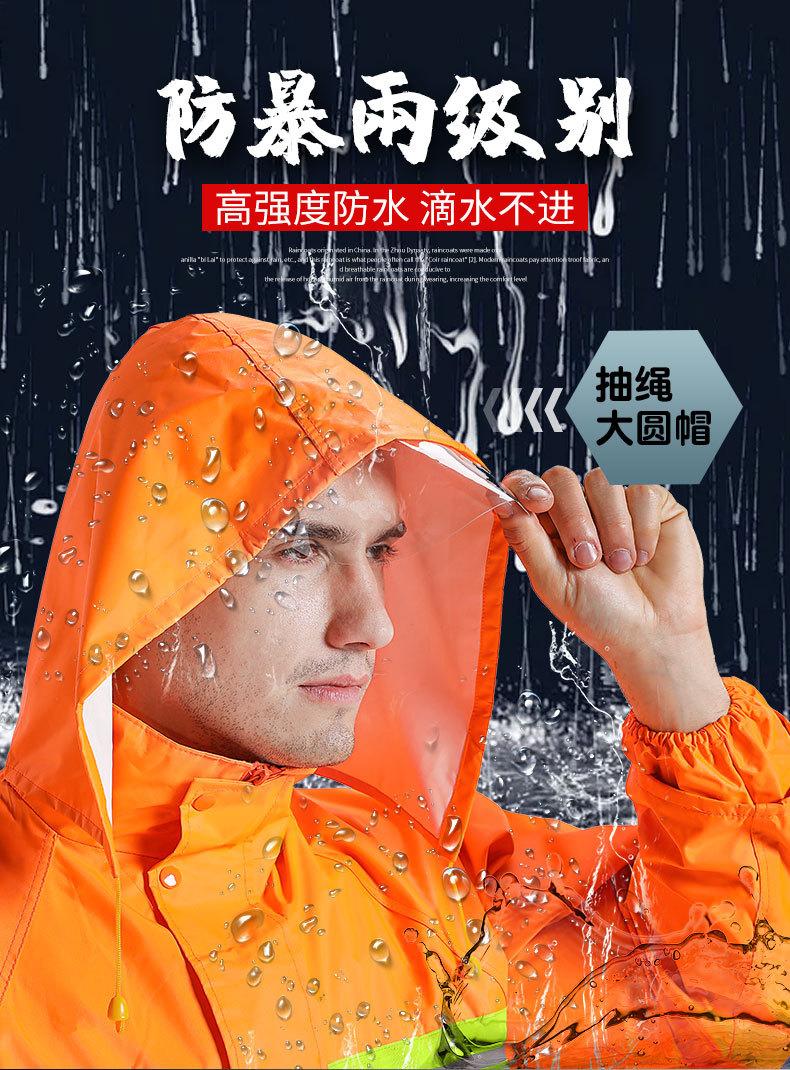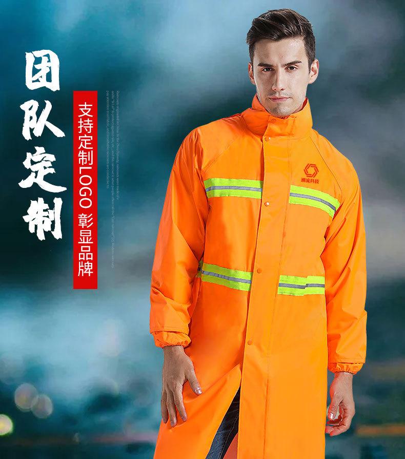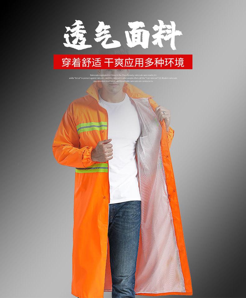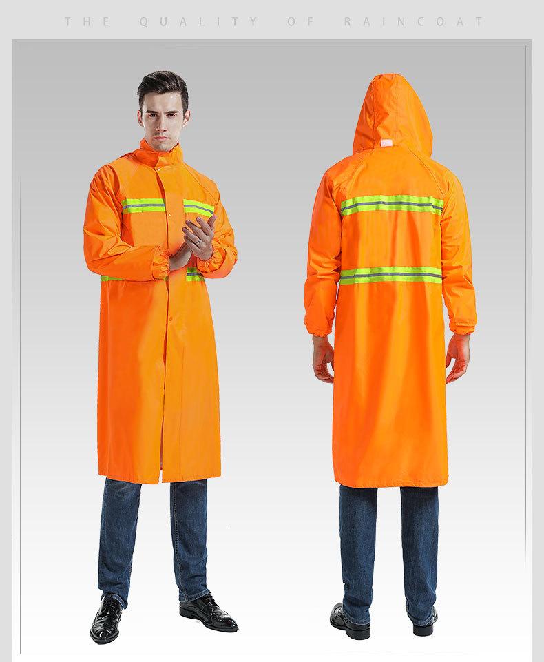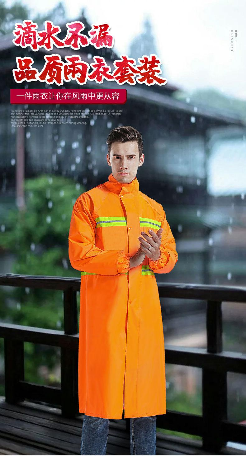 Venta al por mayor de impermeable sanitario largo y unido, impermeable de cuerpo entero, naranja, protección laboral al aire libre, impermeable reflectante para trabajo, impermeable para prevención de tormentas.